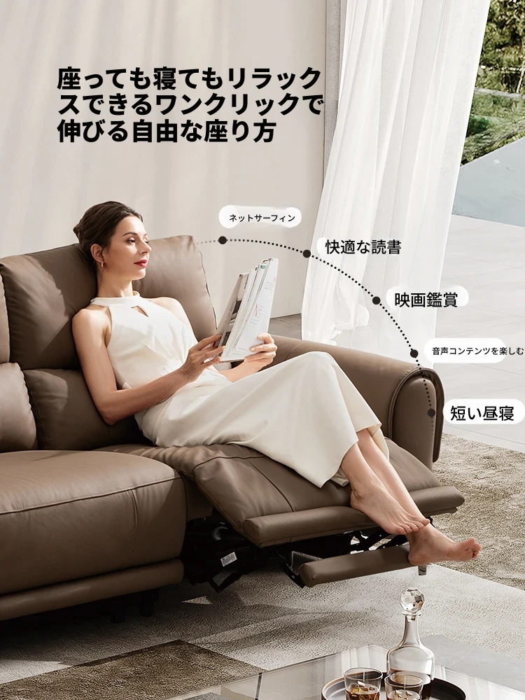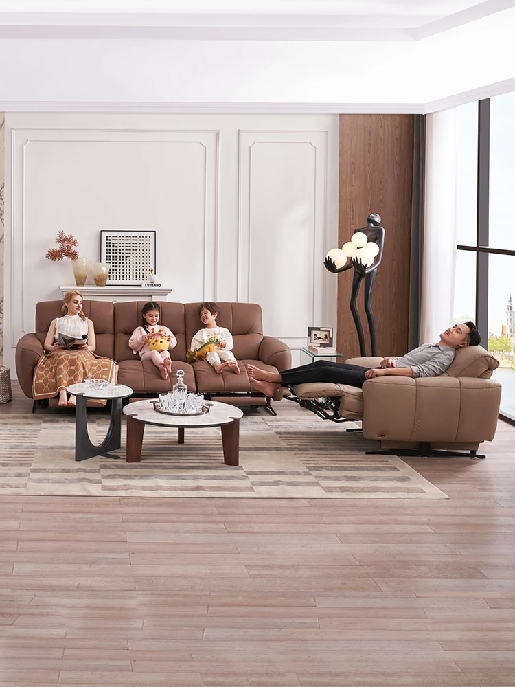 ZHIWA Shi First-Class Modern Minimalist Genuine Leather Electric Reclining Sofa for Small Spaces - Model 30719, Perfect for Stylish Living Rooms!