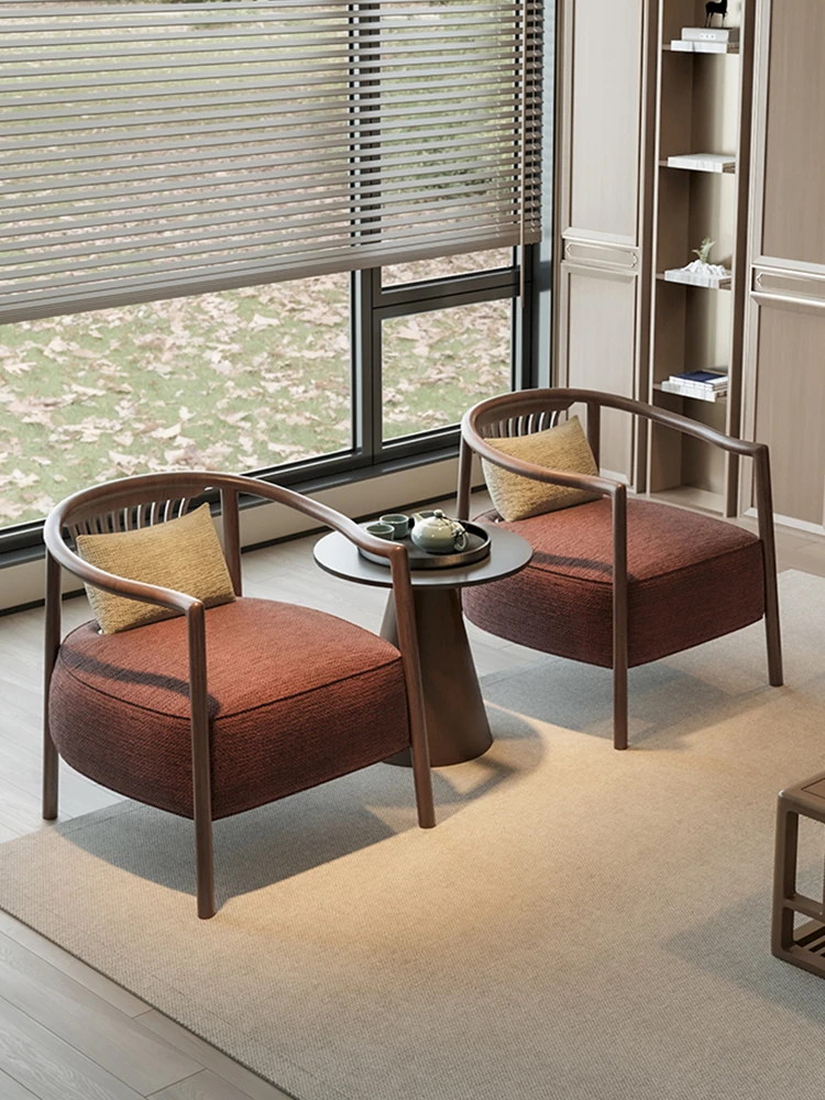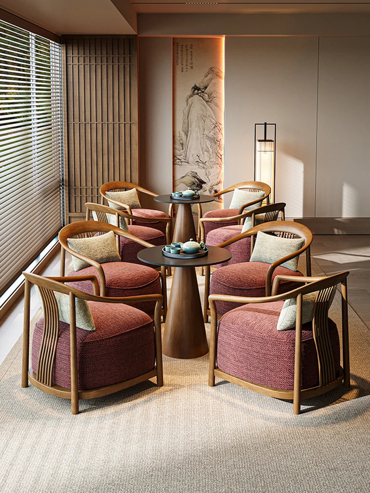 新中式茶楼の高級感あふれるリラックスソファチェアセット - ホテルのVIPルームや休憩エリアに最適な実木製の接客テーブルと椅子のコンビネーションで、上質なひとときをお楽しみください。