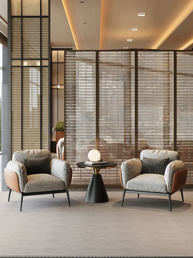 現代的なラグジュアリー!カフェレセプションテーブル&チェアセット - Daikiリラックスソファ椅子でビジネス会議やホテルのロビーにぴったり。洗練されたデザインで、ゲストを魅了する空間を演出します。
