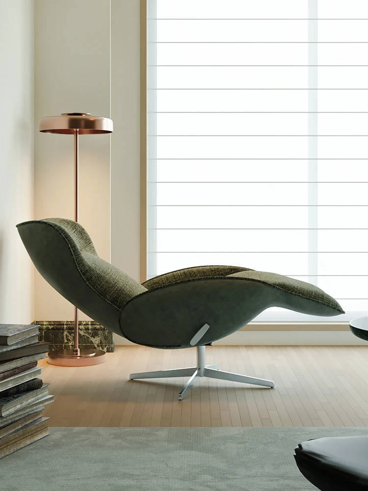 イタリアンラグジュアリー回転オフィスチェア - シンプルでモダンなデザイン、書斎や寝室に最適なリラックス一人掛けソファ。洗練されたスタイルで快適な作業空間を演出します!