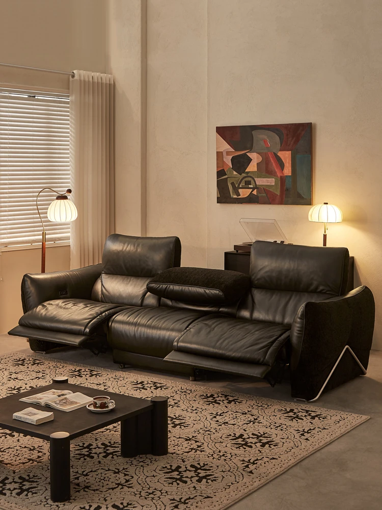 木陌家具 星雲電動ソファ 中古ブラック フレンチビンテージオイルワックス本革 多機能なトップグレインレザー どんな空間にも調和する洗練されたデザインと快適さを兼ね備えた逸品!