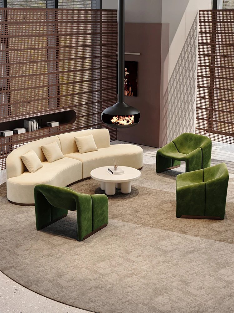 ラグジュアリーなホテルロビーに最適!曲線デザインのソファセット、サロンやクリニックの受付エリアにぴったり。おしゃれで快適な休息スペースを演出し、顧客との大切なひとときをサポートします。