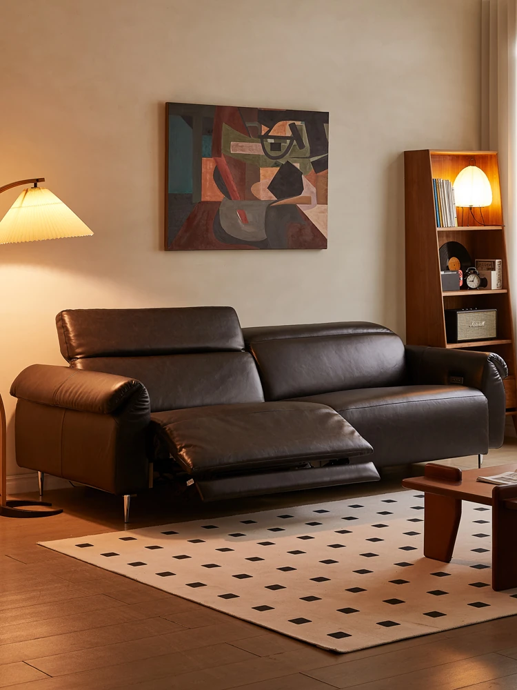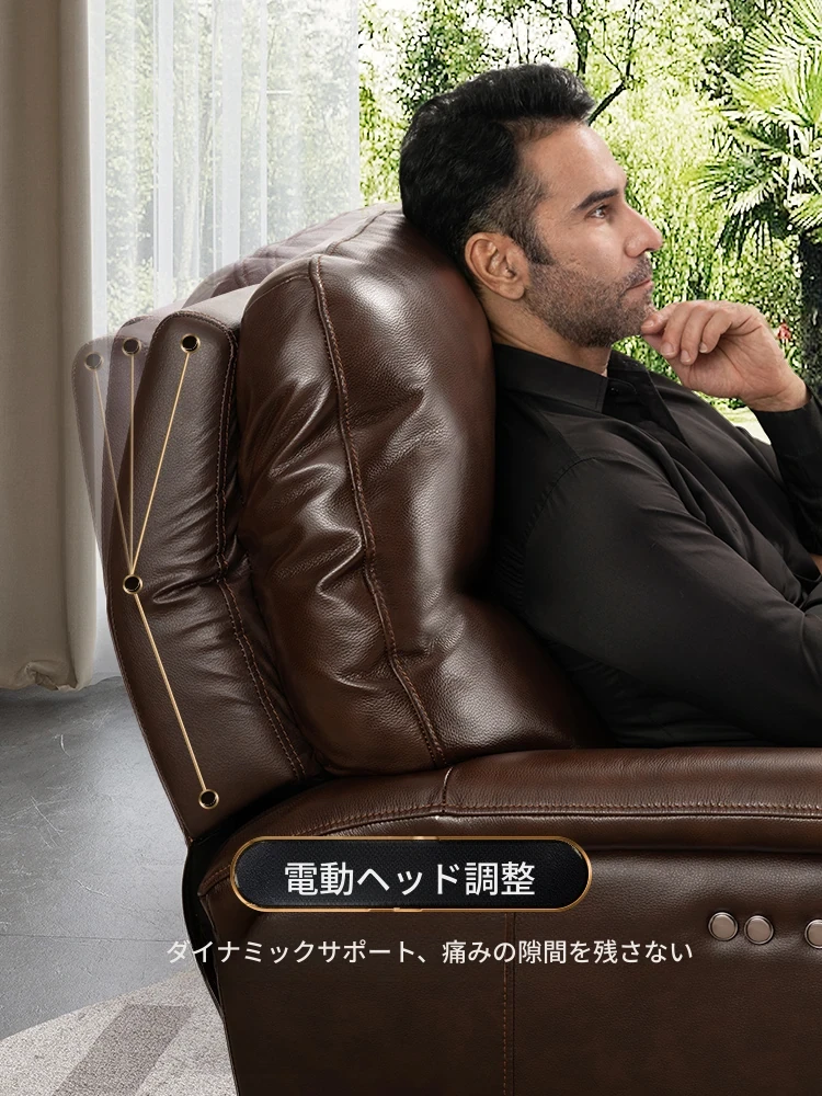 木陌悠享の電動機能付きソファ。高級本革使用、レトロデザインの伸縮式ゼロ重力ソファベッド。寝るも、くつろぐも自由自在!あなたのリビングをスタイリッシュに演出します。