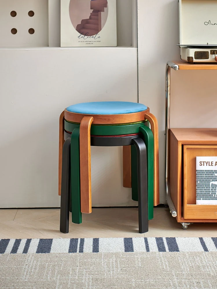 ZOOI HOME 中古風スタッキング小丸椅子|おしゃれなリビングやダイニングにぴったり!ヴィンテージ感あふれるカラフルなデザインで、寝室やメイク台にも最適な実用的な木製スツール。