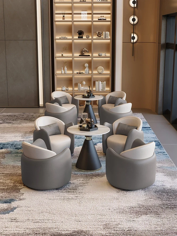 Modern Chinese Style Hotel Sales Office Reception Sofa and Meeting Table Set - Elegant Light Luxury Lounge Sofa for Tea House with Cozy Booth Seating