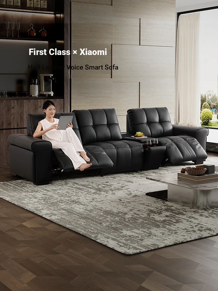Zhiwa Shi First-Class Half Leather Sofa with Smart Voice Control and Electric Function - Piano Key Design for Living Room and Home Theater, Model 30760