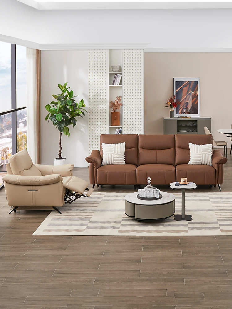 ZhiHuaShi First-Class Modern Minimalist Genuine Leather Sofa for Small Living Rooms - Electric Function Recliner Furniture Model 30522
