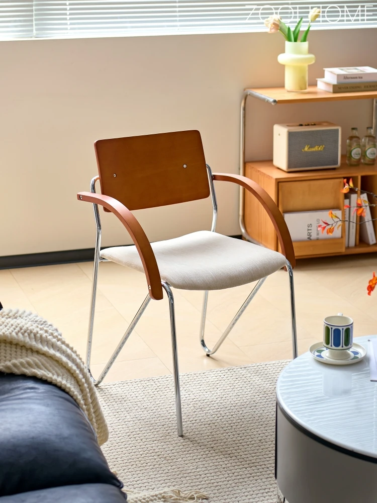ZOOI HOME Vintage Danish Designer Dining Chair - Unique Backrest Leisure Chair with Retro Stainless Steel Frame, Perfect for Modern Home Décor