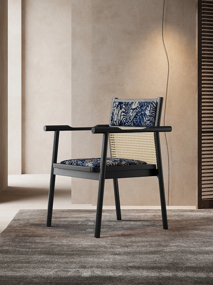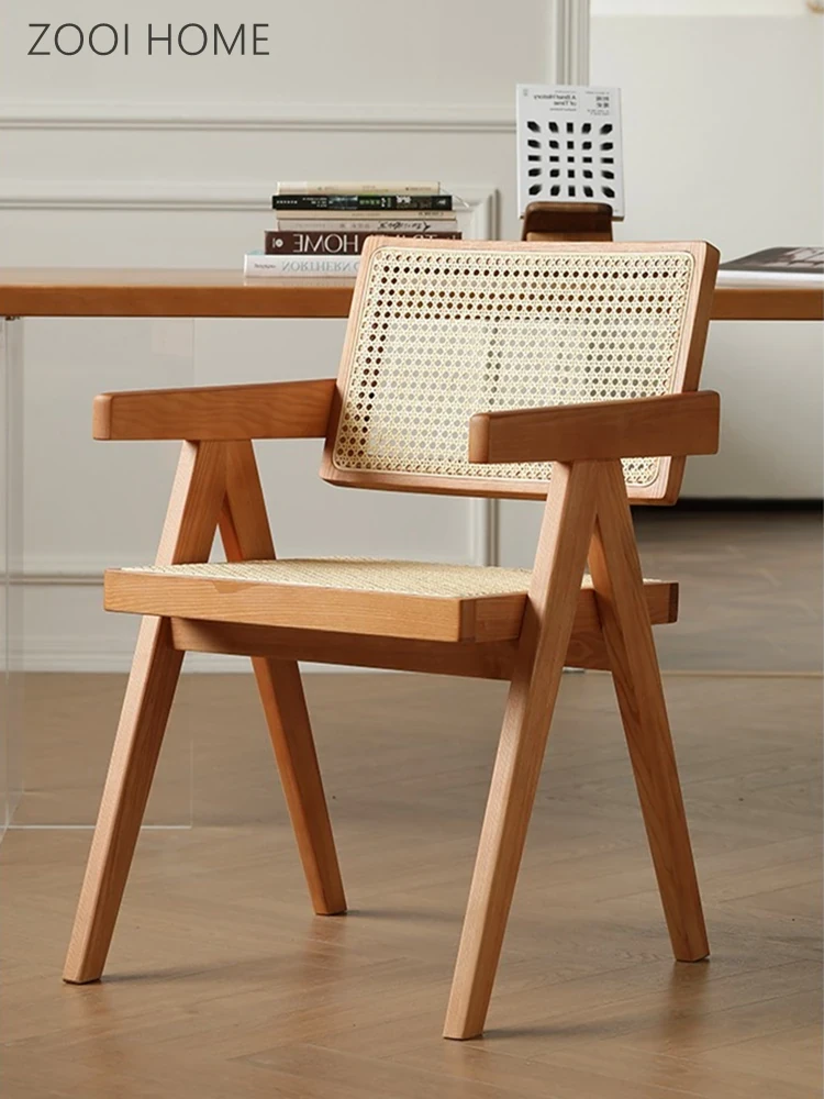 ZOOI HOME Chandigarh Retro Dining Chair – Stylish Armchair with Backrest, Crafted from Nordic Ash Wood and Rattan for a Chic Home Aesthetic