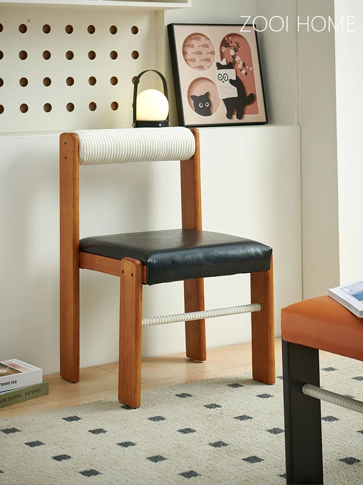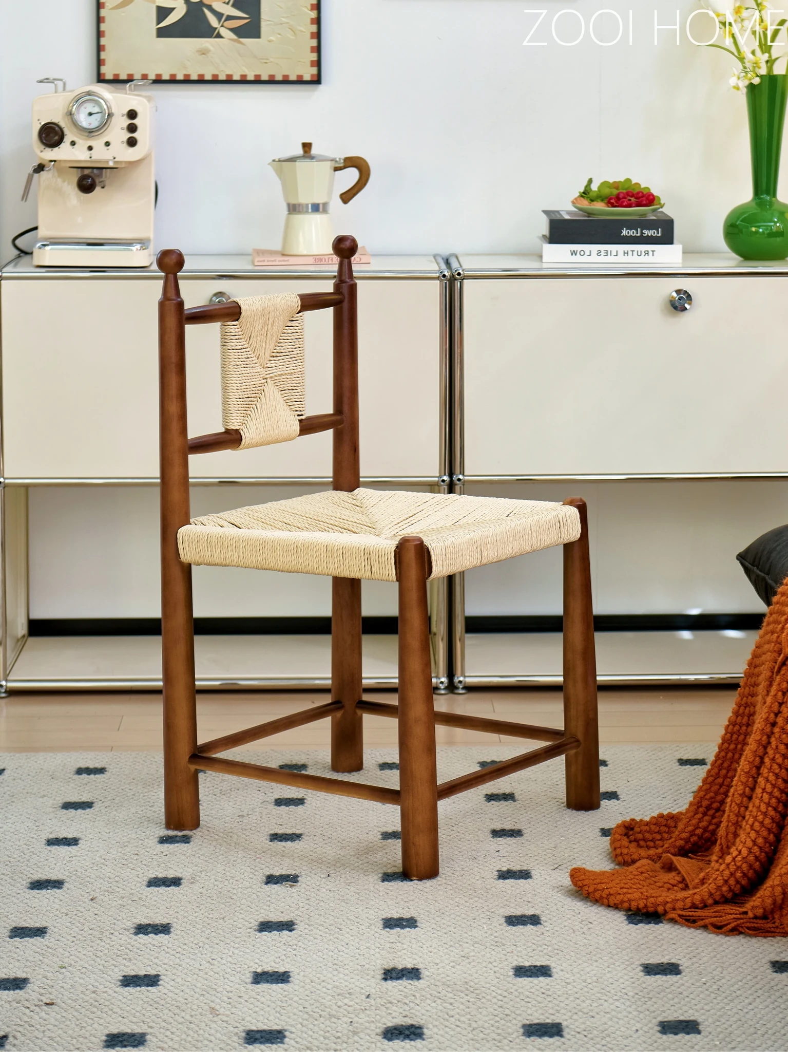 ZOOI HOME Retro Rope Chair - Vintage Solid Wood Design with Comfortable Cushions, Perfect for Unique Dining Spaces and Home Decor