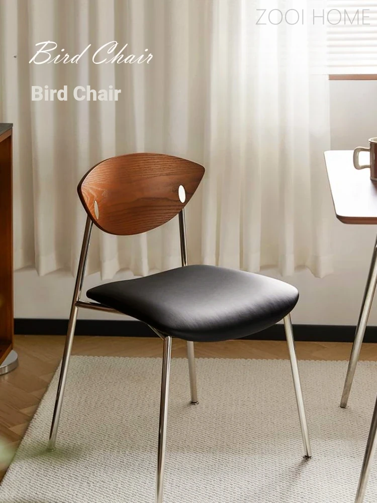 ZOOI HOME Vintage Dining Chair - Stainless Steel, Ins Style, Solid Wood Backrest, Trendy Light Luxury Designer Chair for Your Dining Room