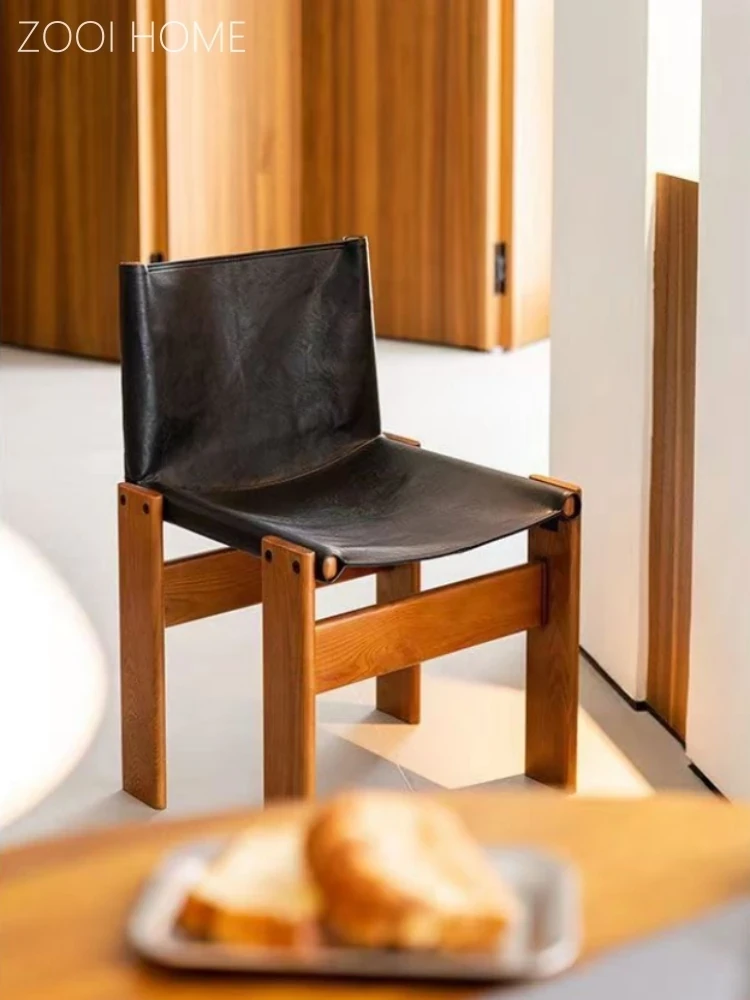 ZOOI HOME Nordic Designer Monk Chair - Vintage Waxed Leather Dining Chair for Home, Featuring White Ash Solid Wood, Perfect for Modern Interiors