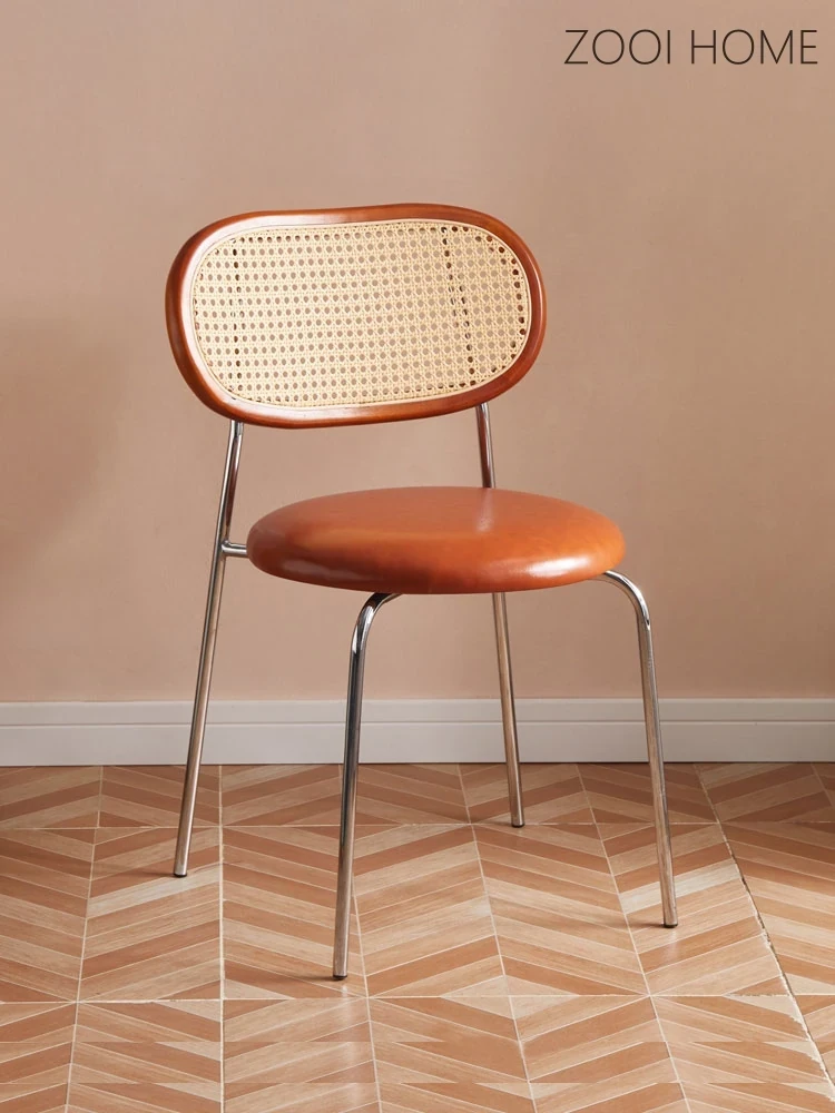 Vintage Rattan Dining Chair - Stylish Vasily Chair for Home Use, Retro Designer Restaurant Backrest Chair, Trendy Ins-Style Seat