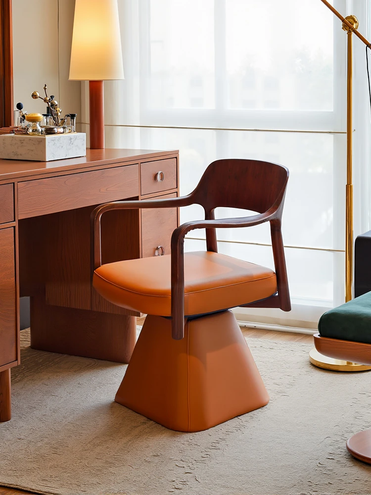 New Chinese Style Vanity Chair - Rotatable Antique Aesthetic Makeup Chair with Solid Wood Backrest, Inspired by Song Dynasty Aesthetics for Elegant Bedrooms