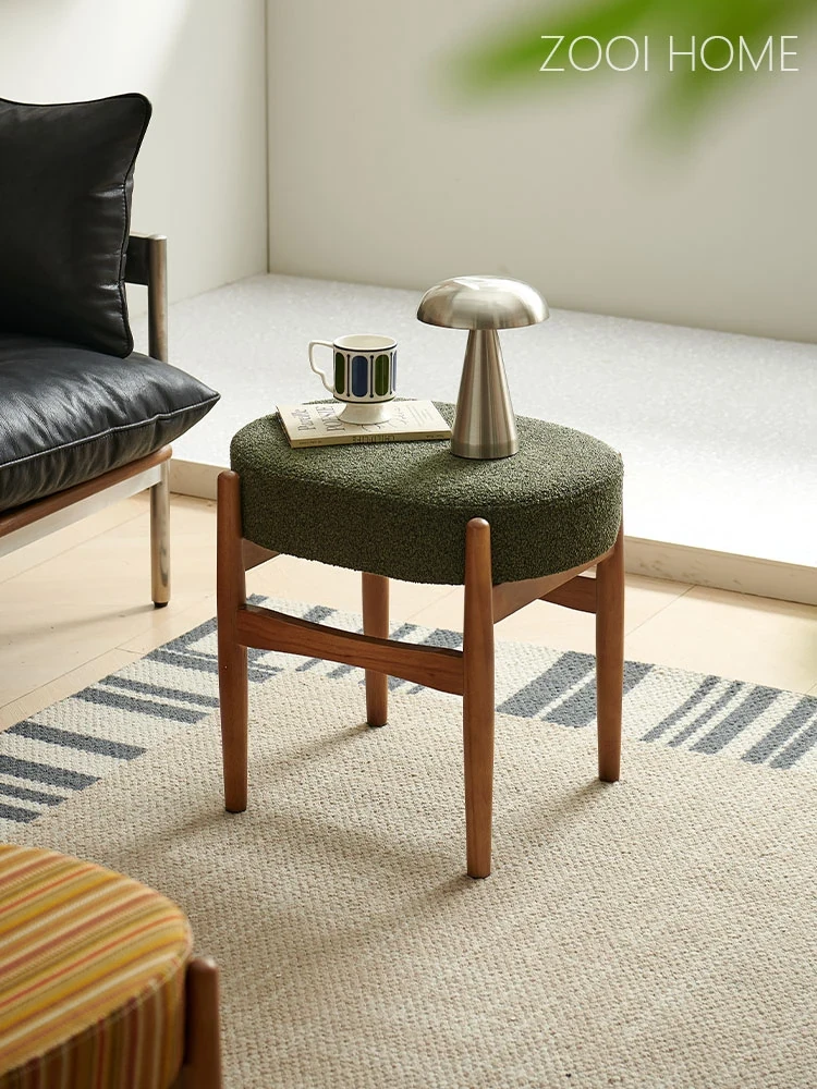 ZOOI HOME Vintage-Style Single Stool - Cozy Lamb Fleece for Small Spaces, Perfect as a Shoe Changing Stool or Makeup Vanity Seat