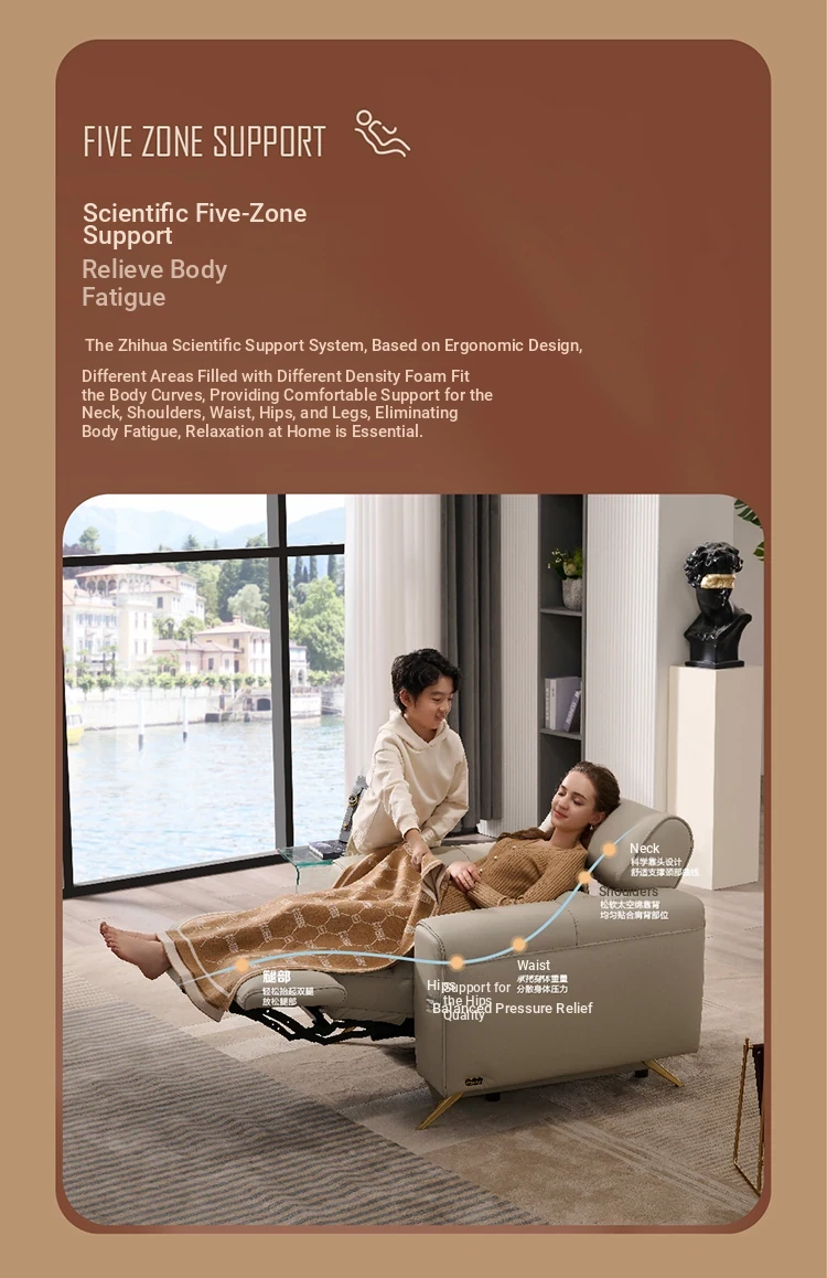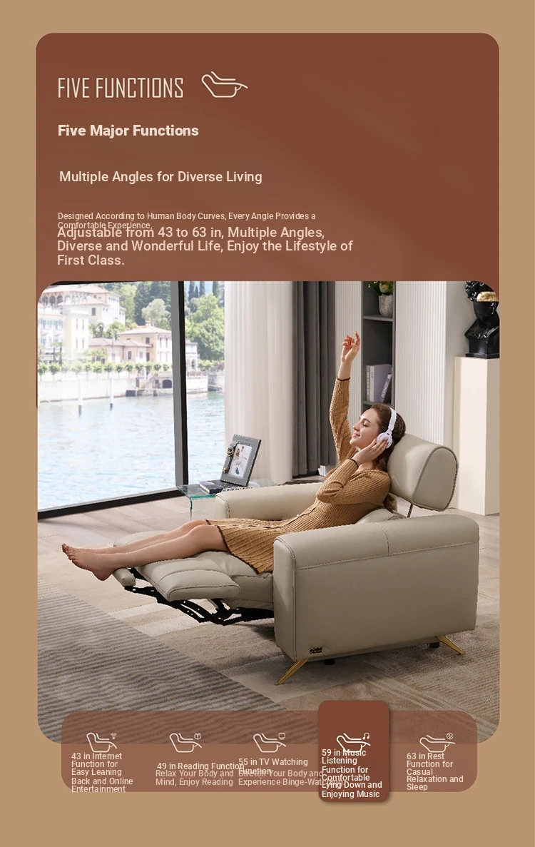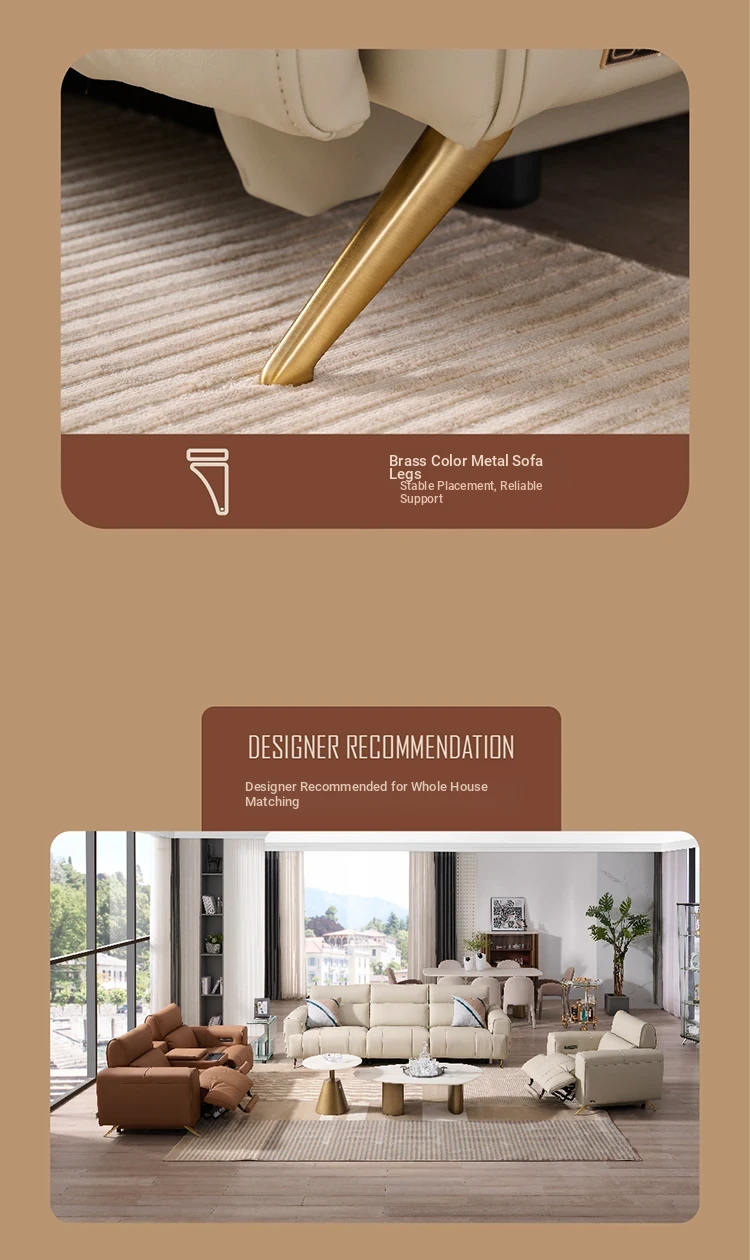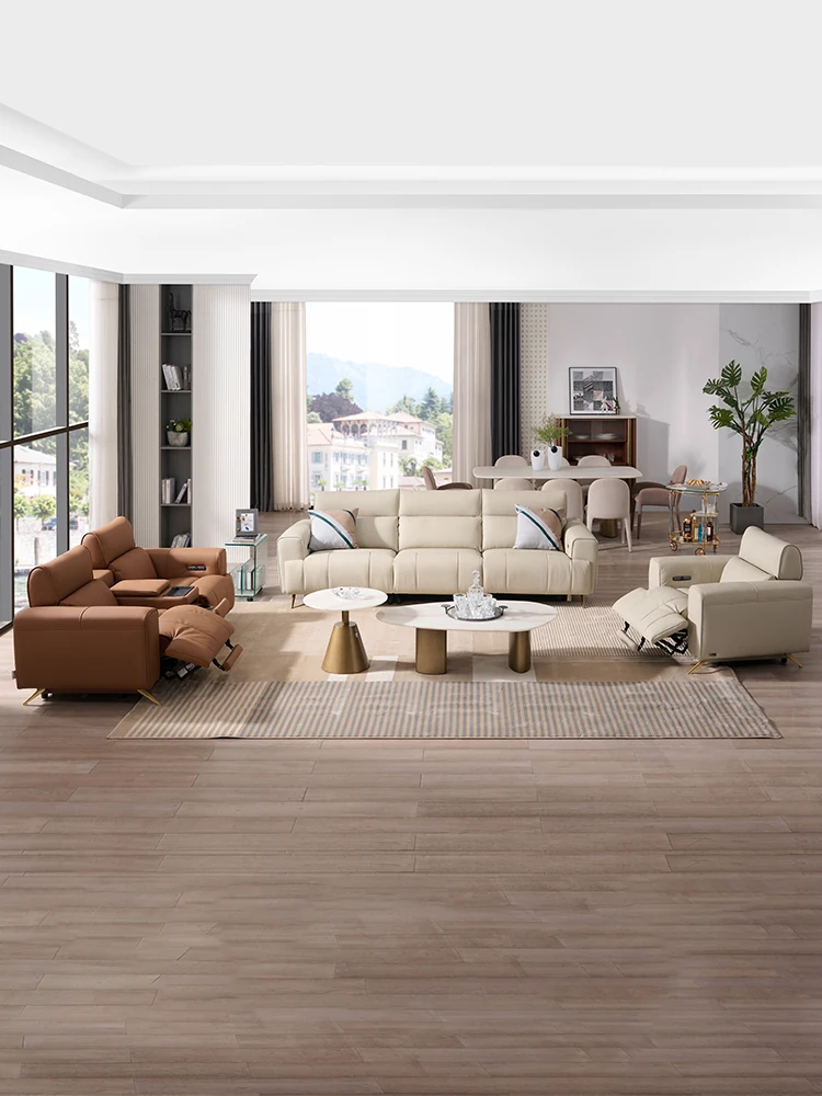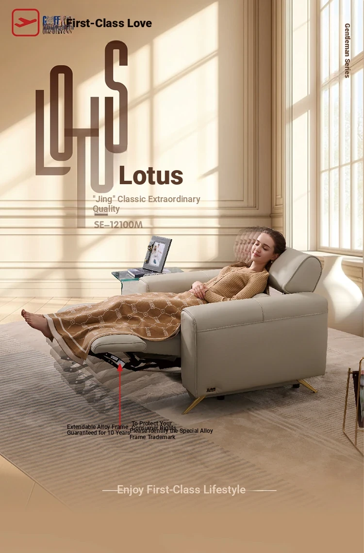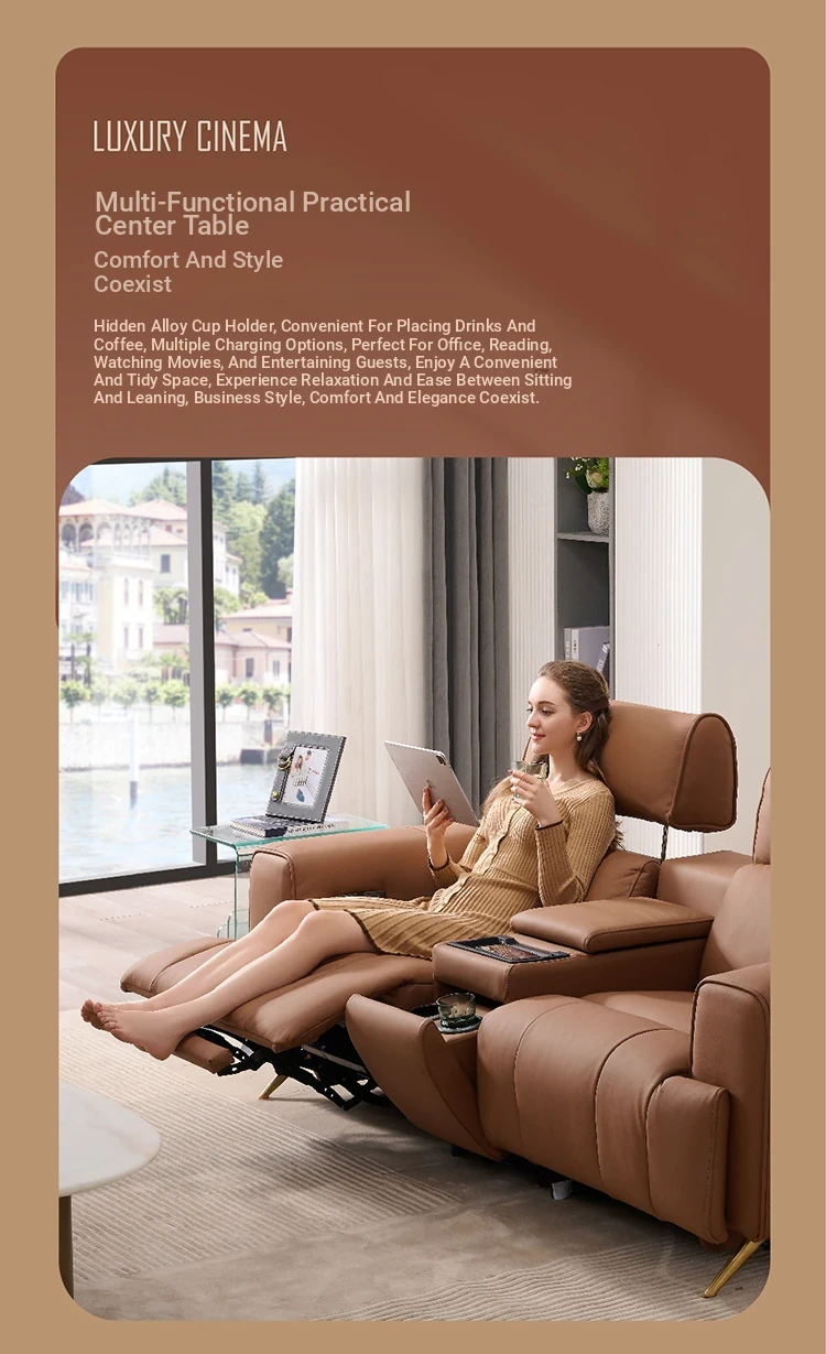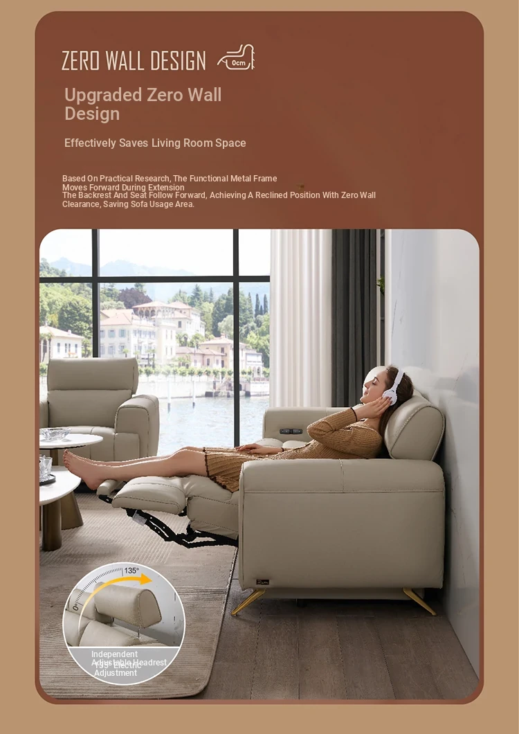 "Chic Modern Minimalist Leather Electric Recliner Sofa - Wall-Hugging Design, Inspired by ZhiHuaShi First Class Style - Model 12100"
