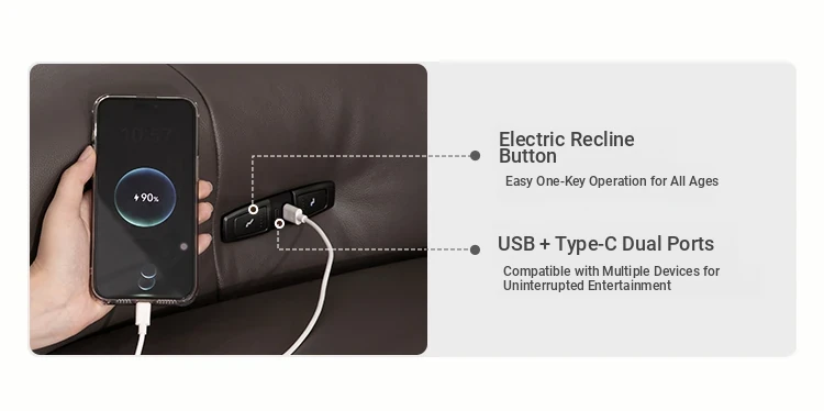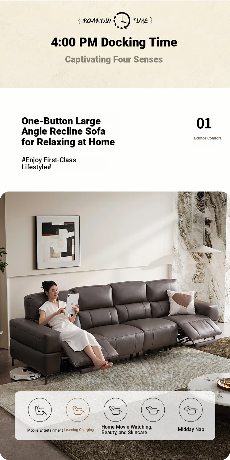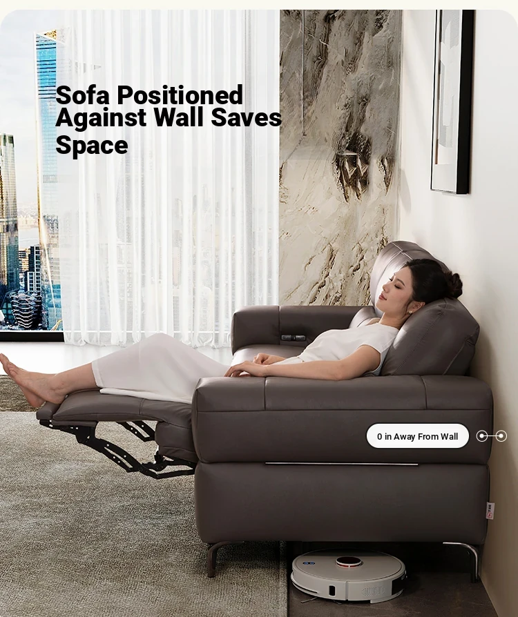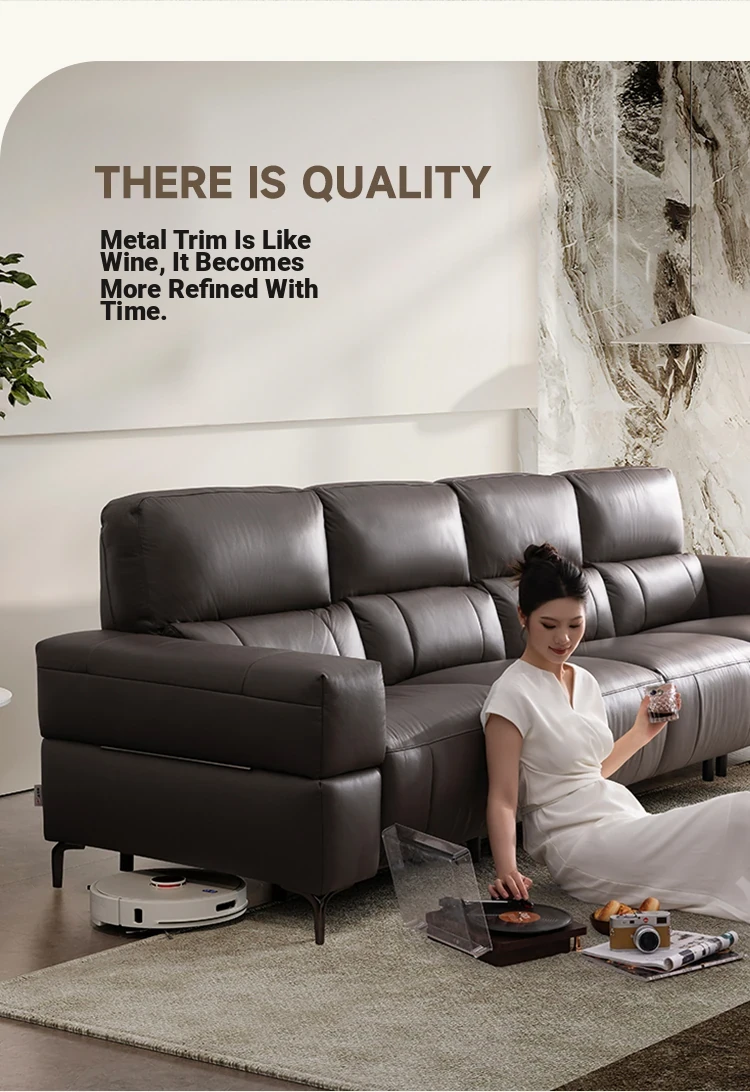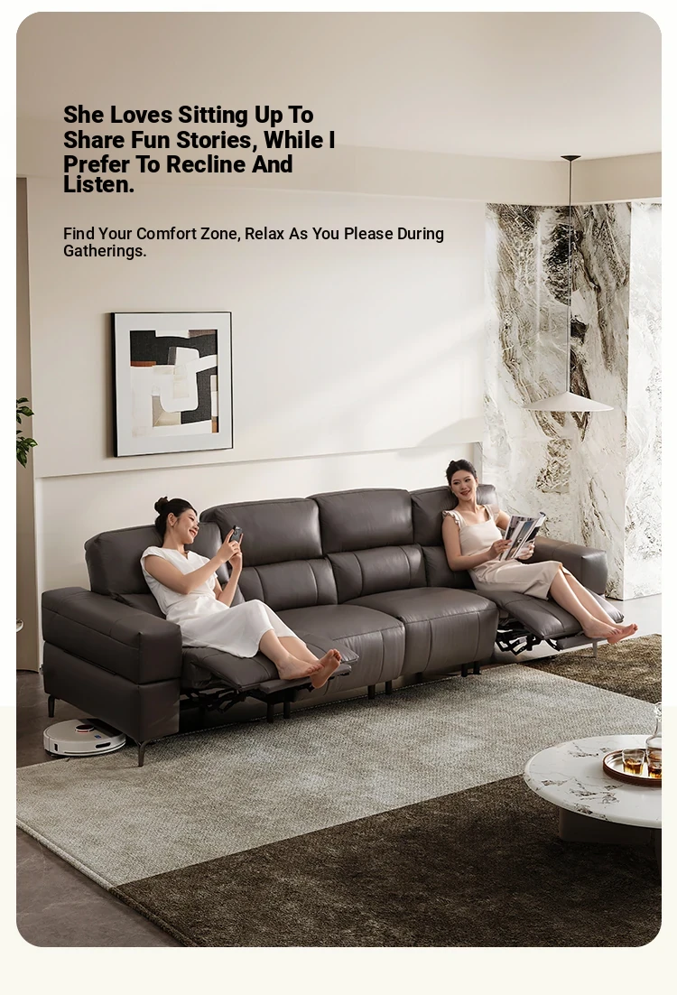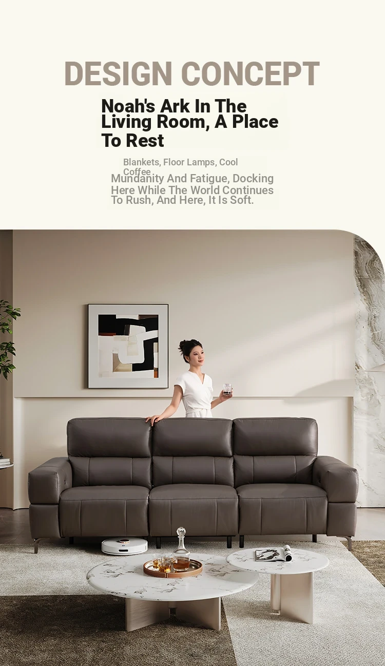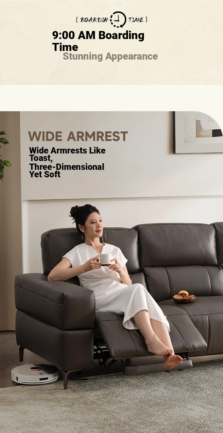 Chivas First Class Italian Minimalist Genuine Leather Spacious Electric Sofa 30722 - Wall-Free Design for Ultimate Comfort and Style