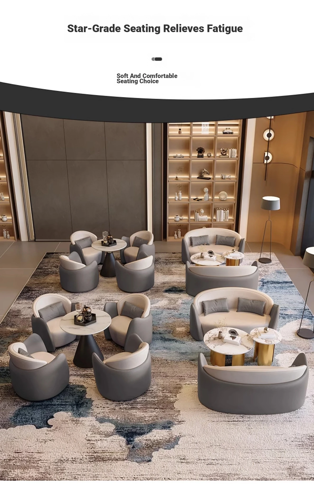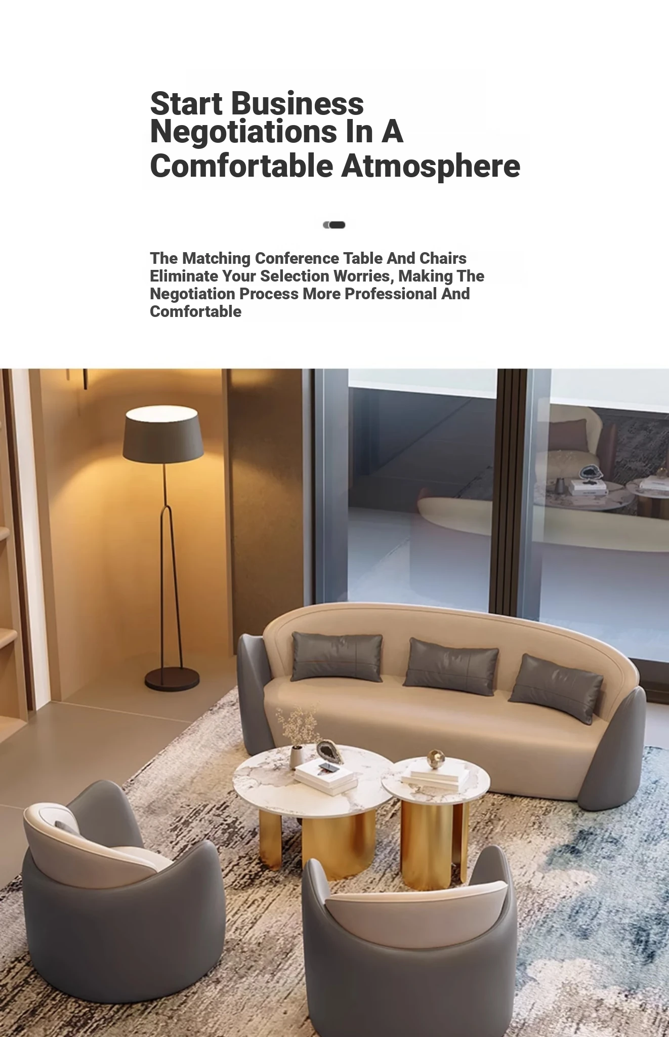 Elegant Business Meeting Sofa Set - Perfect for Reception Areas, Showrooms, and Hotel Lounges. Stylish and Comfortable Seating with Table Combination for a Luxurious Experience.