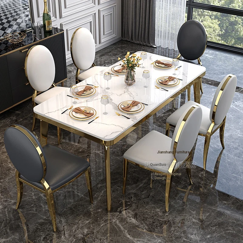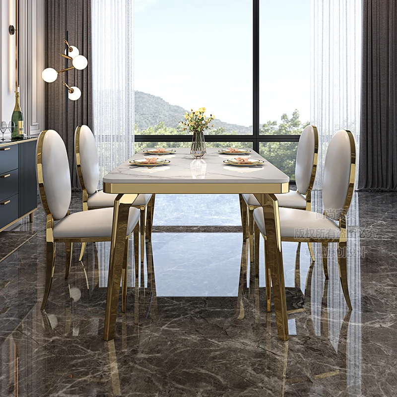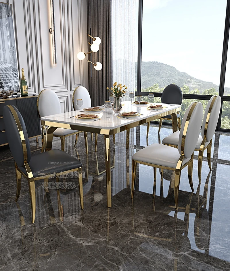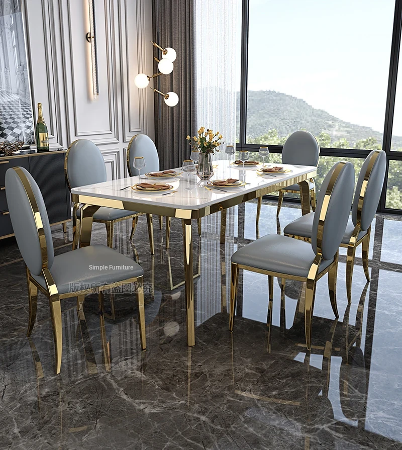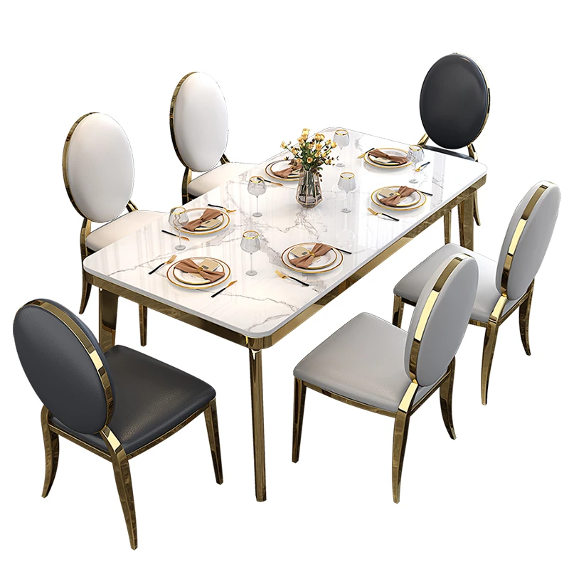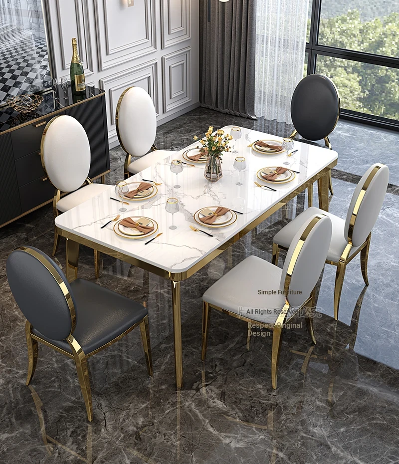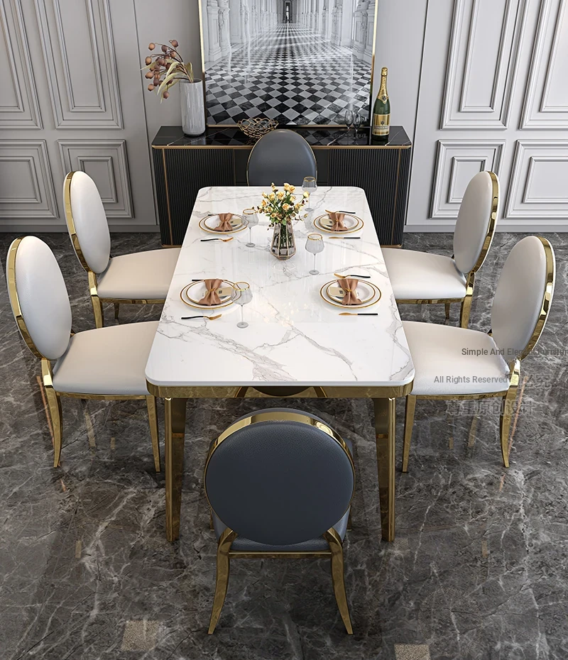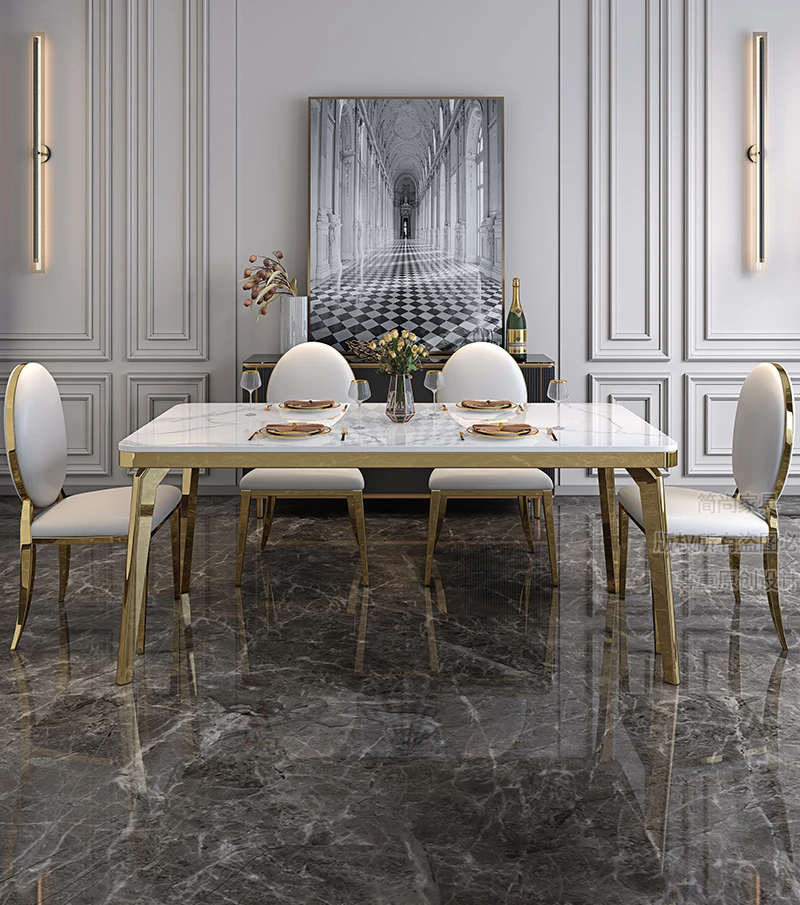Elegant Italian-Style Marble Dining Table and Chair Set for Small Spaces – Modern Rectangular Design Perfect for High-End Home Decor