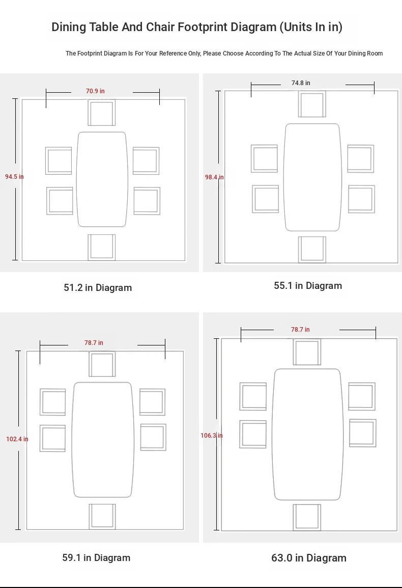 150x 90 (one table and six chairs)