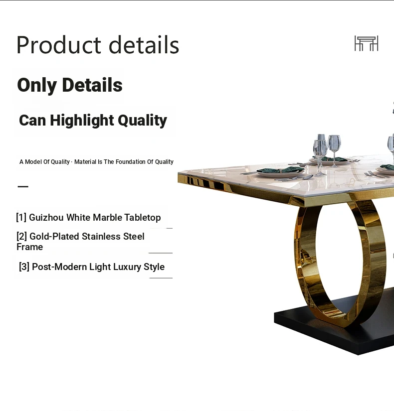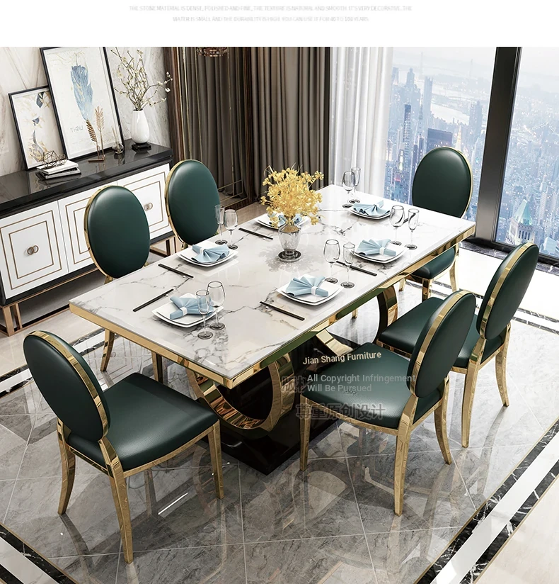 Elegant Modern Minimalist Marble Dining Table and Chair Set - Perfect for Hong Kong Style Living Rooms, Ideal for Compact Spaces, Rectangular Design for Home Dining
