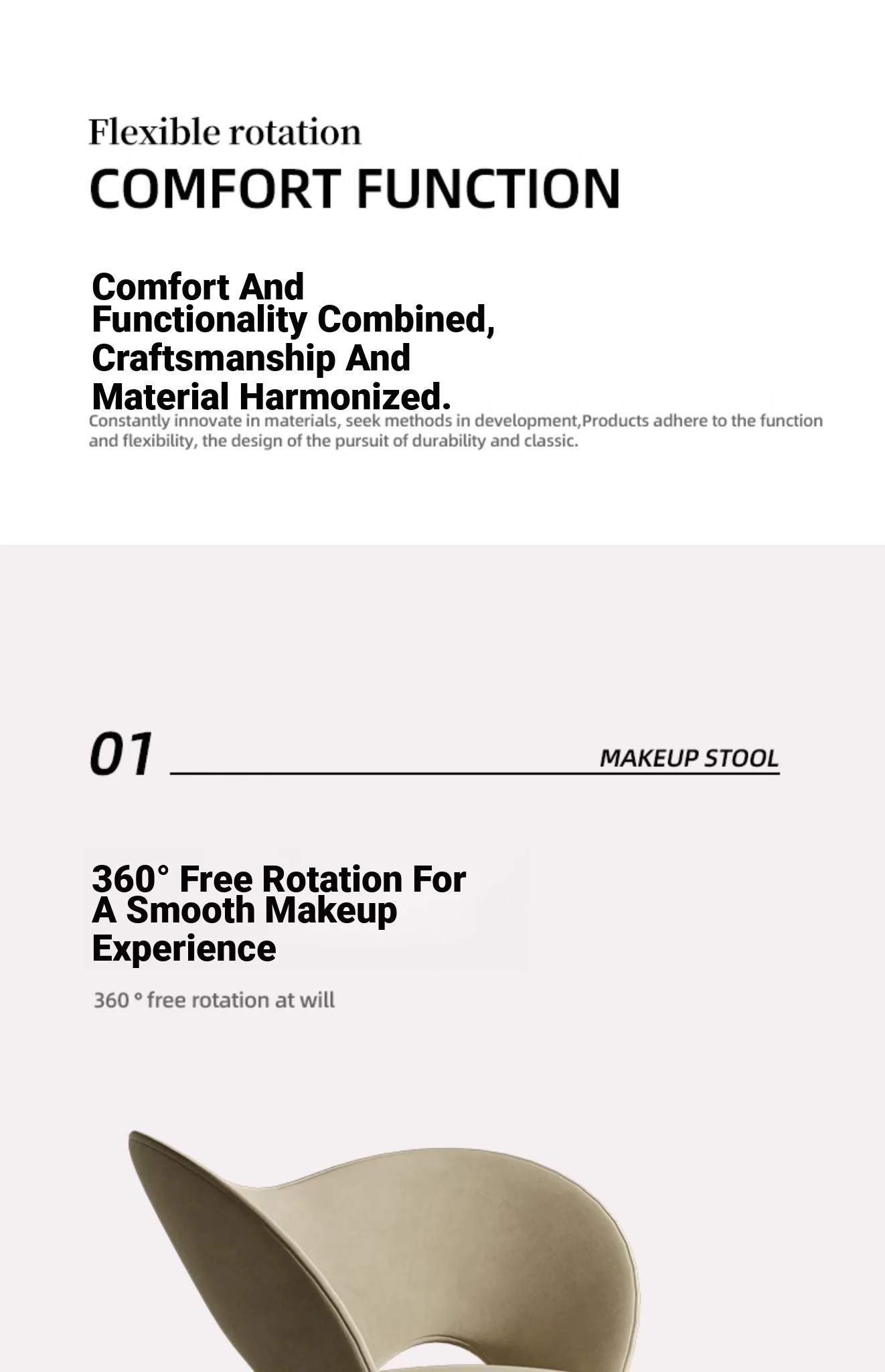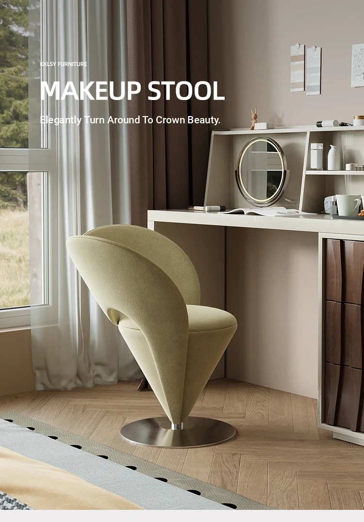 Elegant Vanity Stool for Small Spaces - Rotatable Makeup Chair with High-End Feel, Perfect for Bedrooms, Beauty Salons, and Nail Studios.