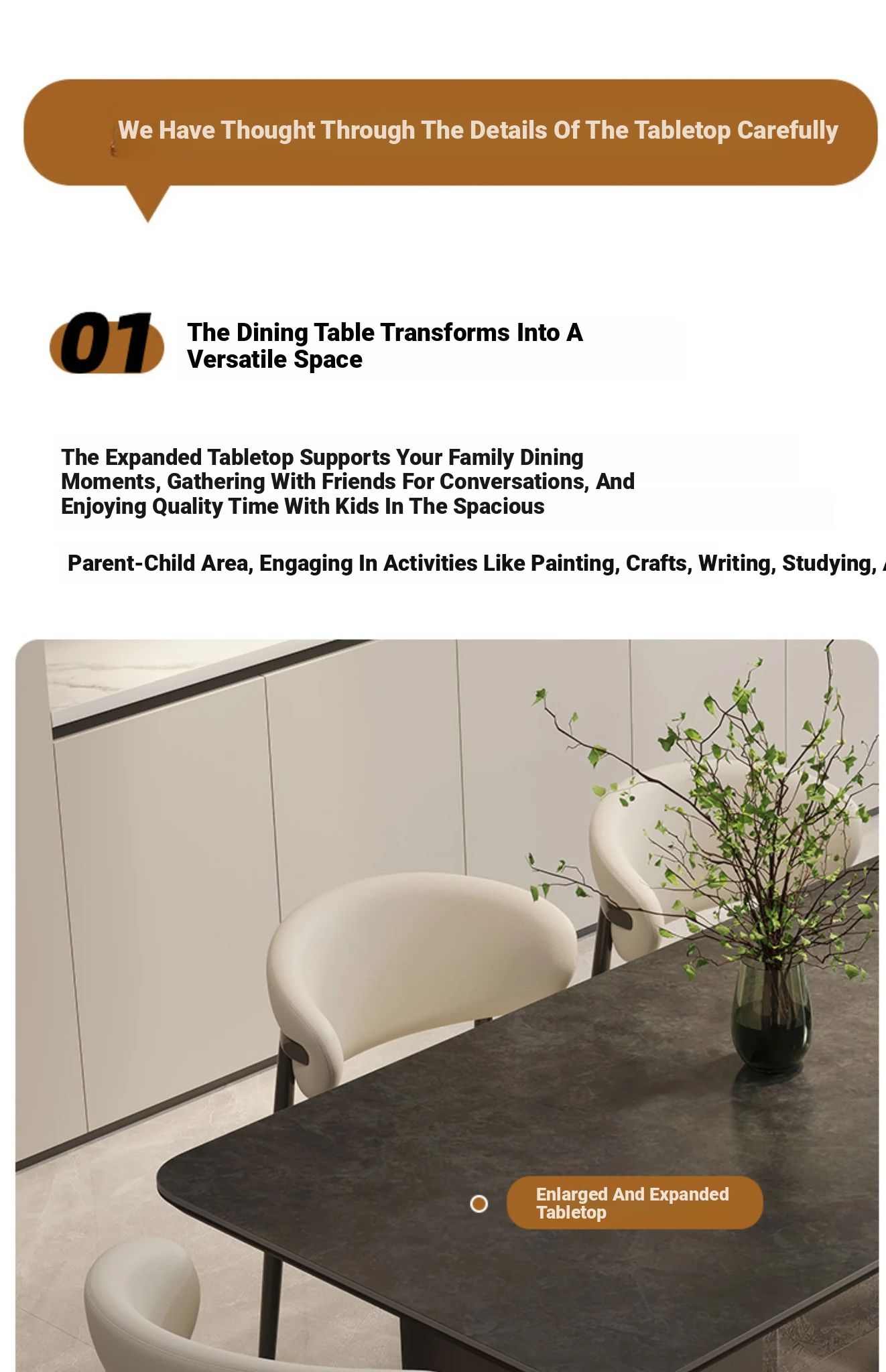 Italian Minimalist Luxury Dining Table - Full Support Rock Panel Design for Small Spaces, Modern and Simple Home Use, Perfect for Cozy Dining Areas