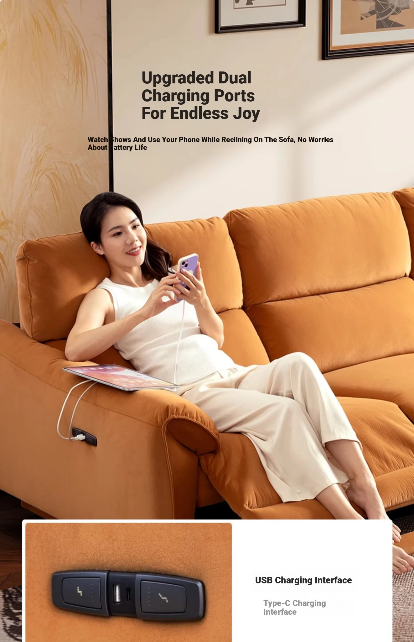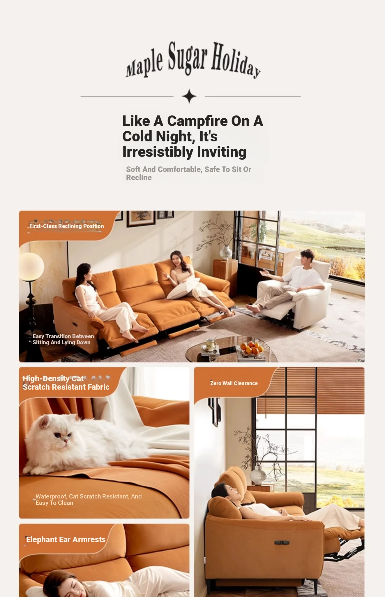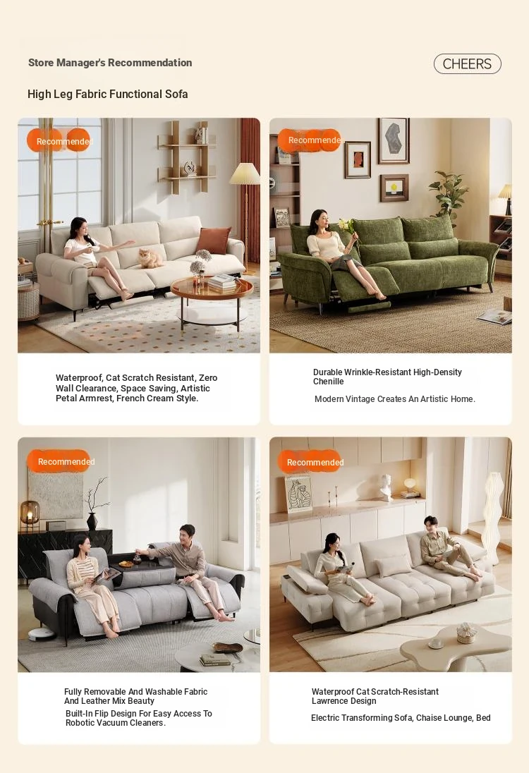 Luxury Electric Sofa with Cat Scratch Fabric - French Vintage Style, Zero Wall Space Design, by Zhihua Shi, Model 30210. Perfect for Modern Living Rooms!