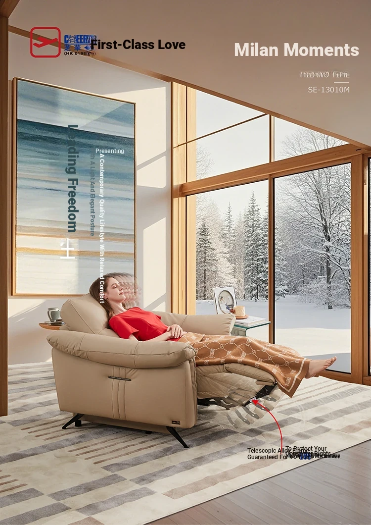 【Luxury Italian Minimalist Leather Electric Recliner Sofa - Model 13010, Wall Hugger Design, Perfect for Any Living Space】