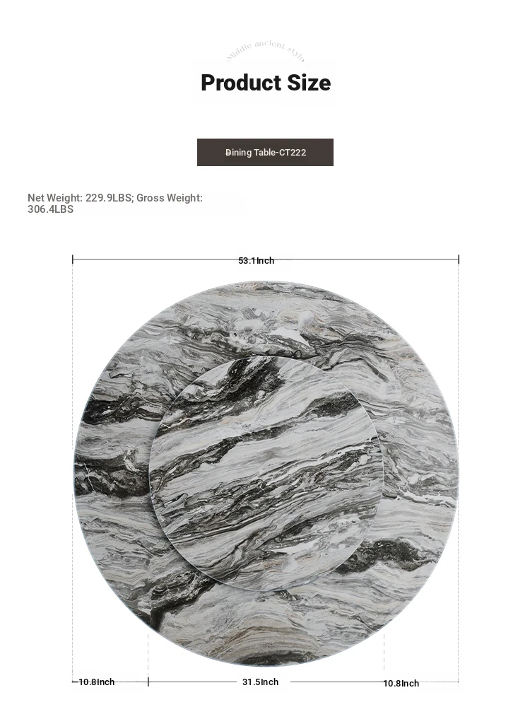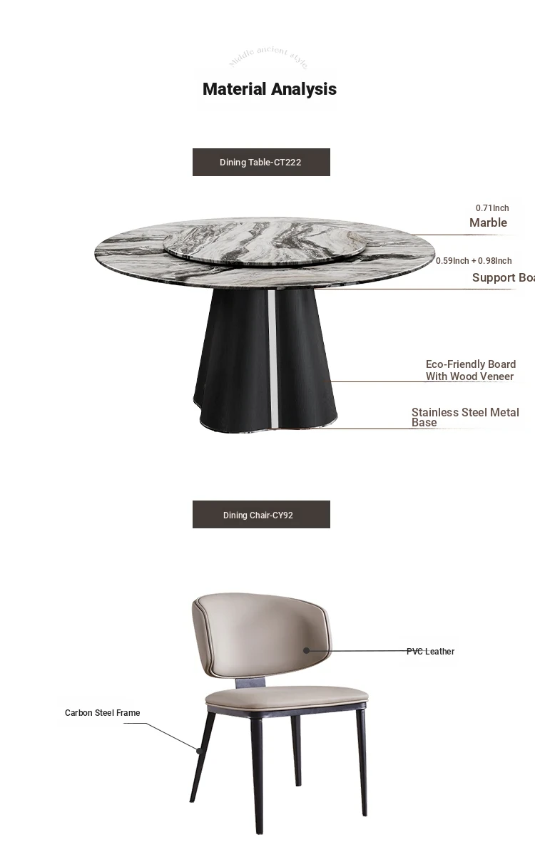 Luxury Italian Style Marble Round Dining Table Set - Chic 2025 New Design for Living Room, Home Use - CT222