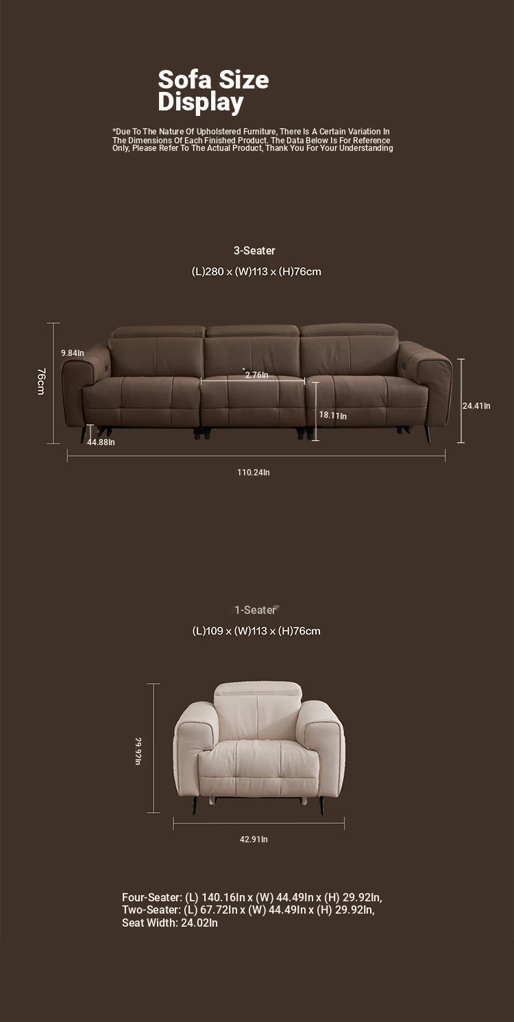 【Luxury Leather Reclining Sofa】ZhiHuaShi First-Class Modern Minimalist Electric Wall-Hugger Sofa 12316M - Perfect for Your Living Room!