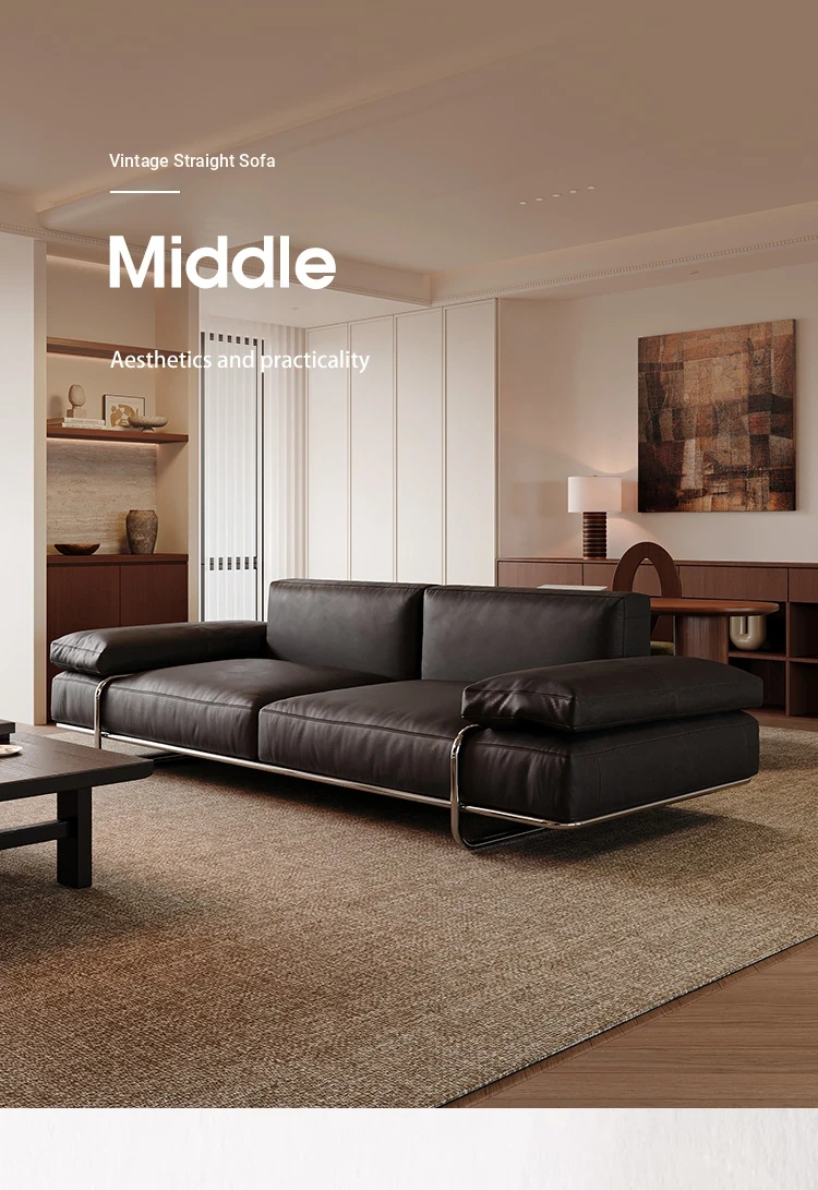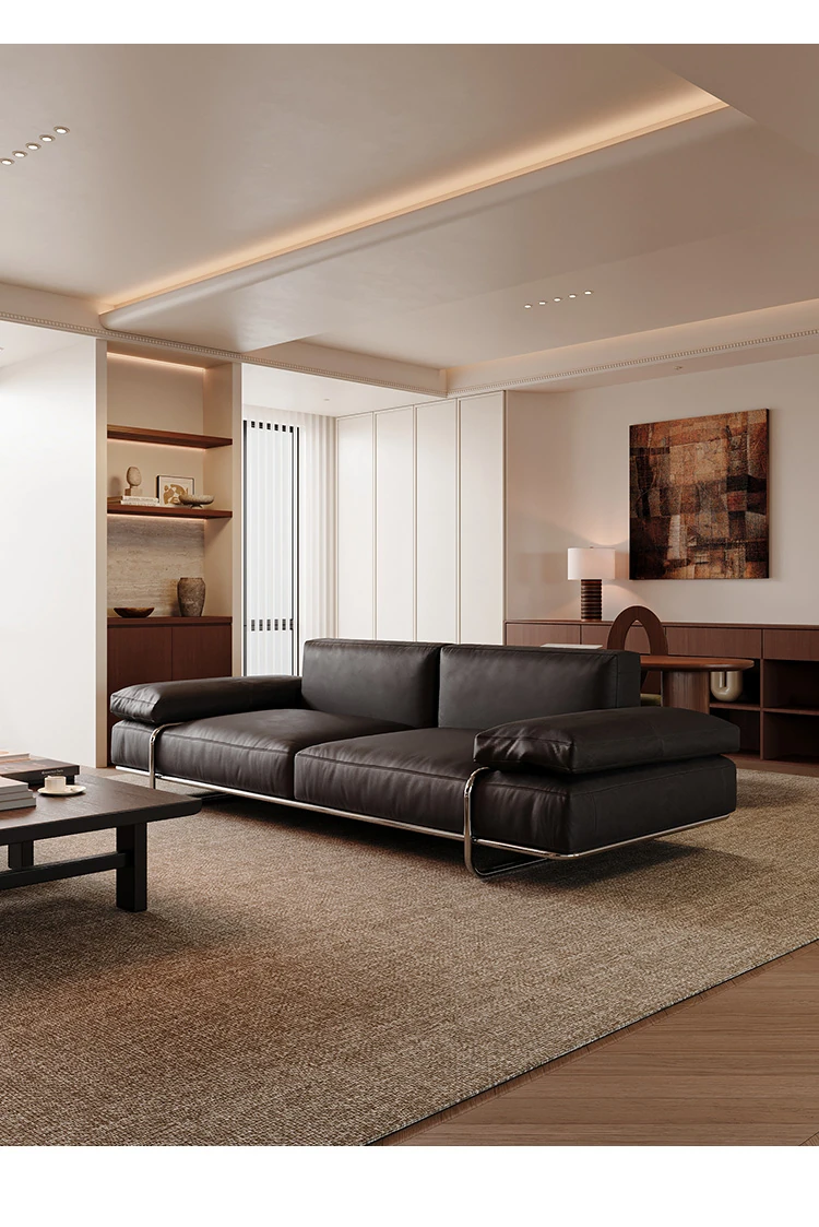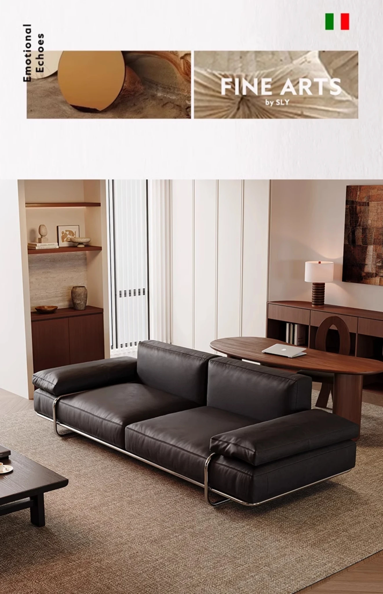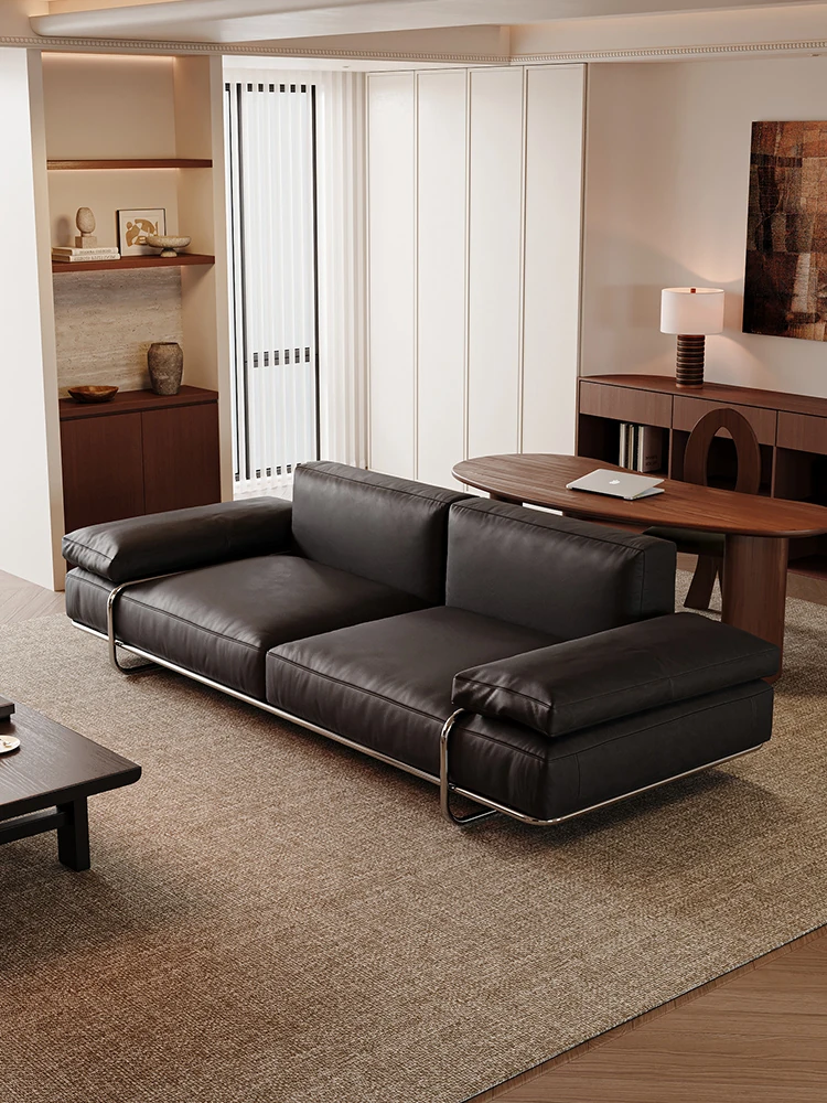 Minimalist Italian Bauhaus Style Sofa for Small Living Rooms - Cat Paw Leather Design for Studio and Office Use