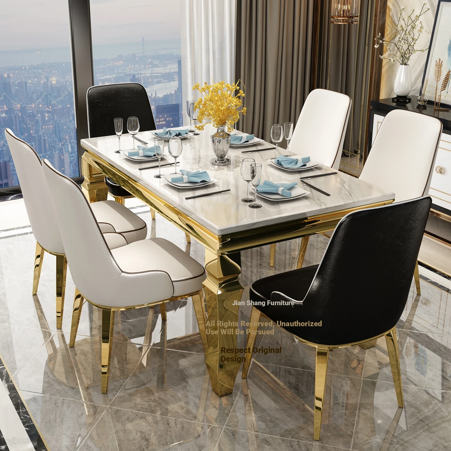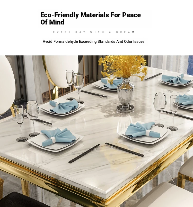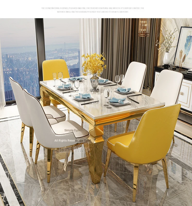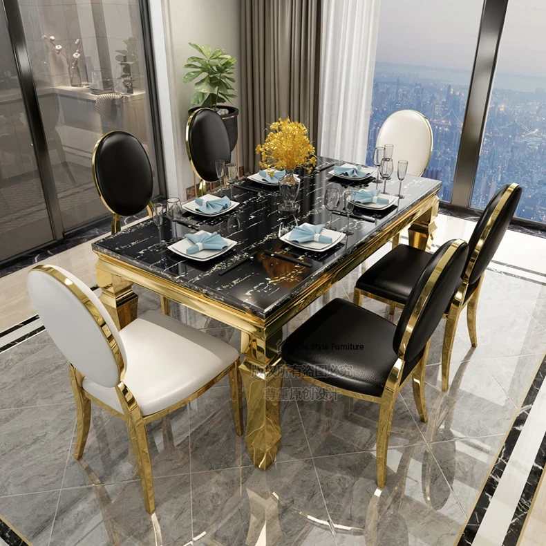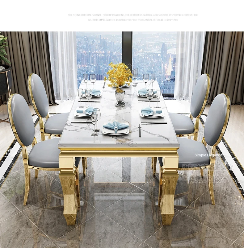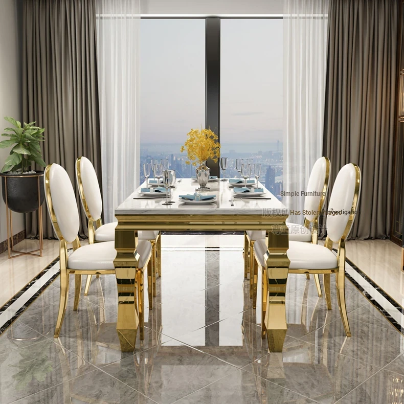 Modern Minimalist Light Luxury Marble Dining Table Set for Small Spaces - Rectangular Stainless Steel Table and Chairs for 6 People, Perfect for Your Living Room