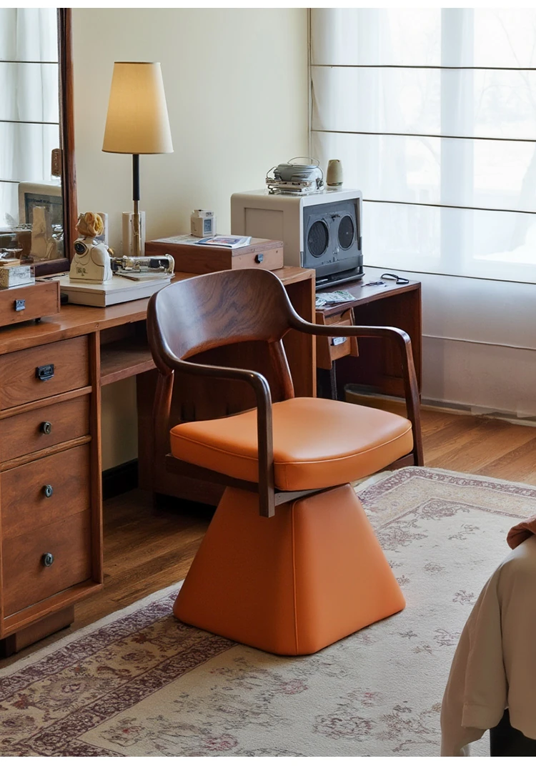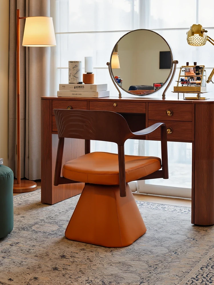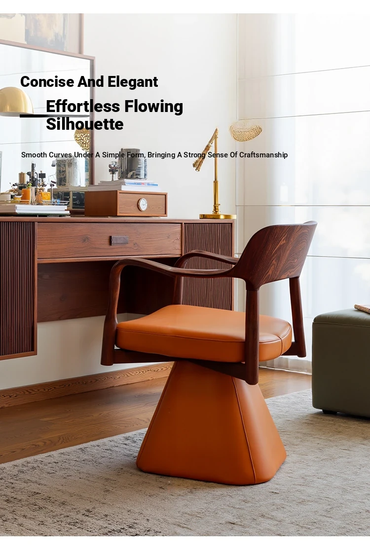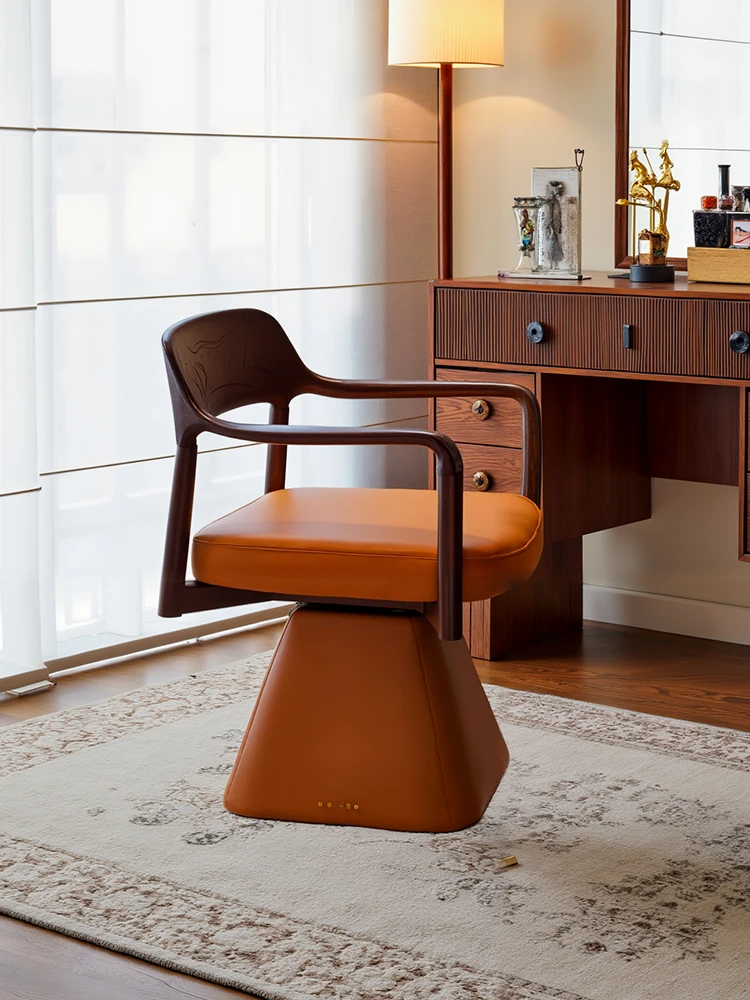 New Chinese Style Vanity Chair - Rotatable Antique Aesthetic Makeup Chair with Solid Wood Backrest, Inspired by Song Dynasty Aesthetics for Elegant Bedrooms