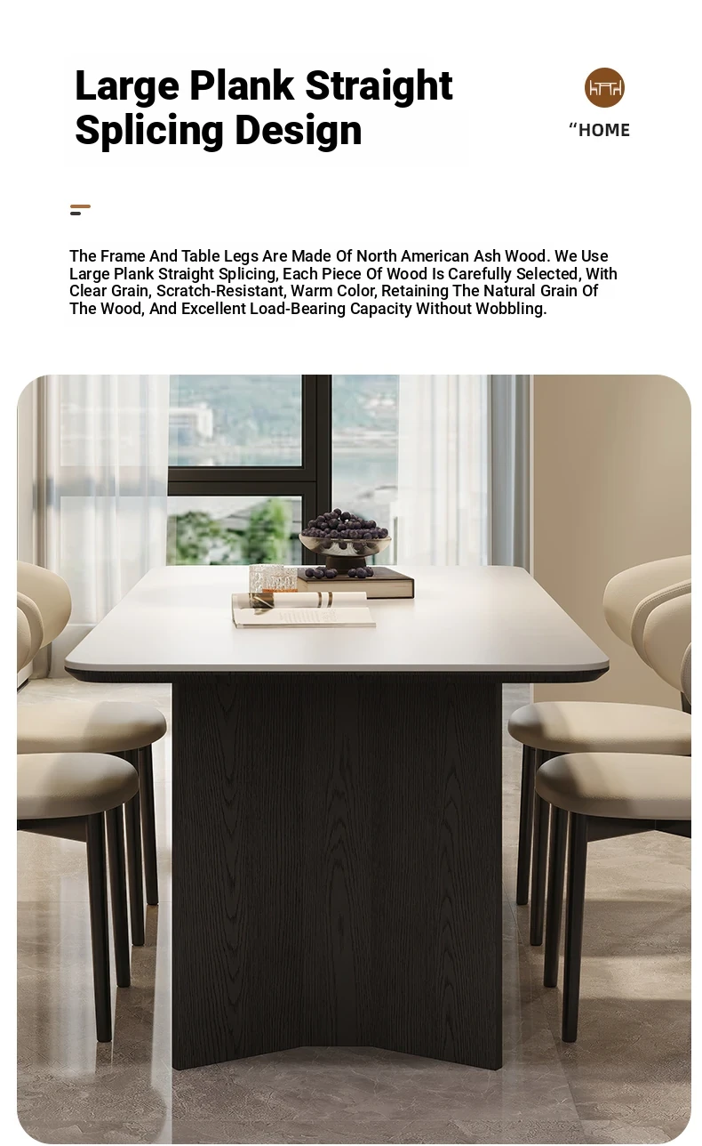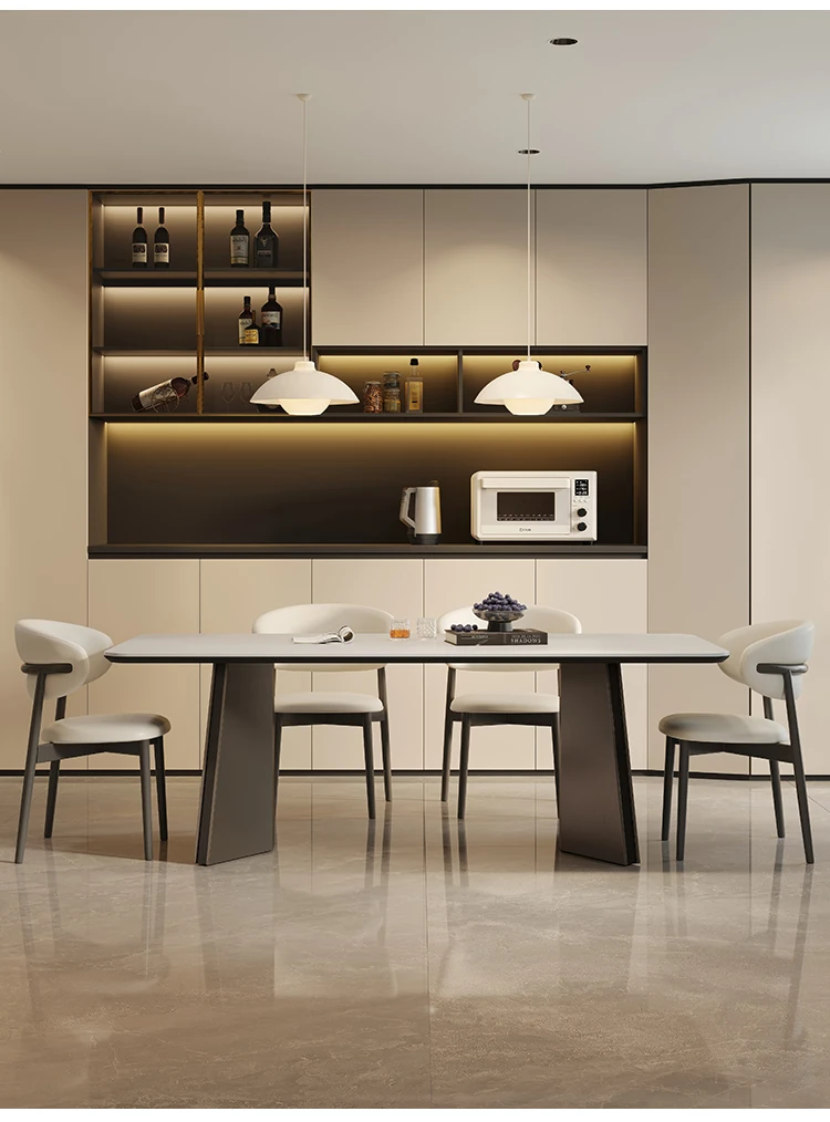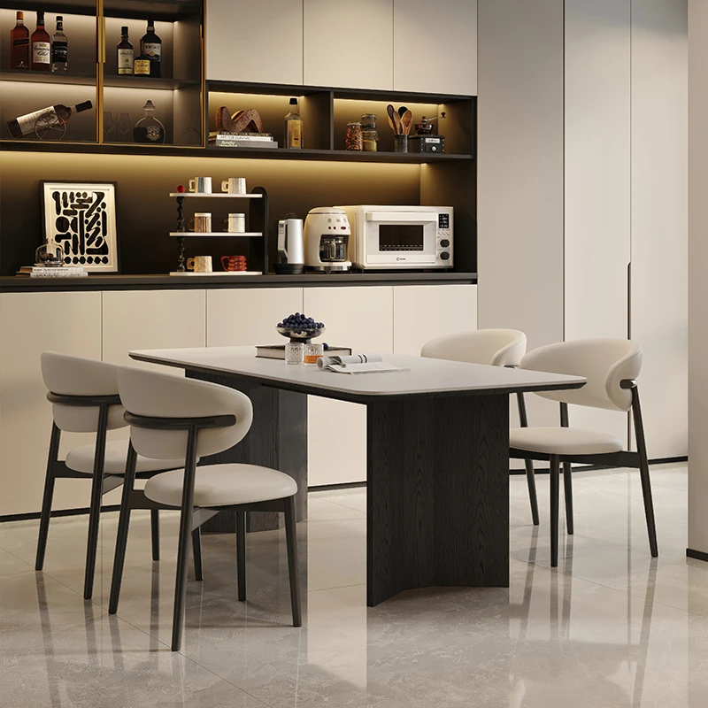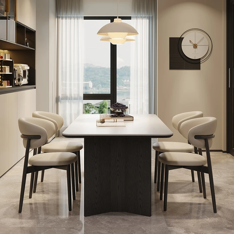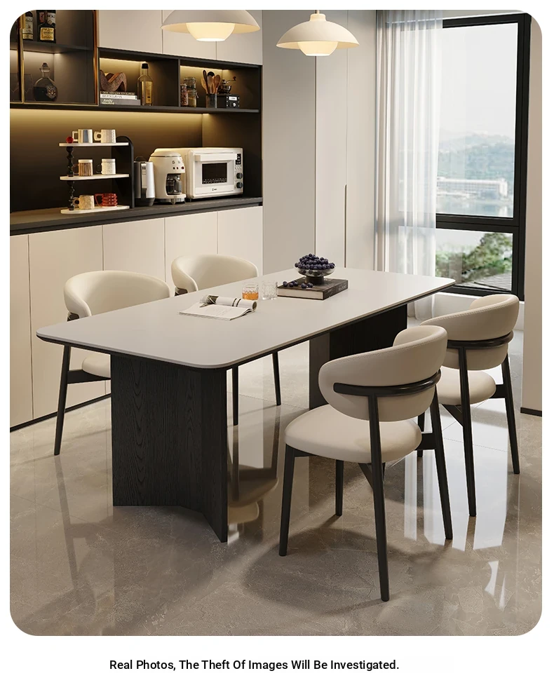 Retro Rectangular Solid Wood Dining Table Set with Rock Plate - Modern Minimalist Design for Small Spaces, Perfect for Home Use.