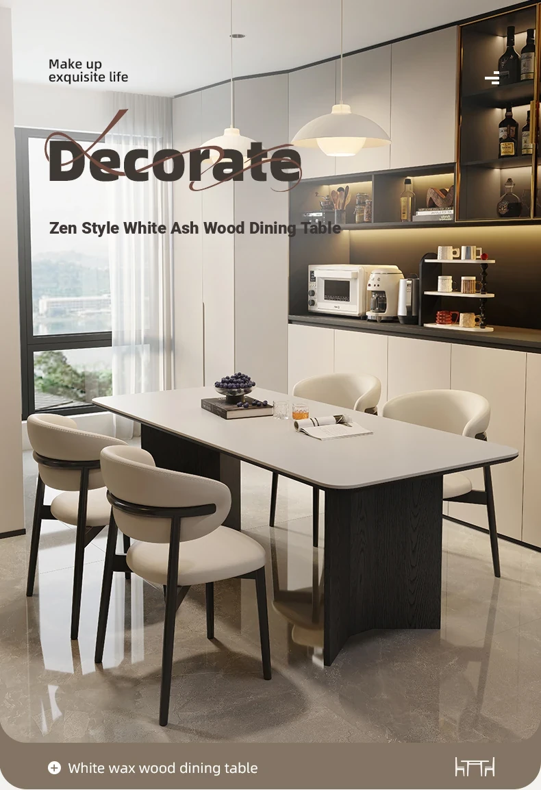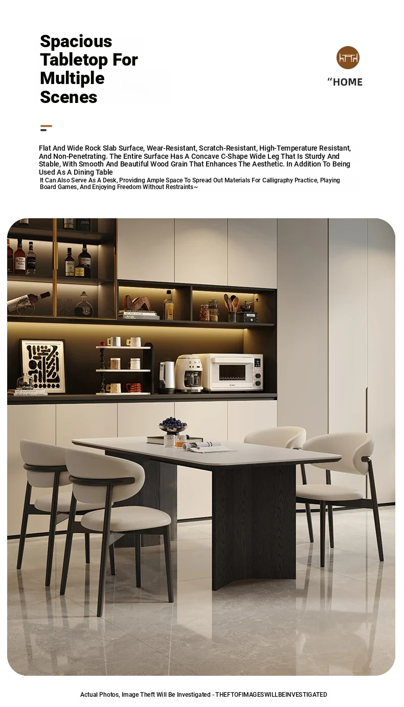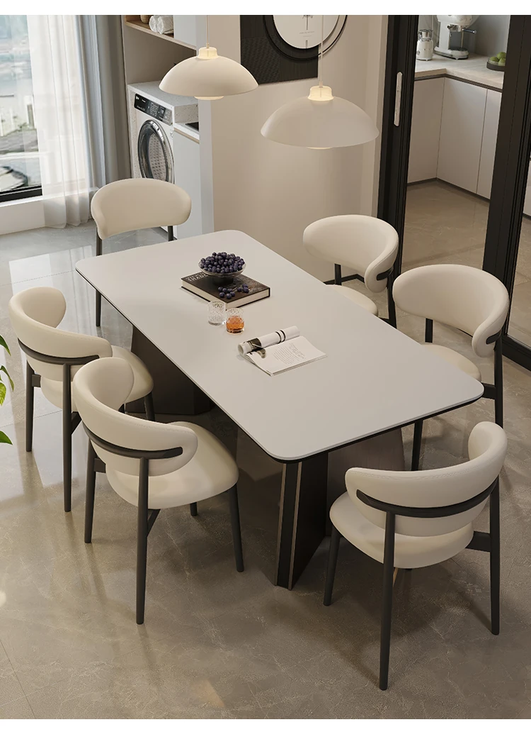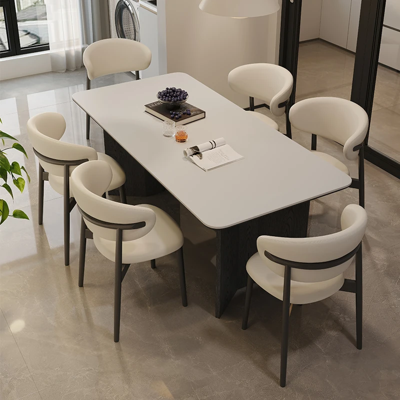 Retro Rectangular Solid Wood Dining Table Set with Rock Plate - Modern Minimalist Design for Small Spaces, Perfect for Home Use.