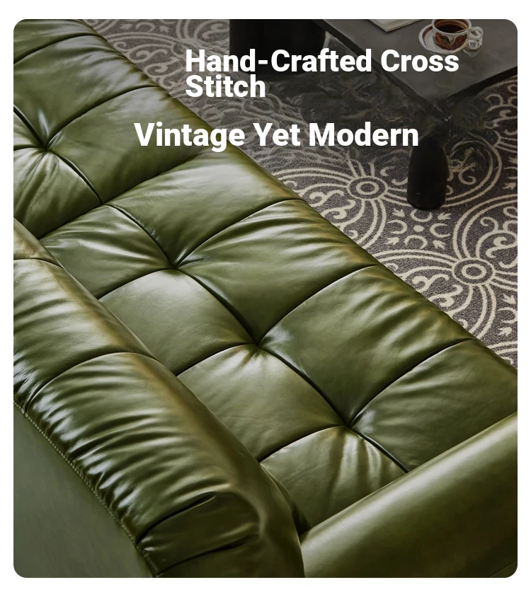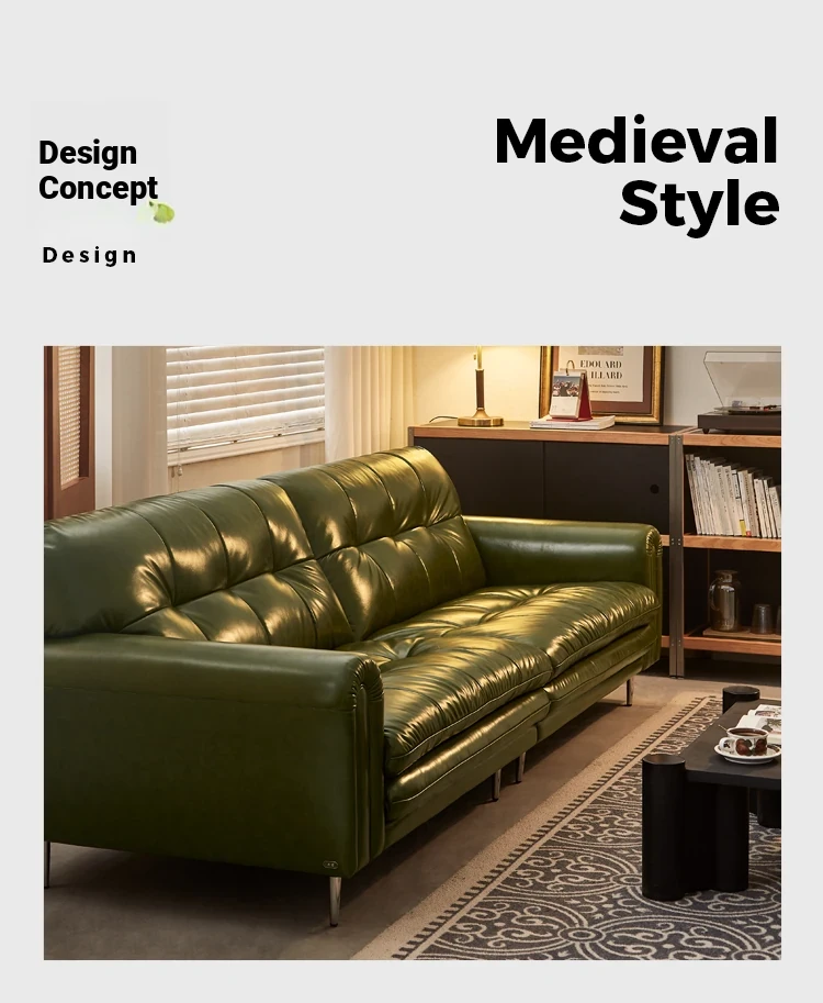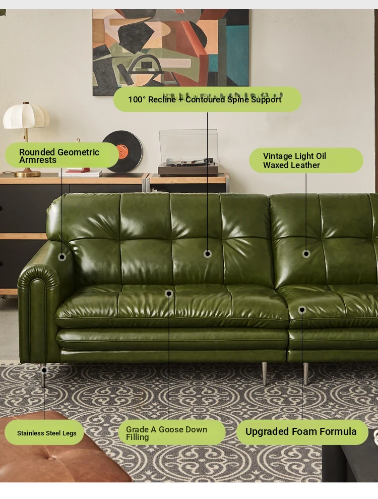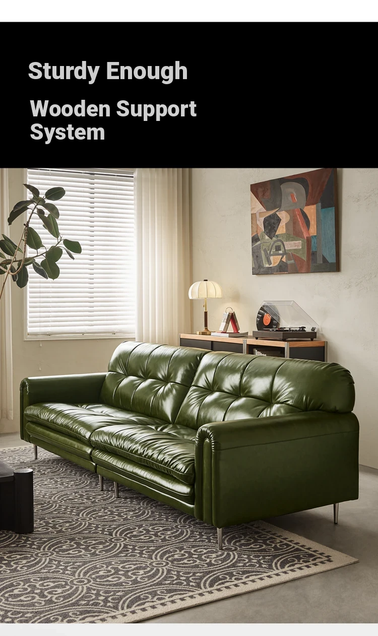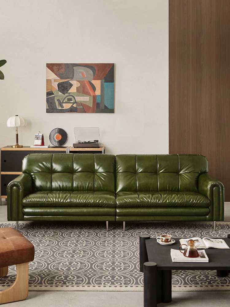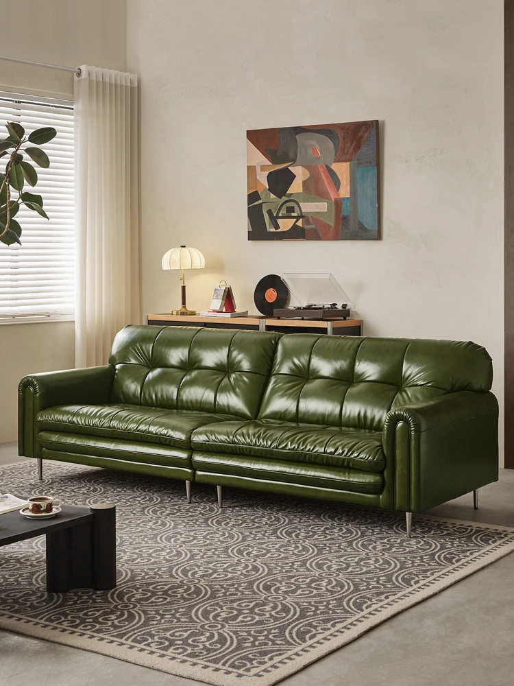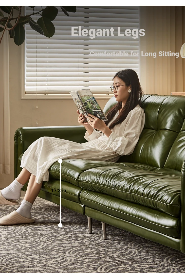Retro Waxed Leather Locke Sofa - Genuine Leather Small Space Green Straight Sofa for Living Room - 2025 New Arrival by Mumu Furniture