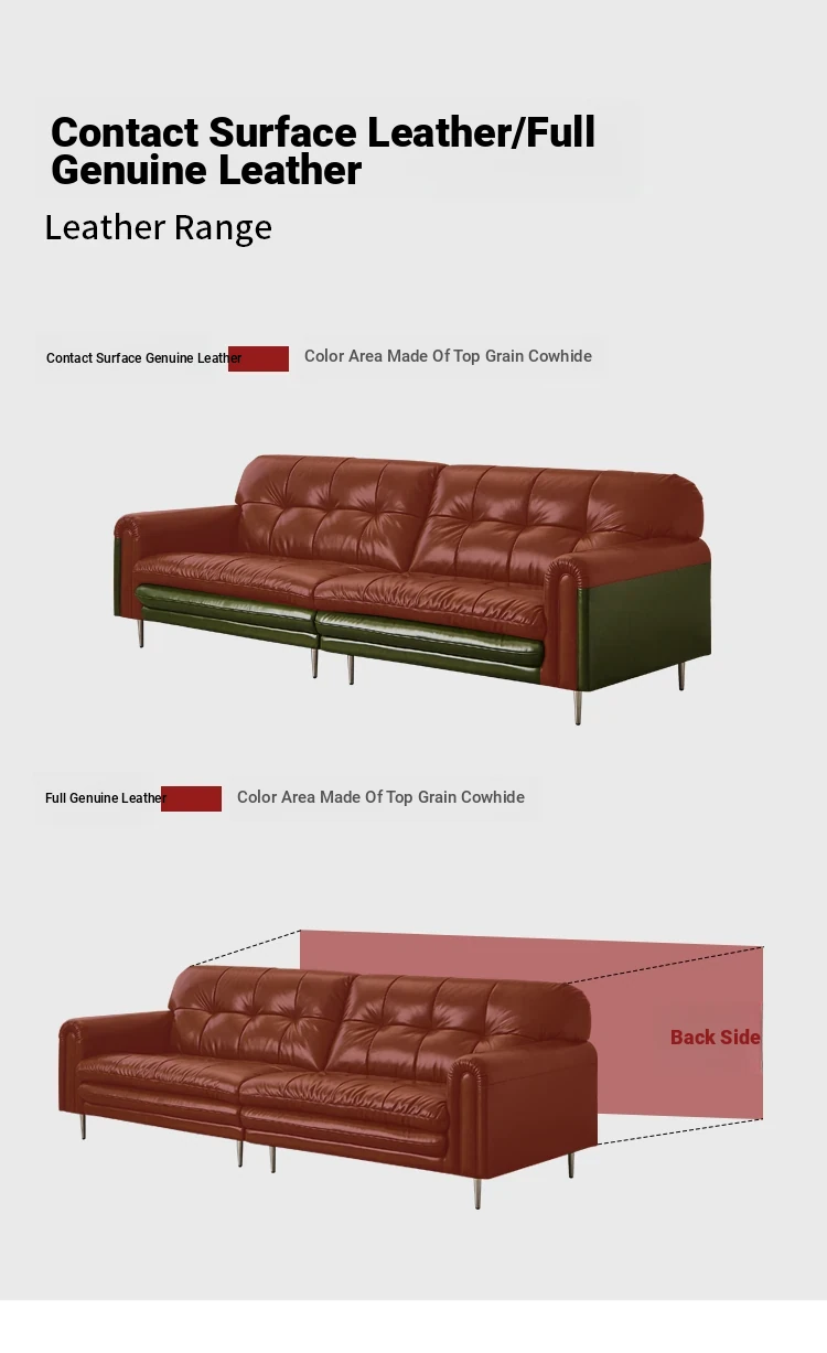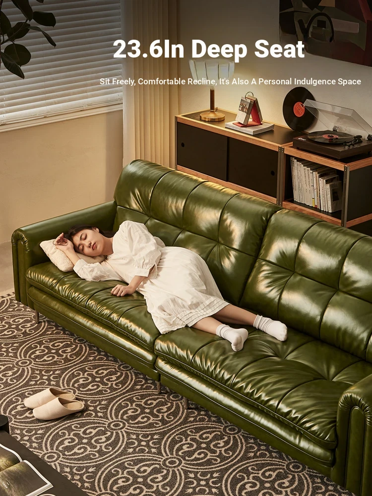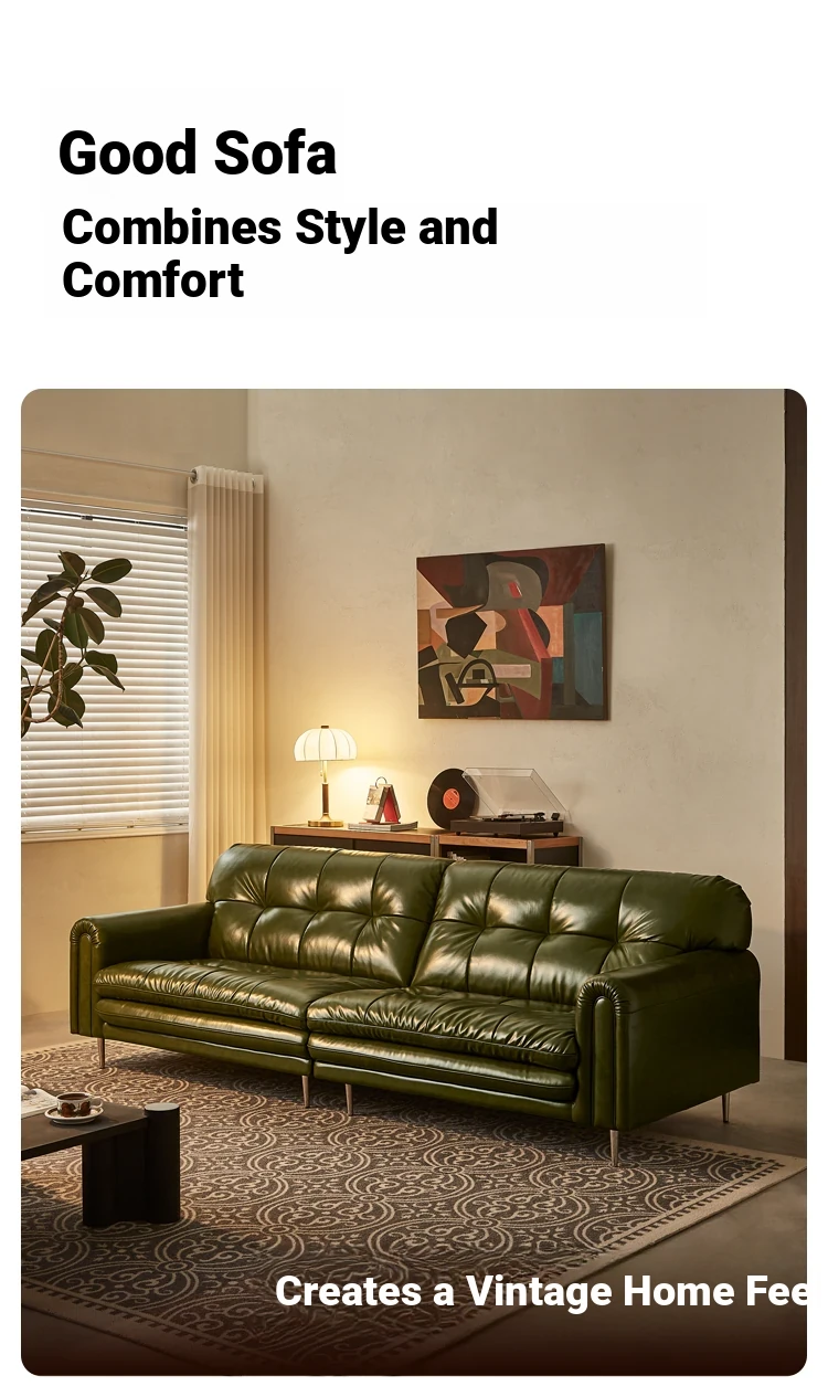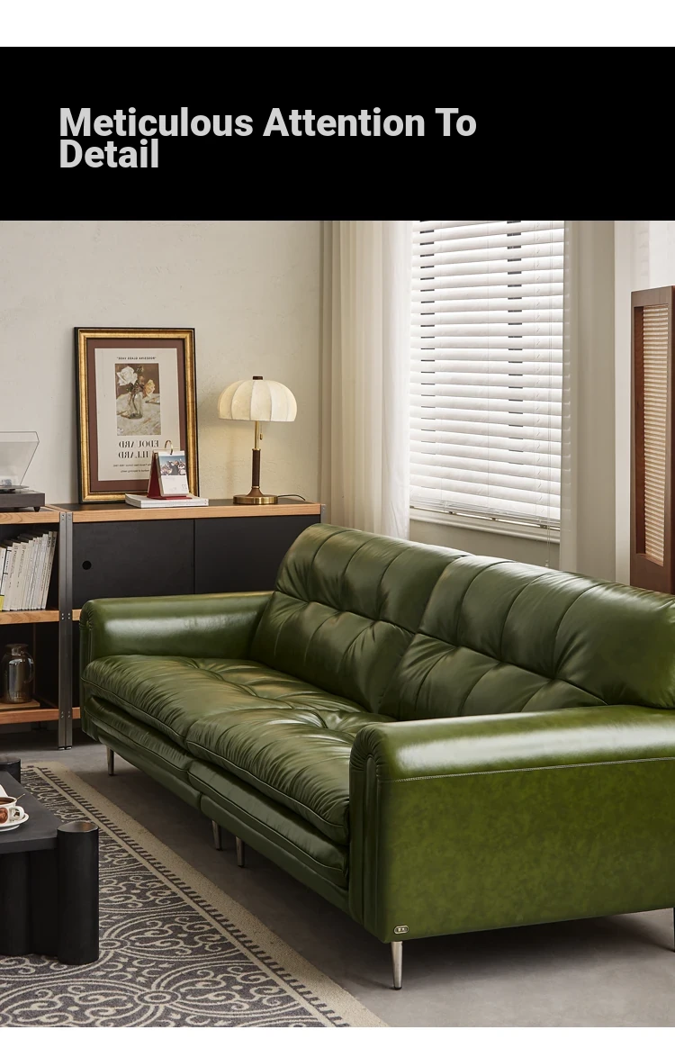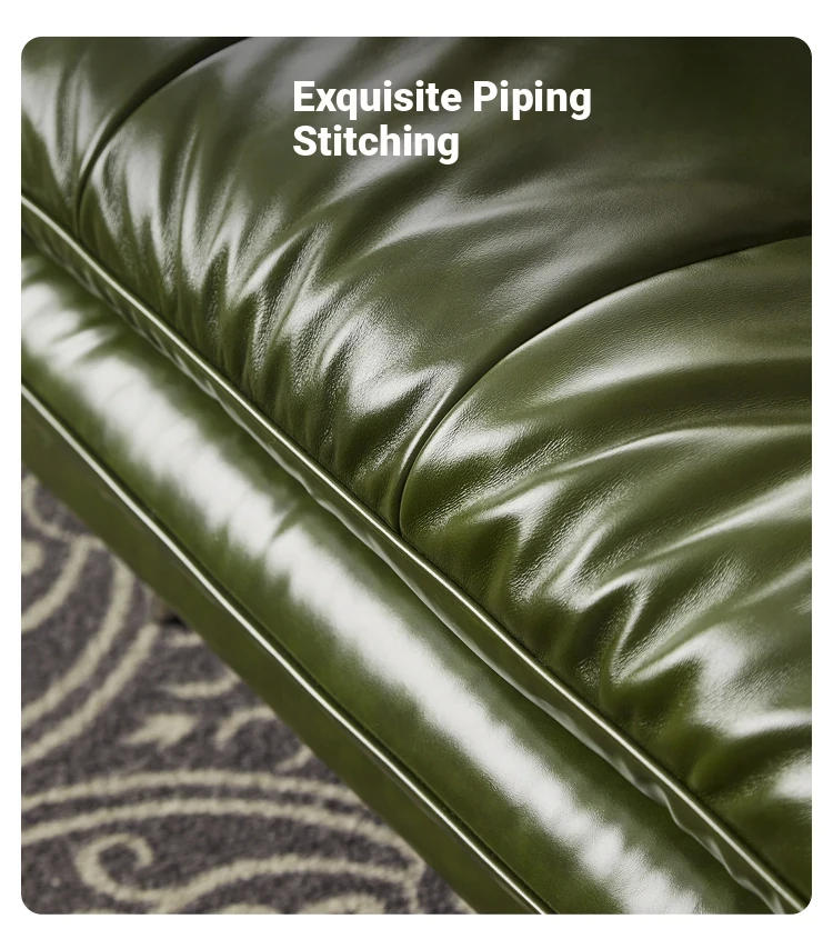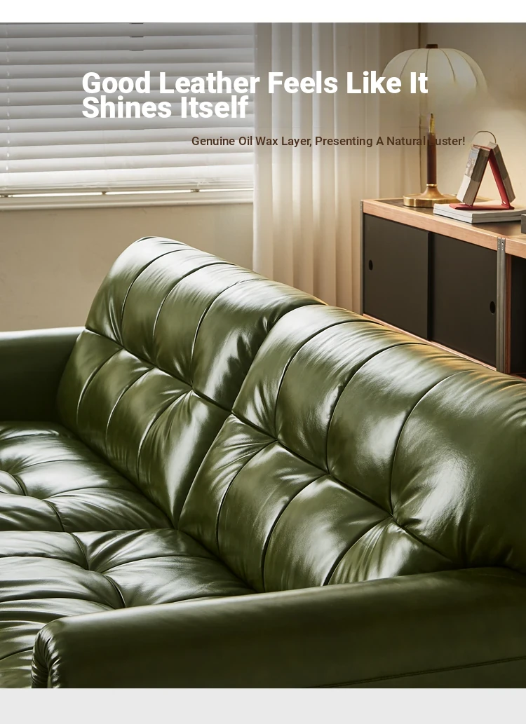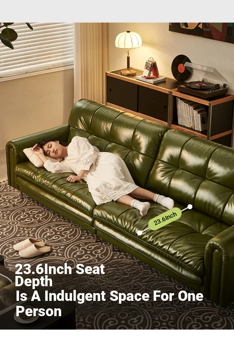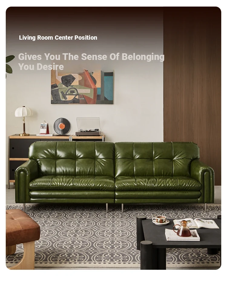 Retro Waxed Leather Locke Sofa - Genuine Leather Small Space Green Straight Sofa for Living Room - 2025 New Arrival by Mumu Furniture