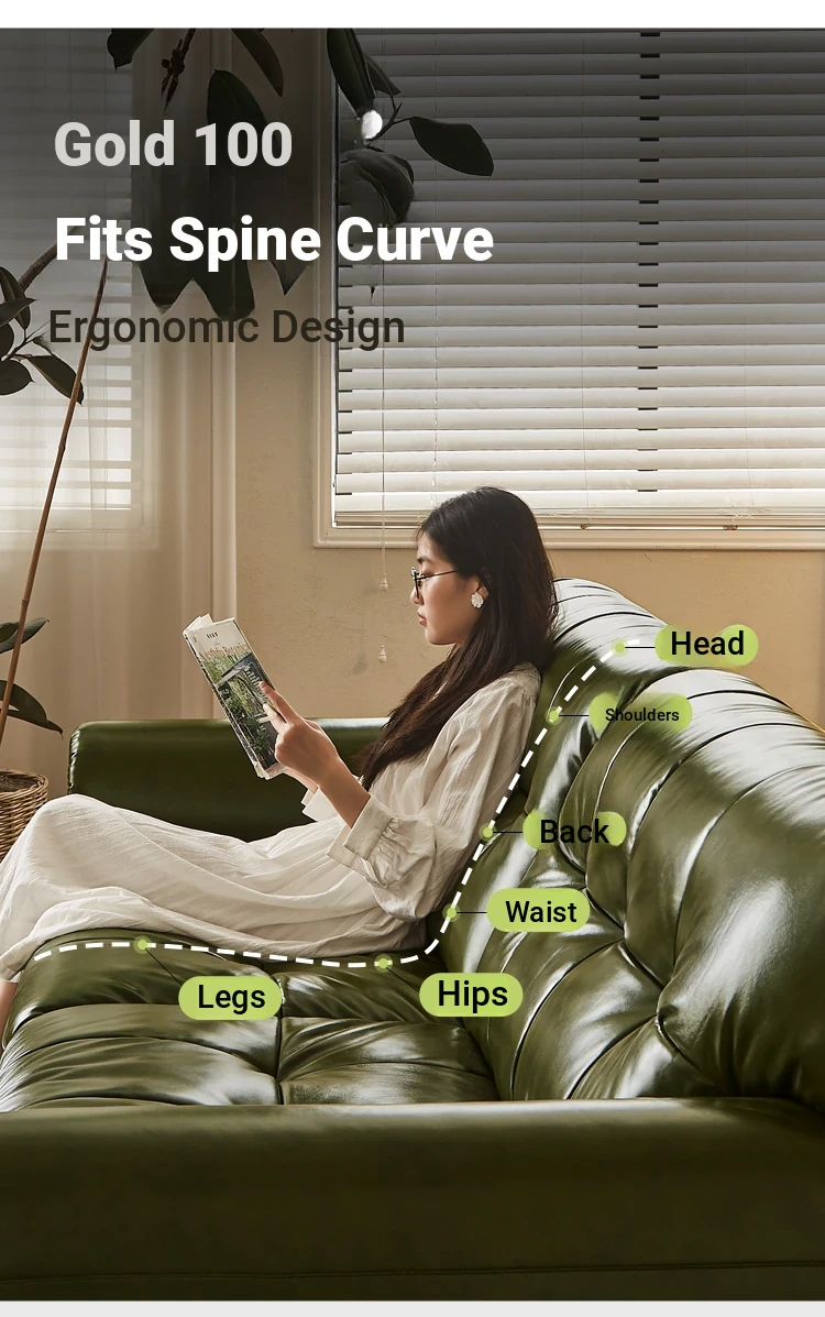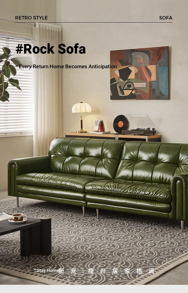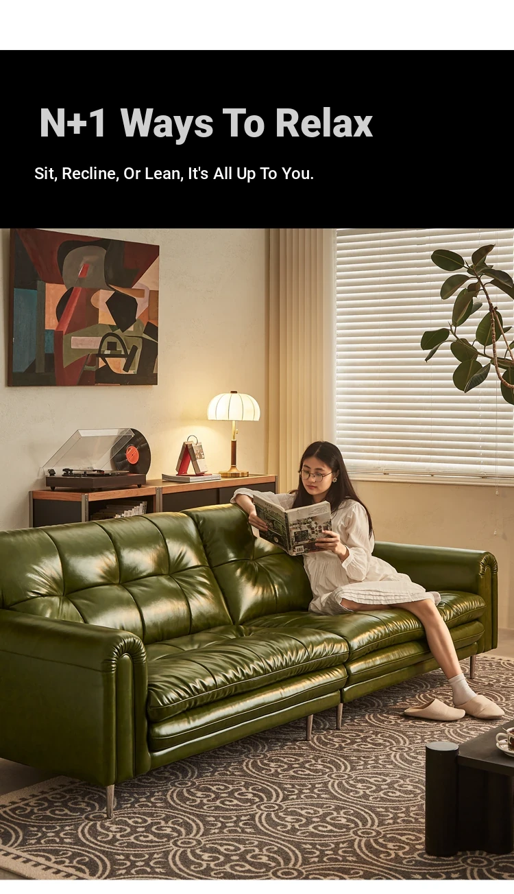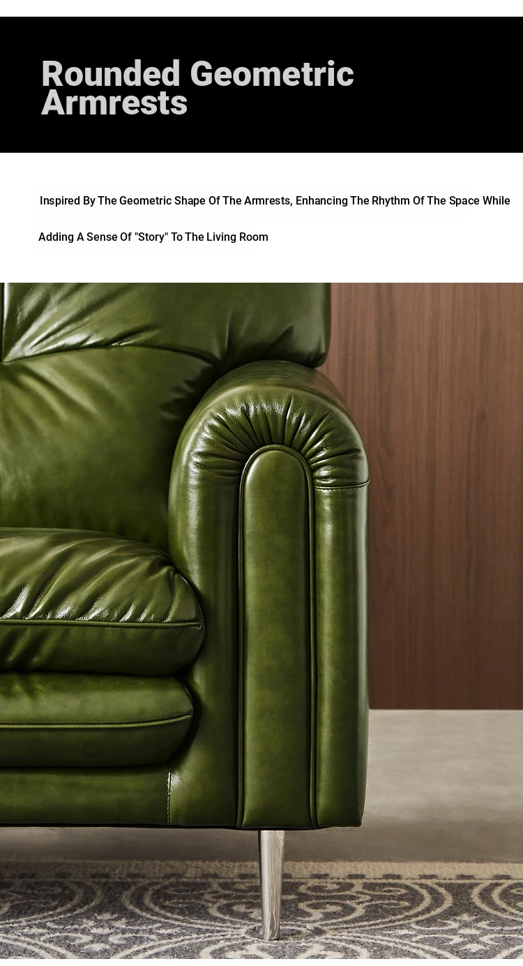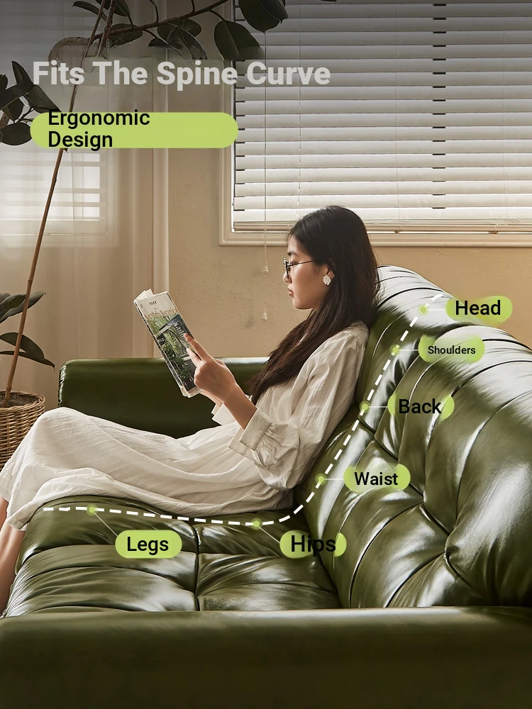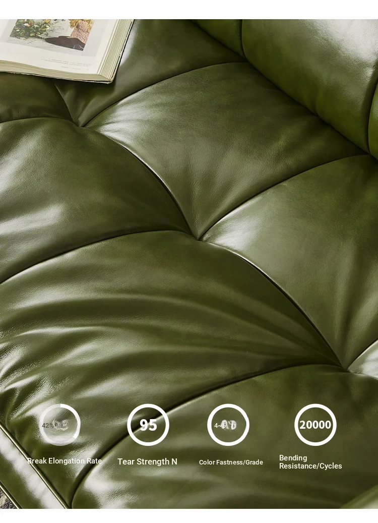 Retro Waxed Leather Locke Sofa - Genuine Leather Small Space Green Straight Sofa for Living Room - 2025 New Arrival by Mumu Furniture