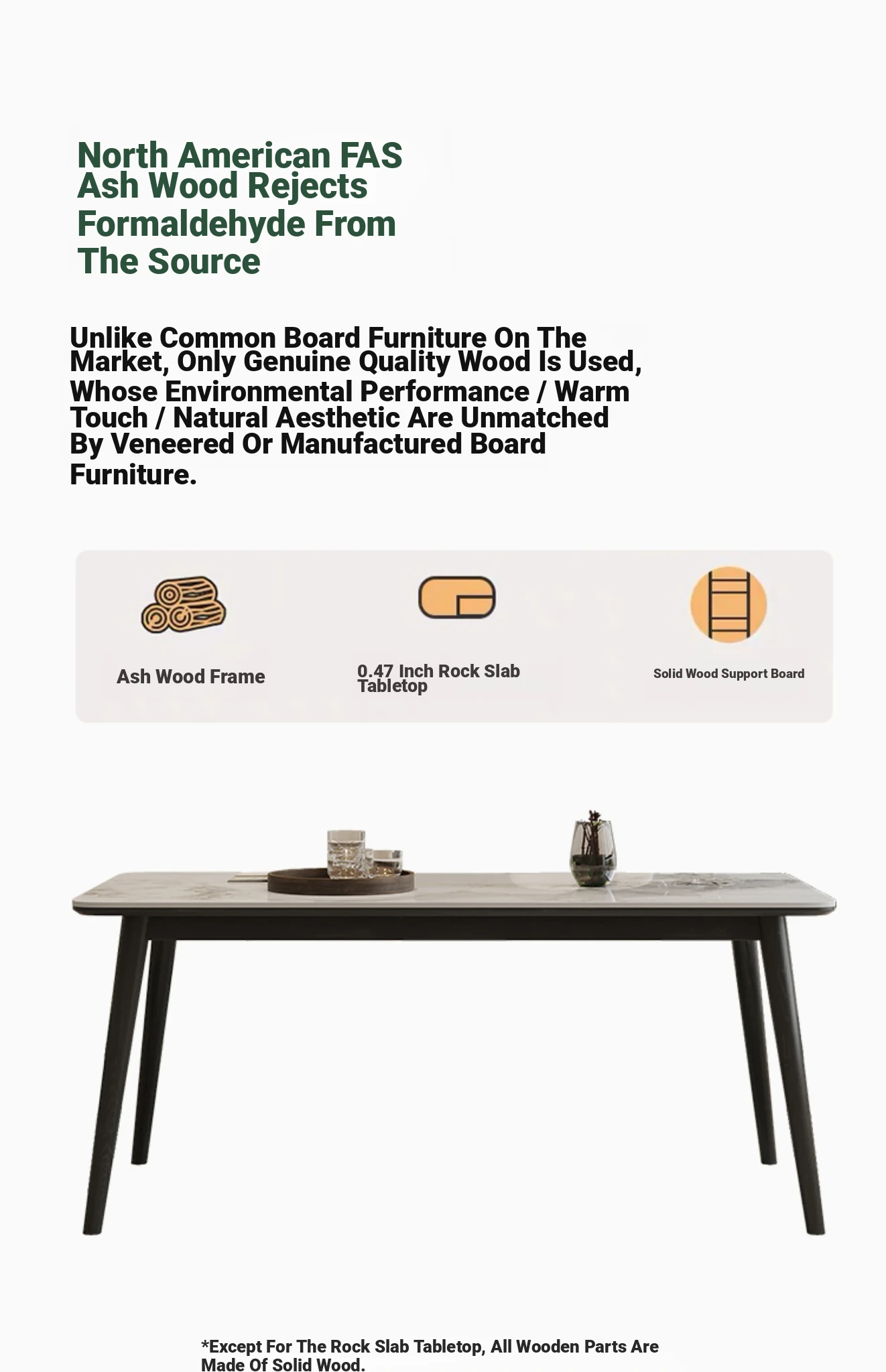 Solid Wood Dining Table with Full Support Board - Modern Minimalist Rectangular Table for Small Apartments, Perfect for Living Rooms and Dining Spaces