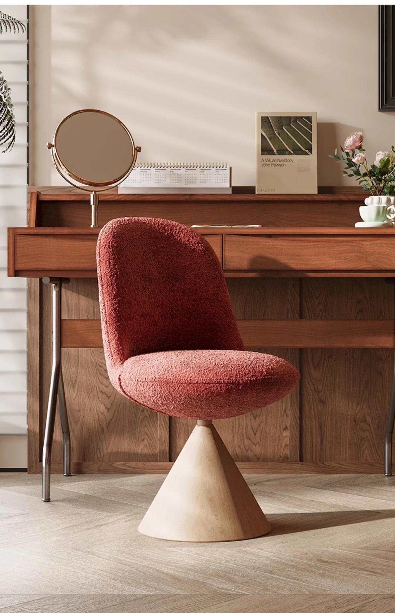Stylish Makeup Chair for Girls' Bedrooms - Italian Minimalist Design, Creative Rotating Lambswool Vanity Stool, Perfect for Makeup and Study