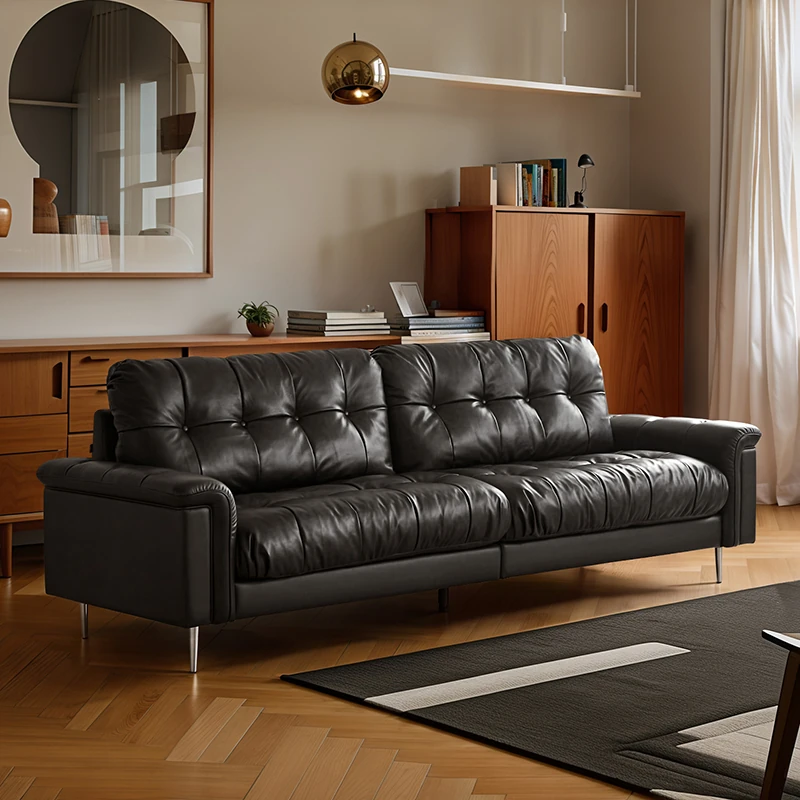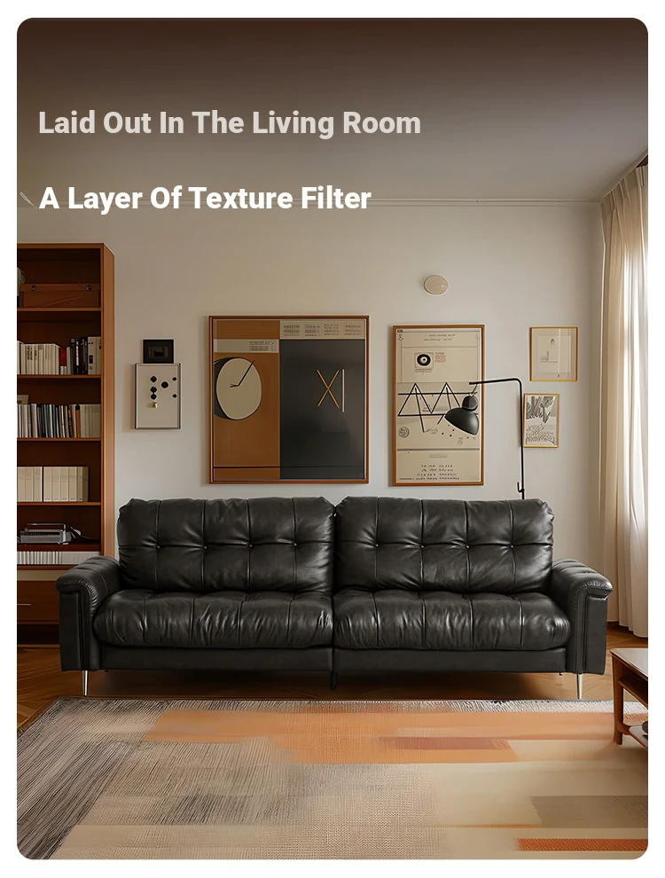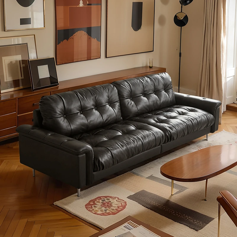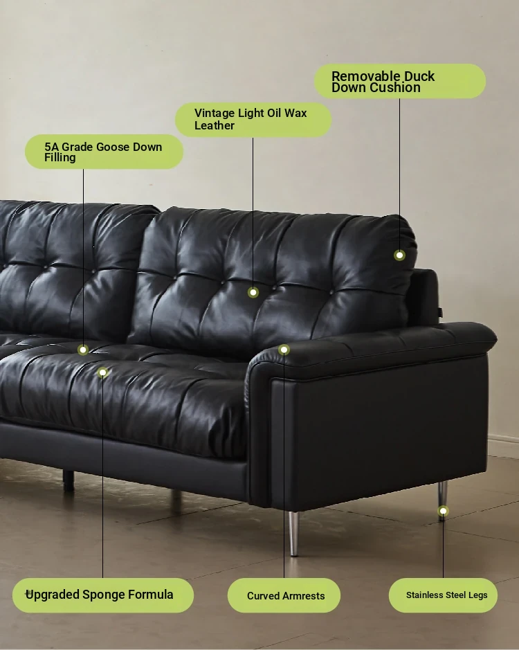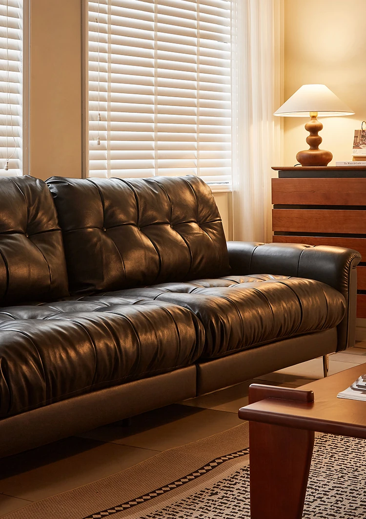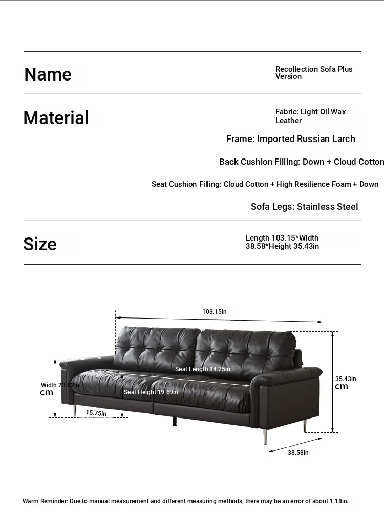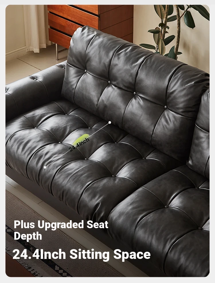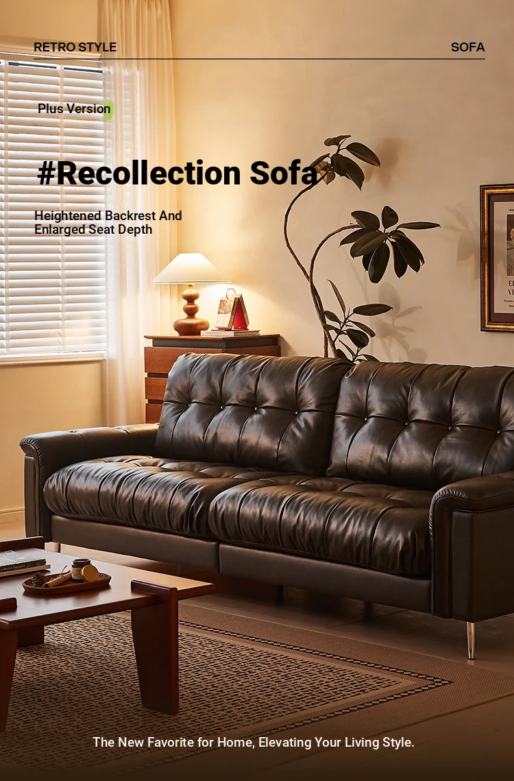 Vintage American Oil Wax Genuine Leather Sofa – Premium Top Grain Cowhide French Antique Style Reminiscence Sofa Plus Edition
