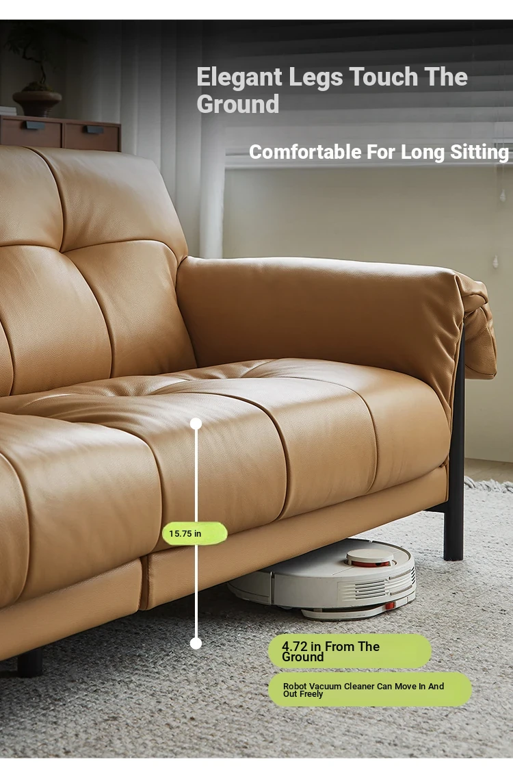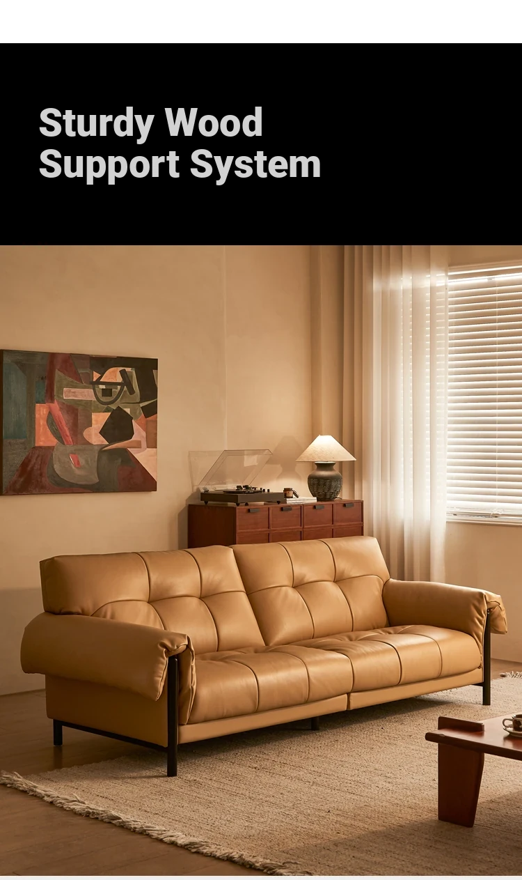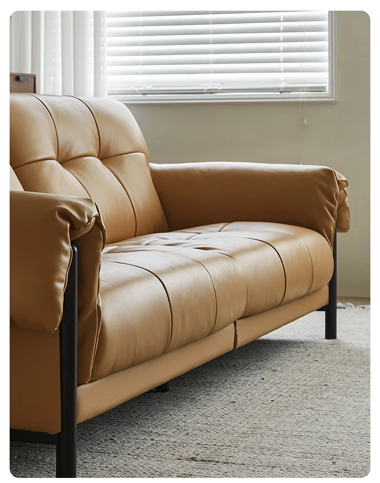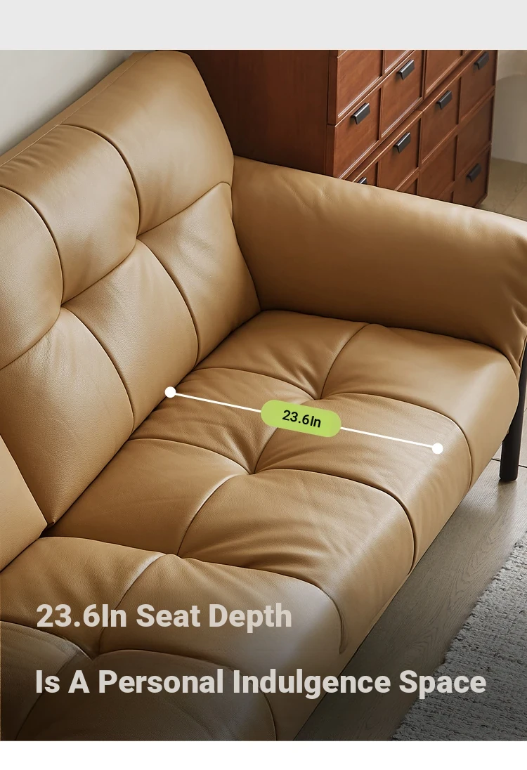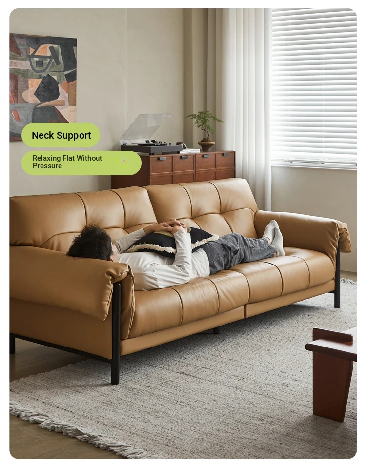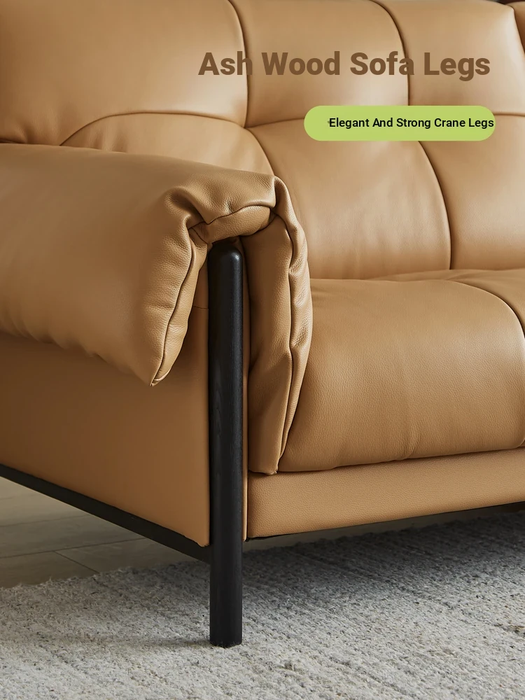 Vintage French Style Cracked Leather Three-Seater Sofa - Authentic Top Grain Cowhide Living Room Couch with Antique Charm