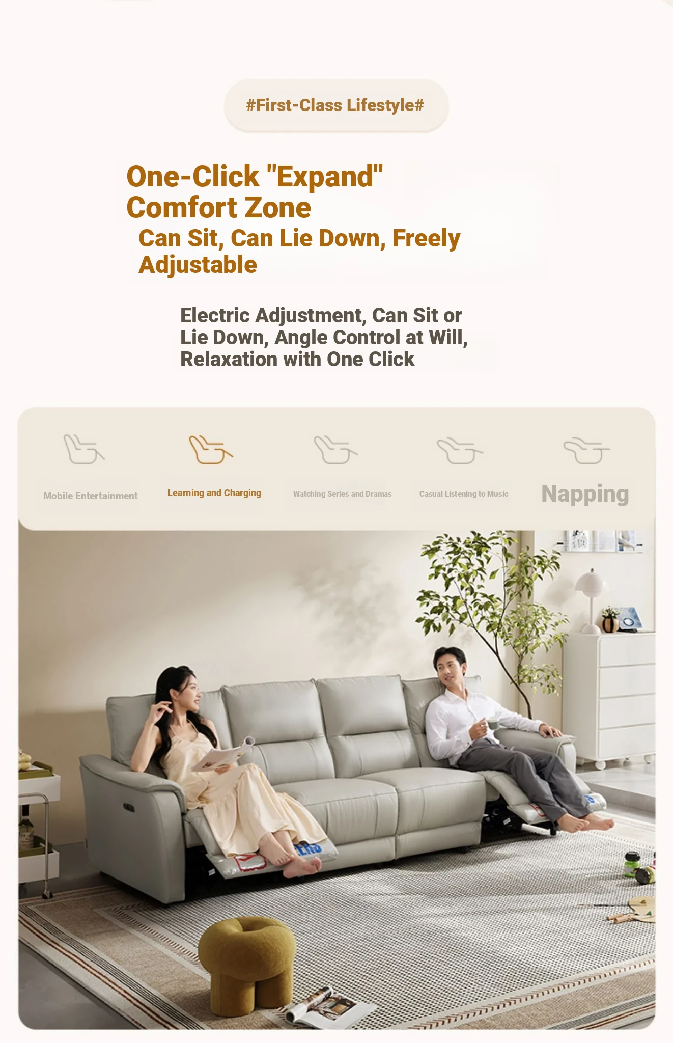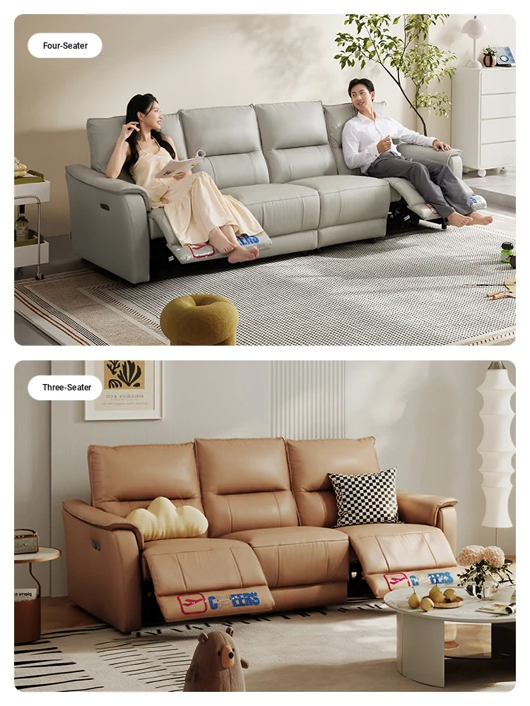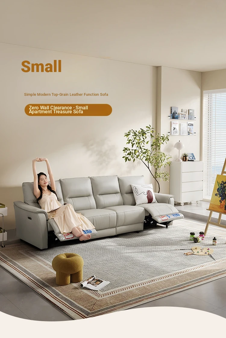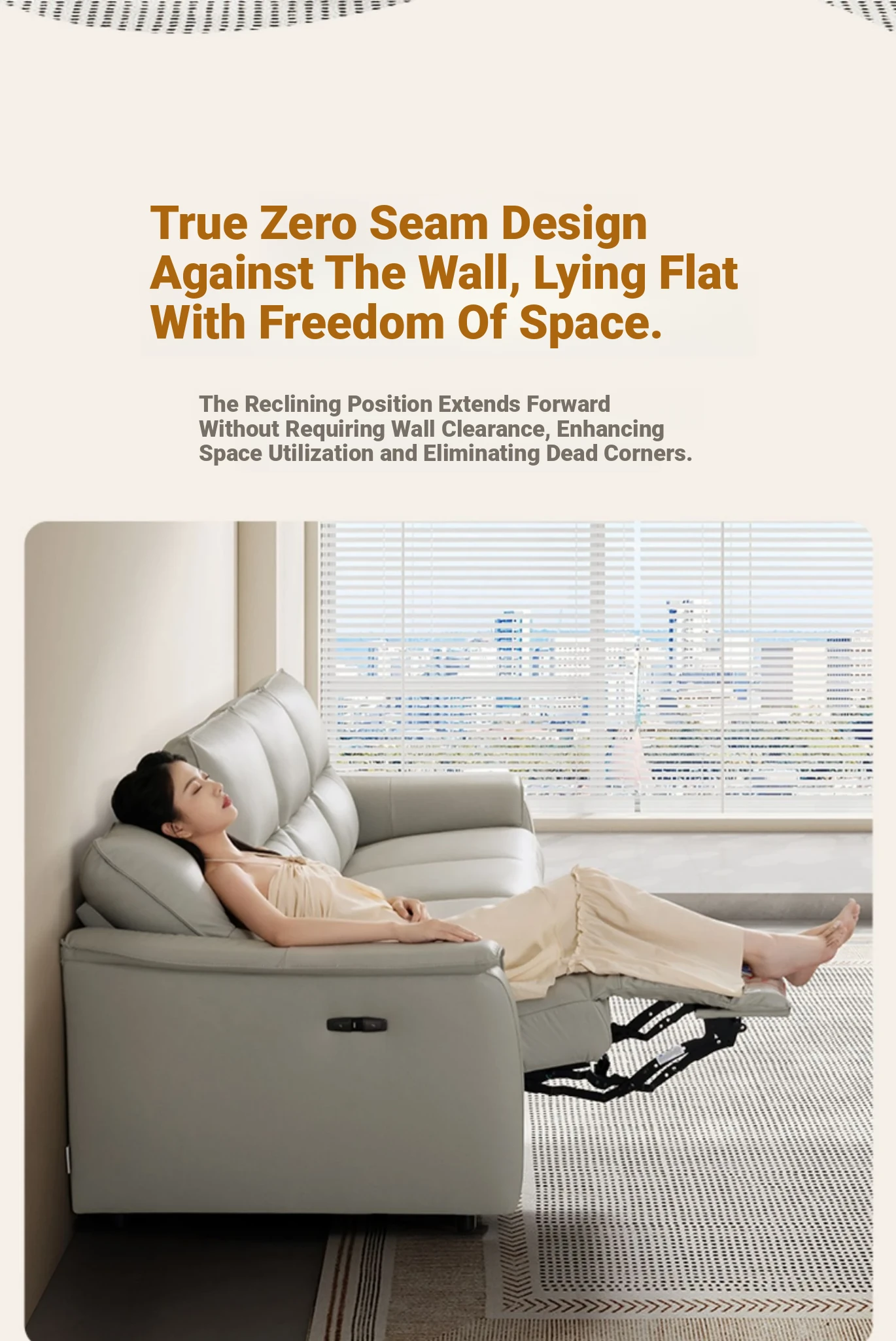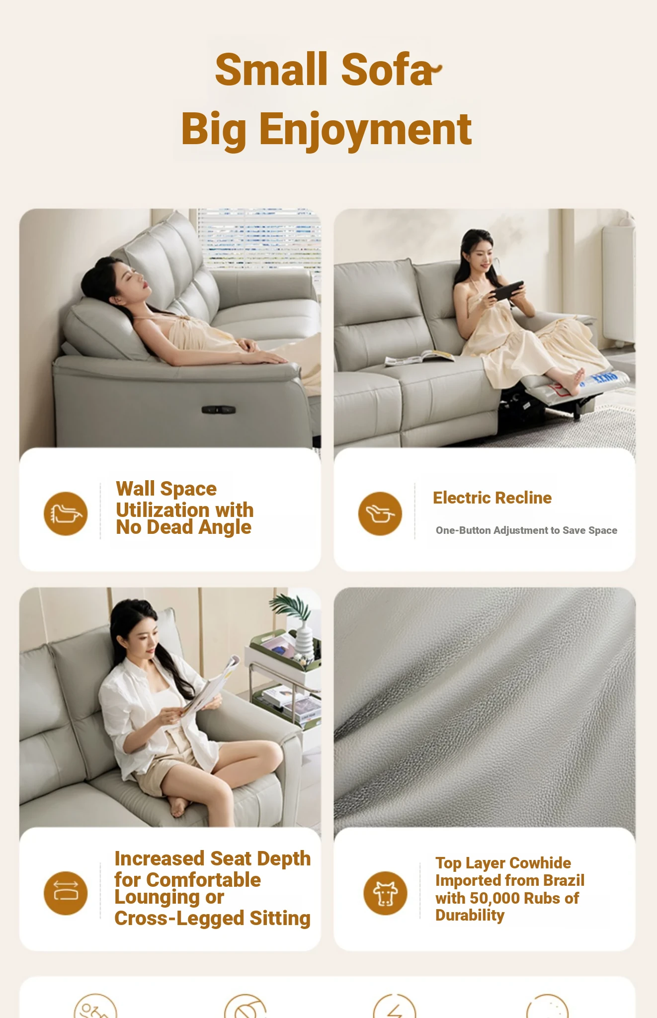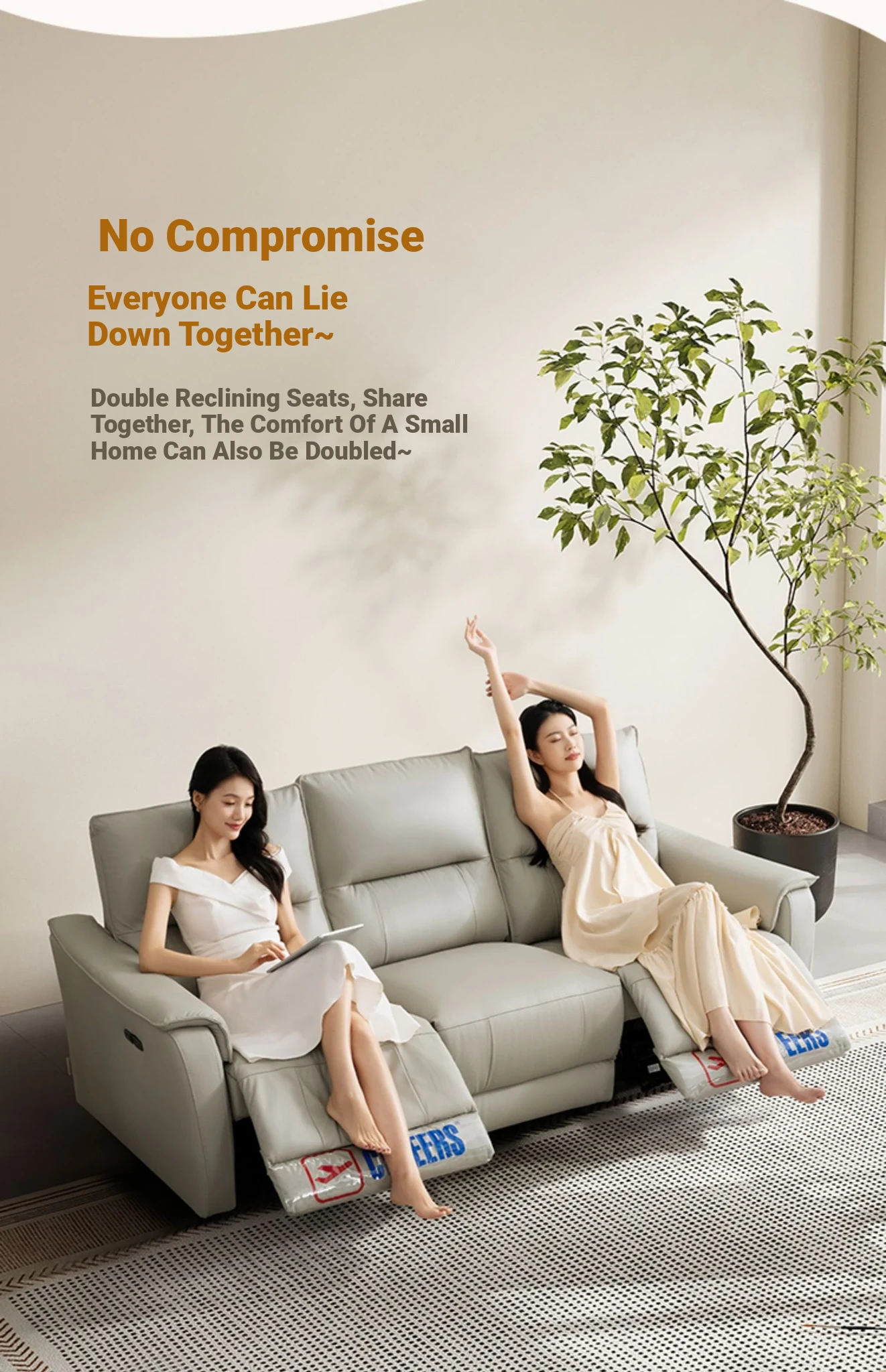 ZhiHuaShi First-Class Modern Minimalist Genuine Leather Sofa for Small Living Rooms - Electric Function Recliner Furniture Model 30522