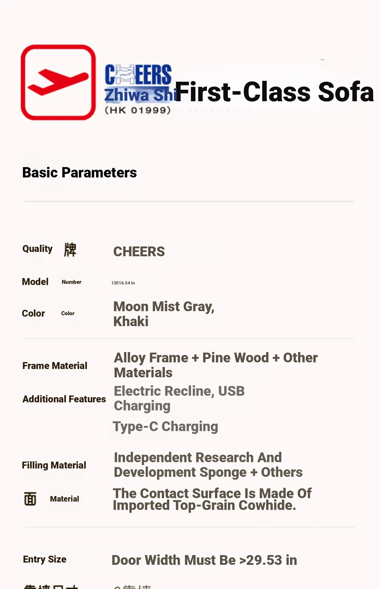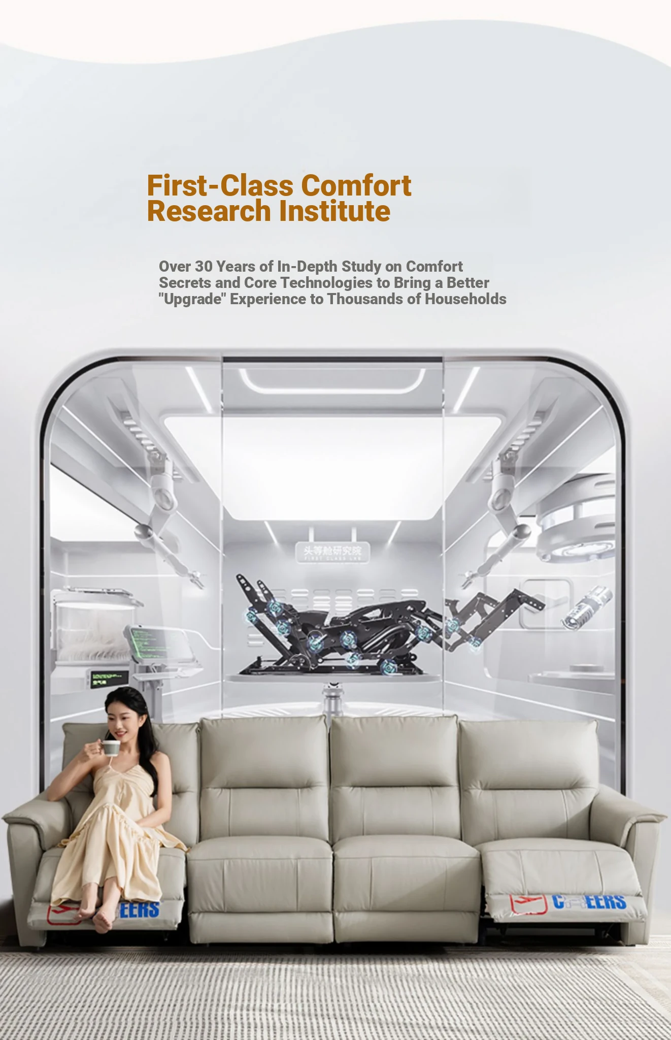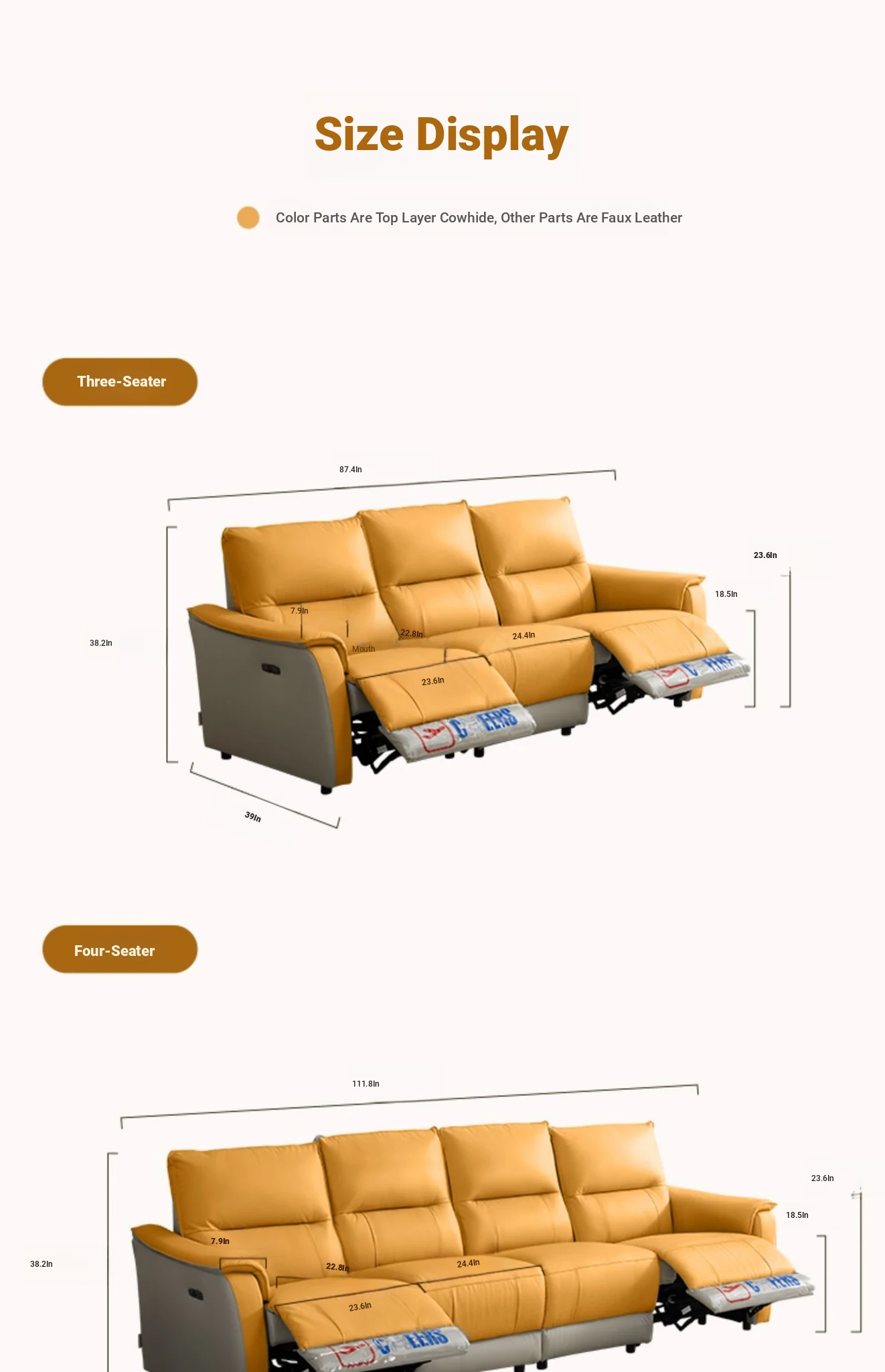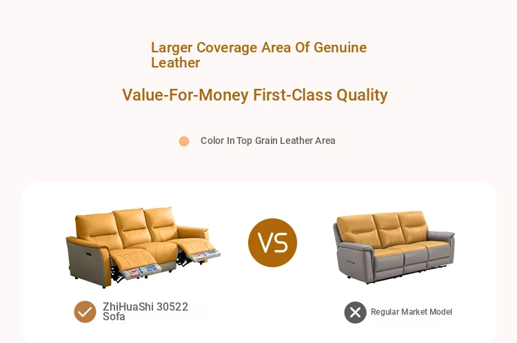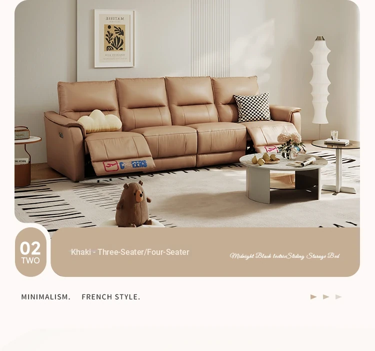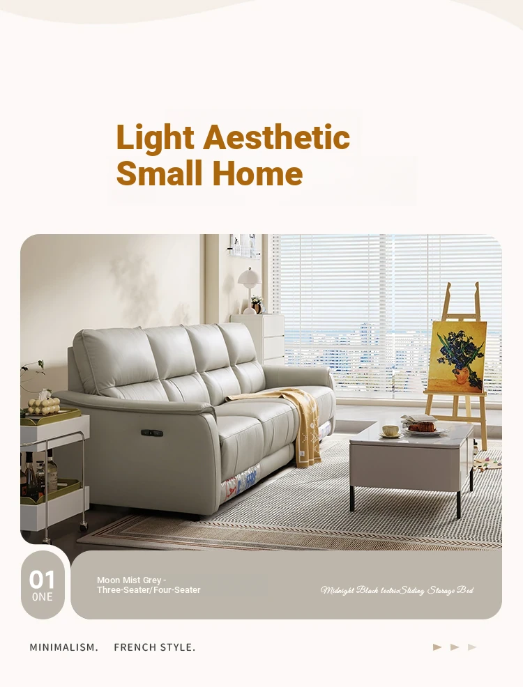 ZhiHuaShi First-Class Modern Minimalist Genuine Leather Sofa for Small Living Rooms - Electric Function Recliner Furniture Model 30522