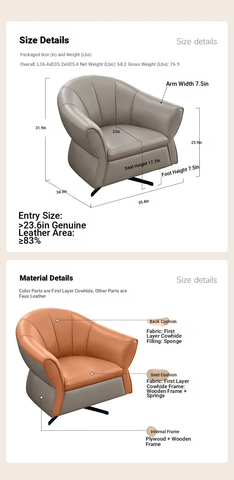 ZhiHuashi Genuine Leather Italian Style Armchair – Perfect for Living Room, Balcony, or Study – Tiger Chair Model K087/K2002 – Comfort and Elegance Combined!