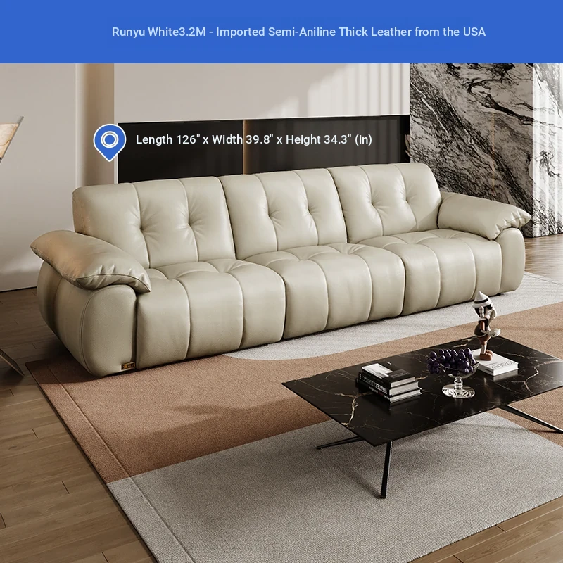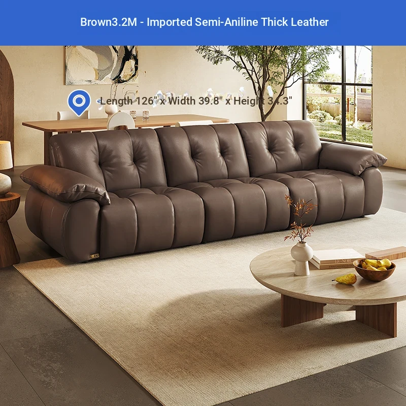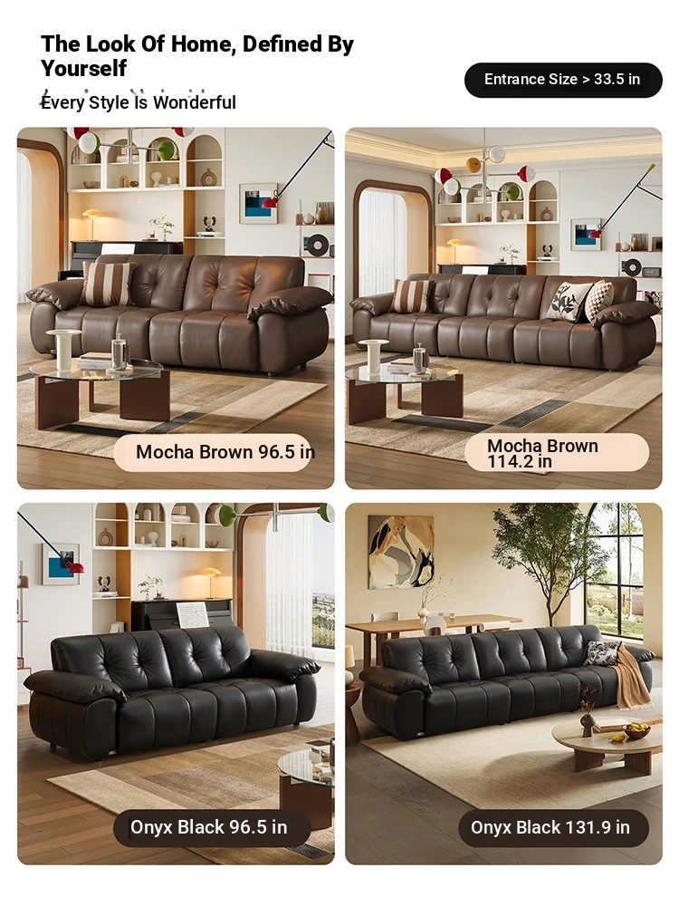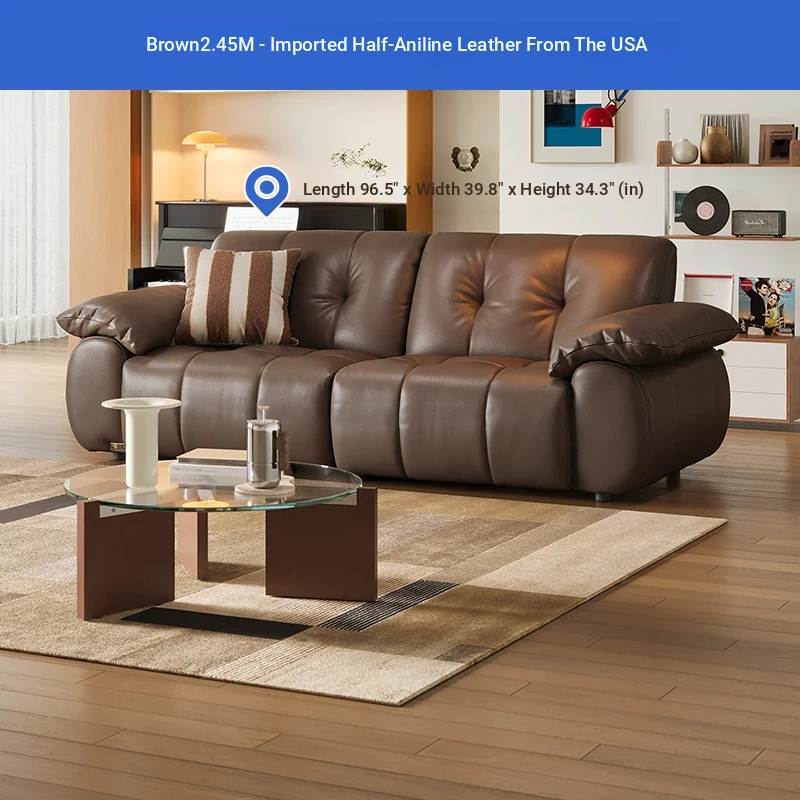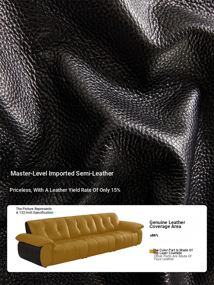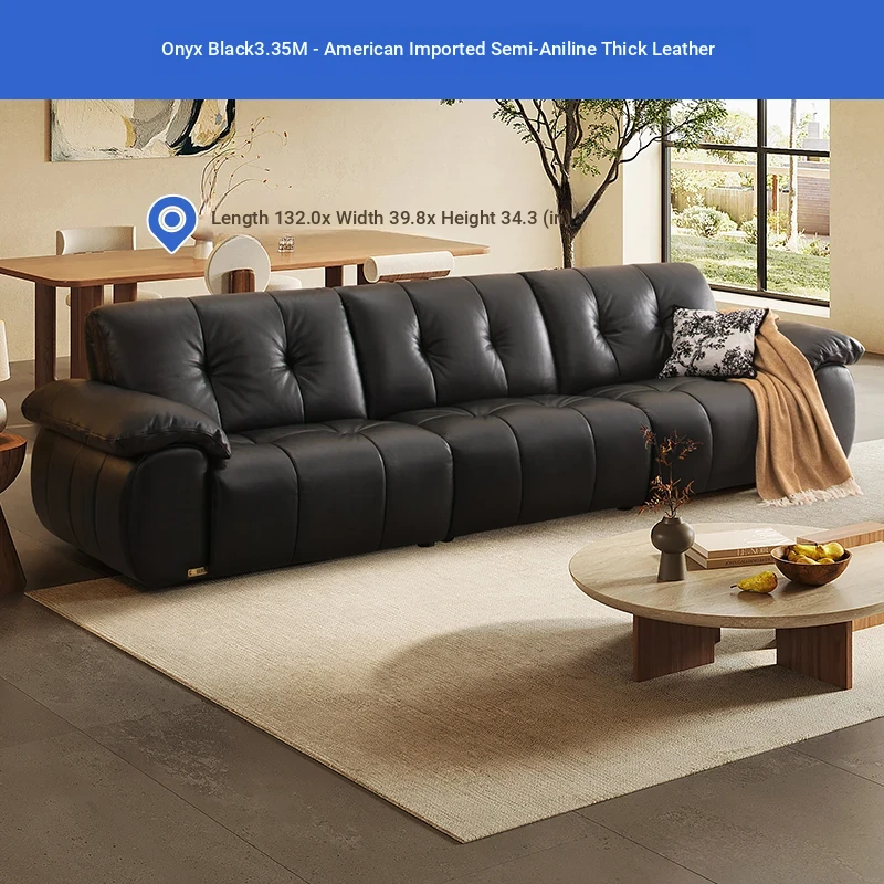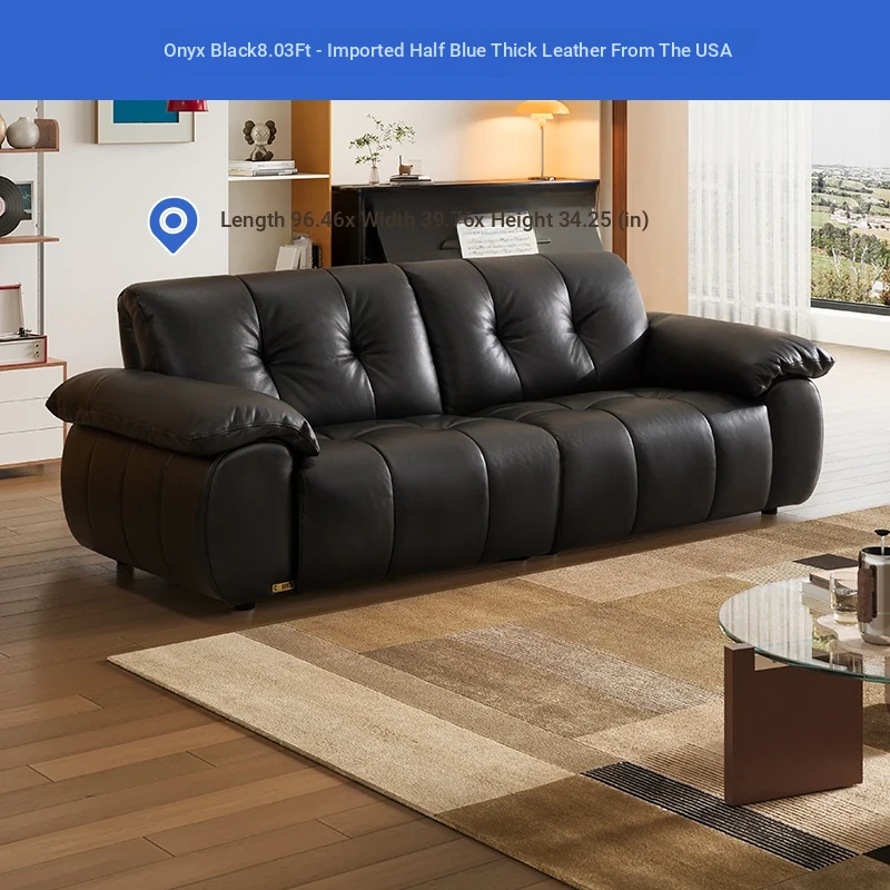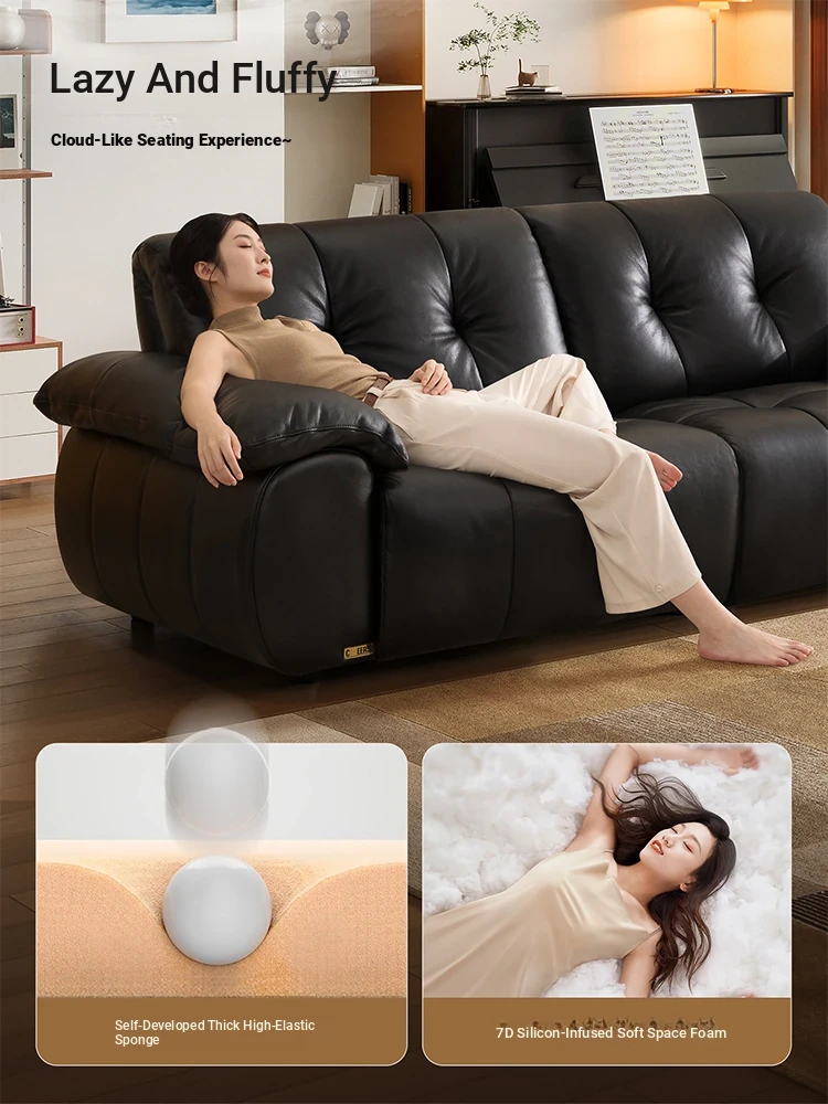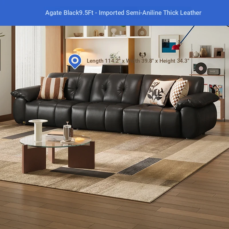 ZhiHuaShi Retro Cloud Sofa - 2025 New Arrival, Genuine Leather & Semi-Aged Leather, Large Black Cowhide Living Room Sofa Model 3176B
