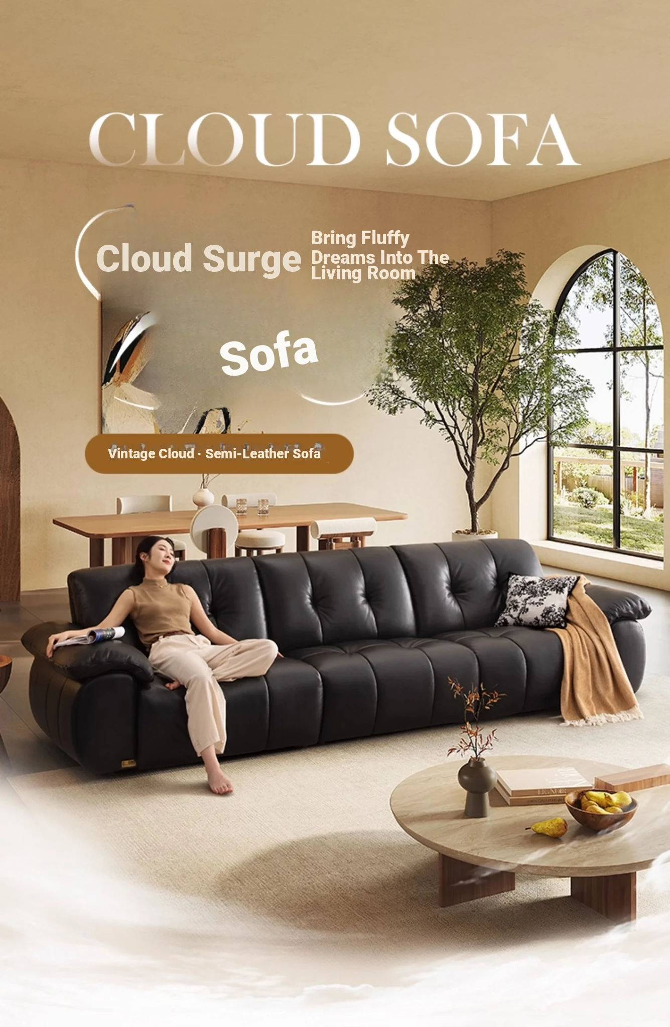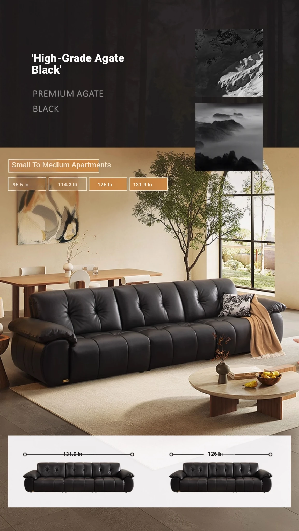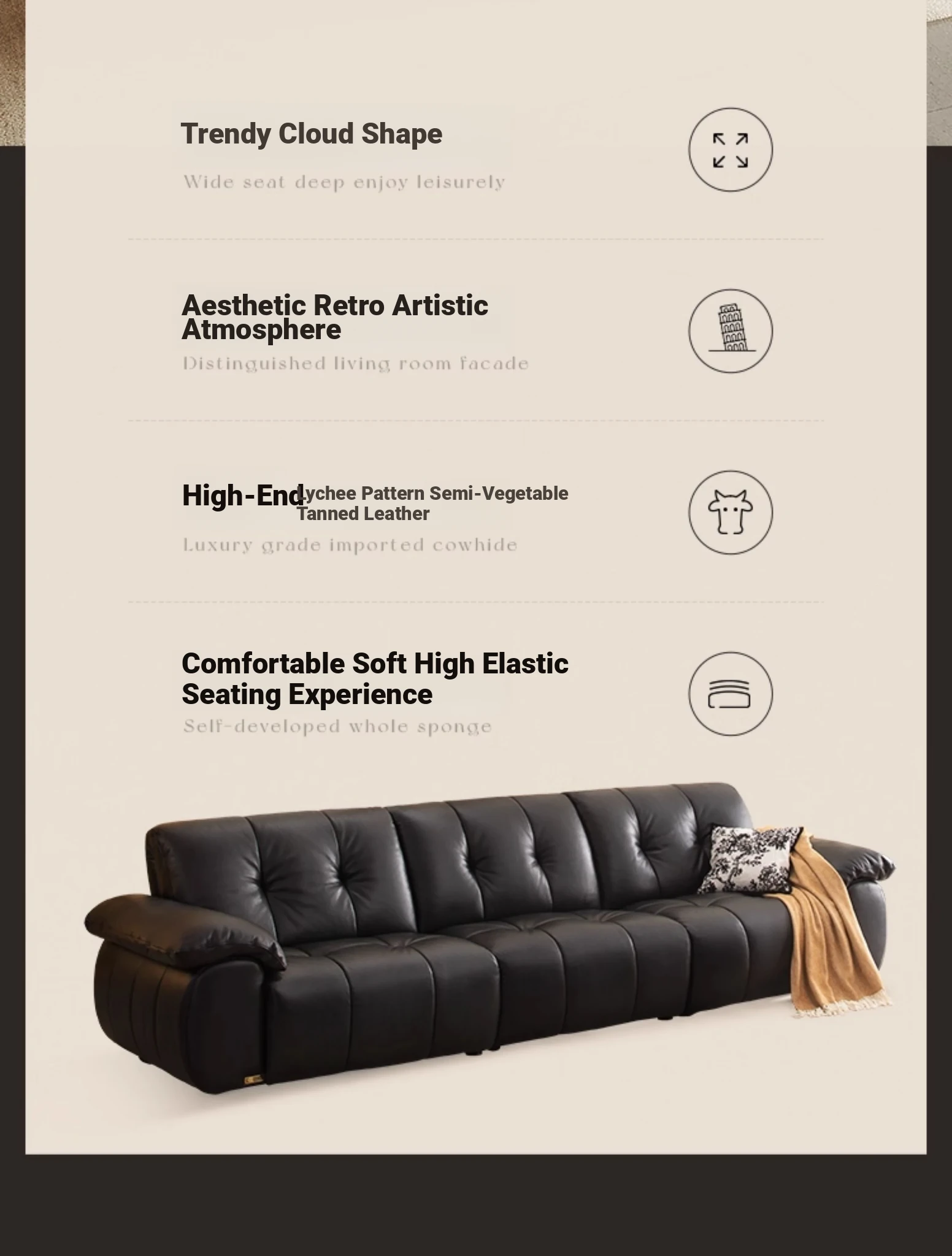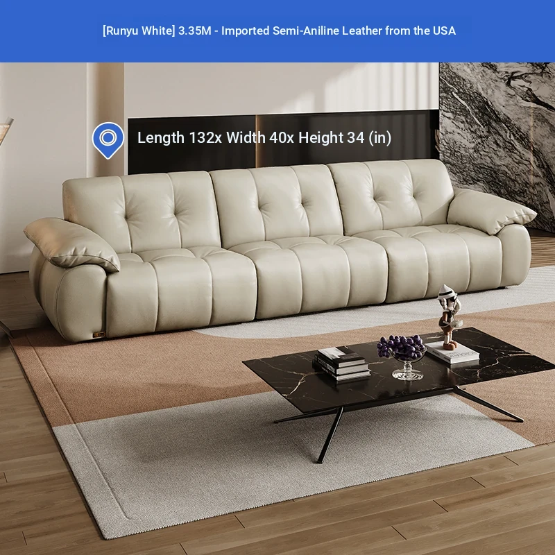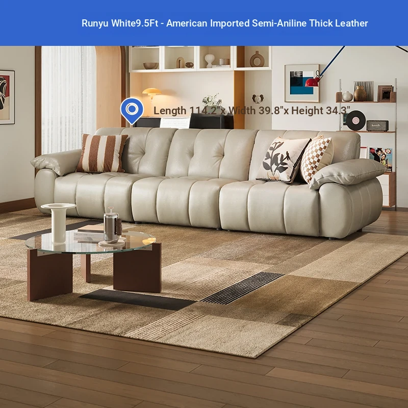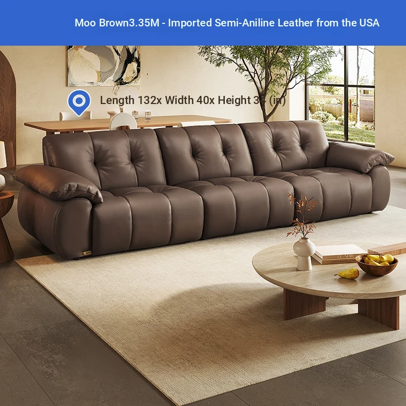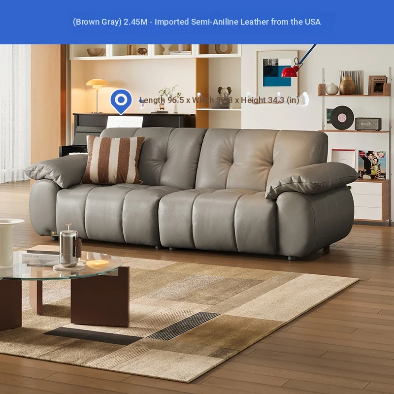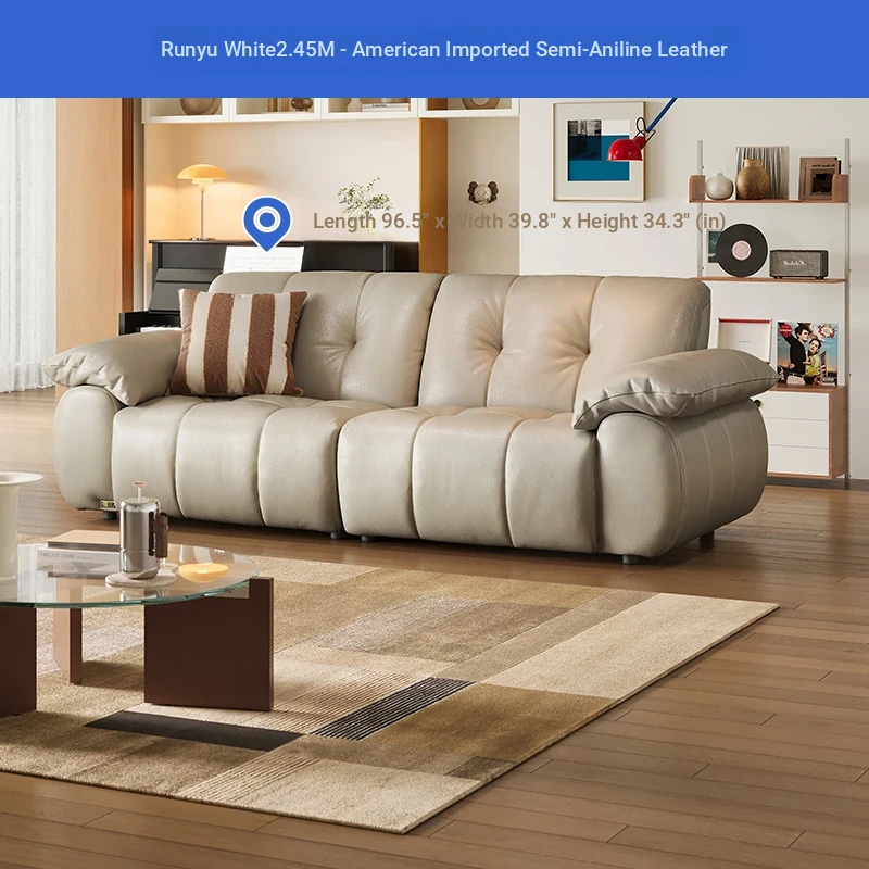 ZhiHuaShi Retro Cloud Sofa - 2025 New Arrival, Genuine Leather & Semi-Aged Leather, Large Black Cowhide Living Room Sofa Model 3176B