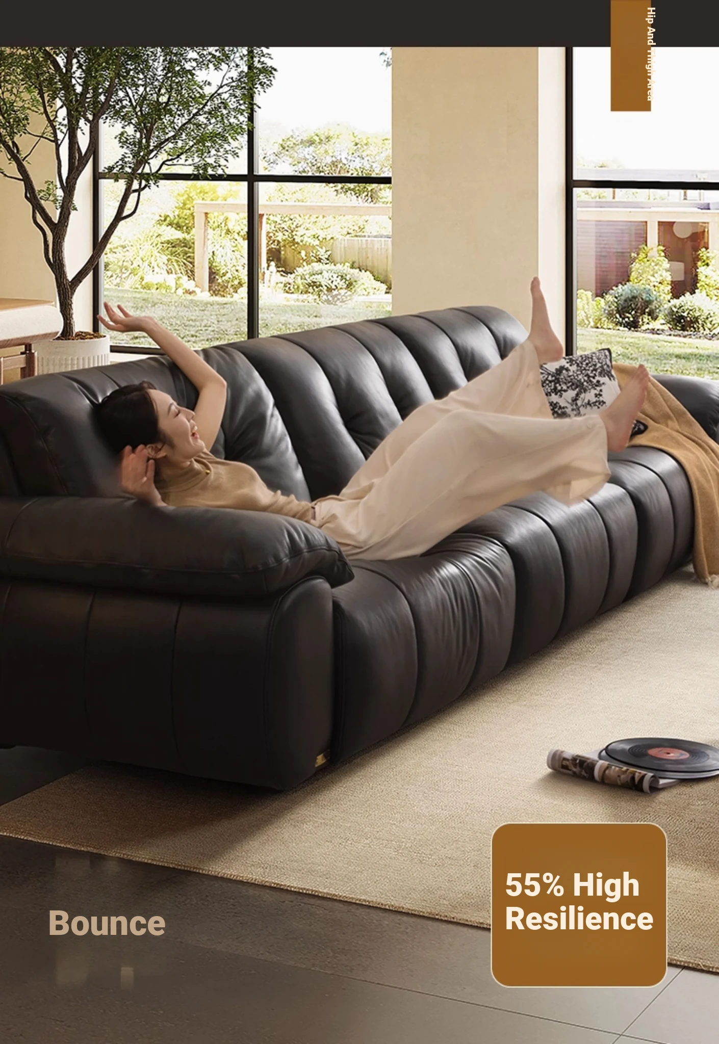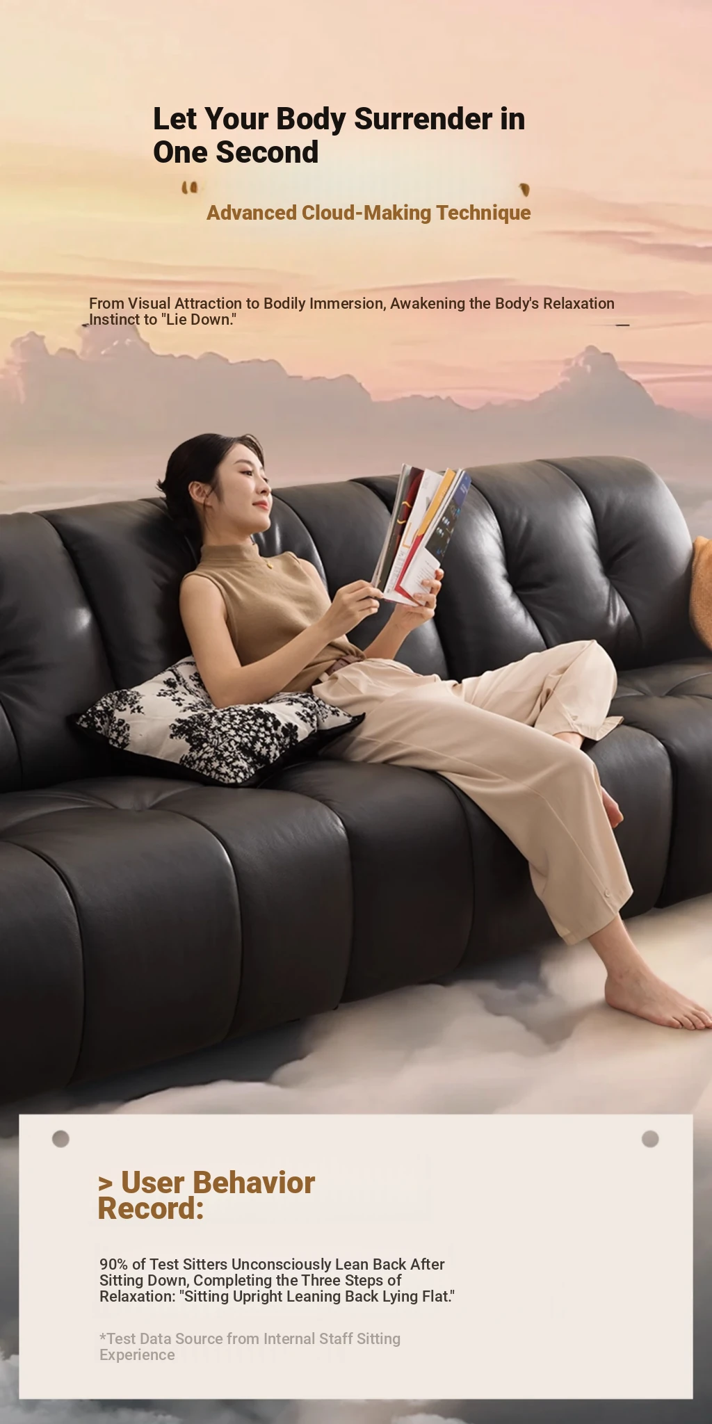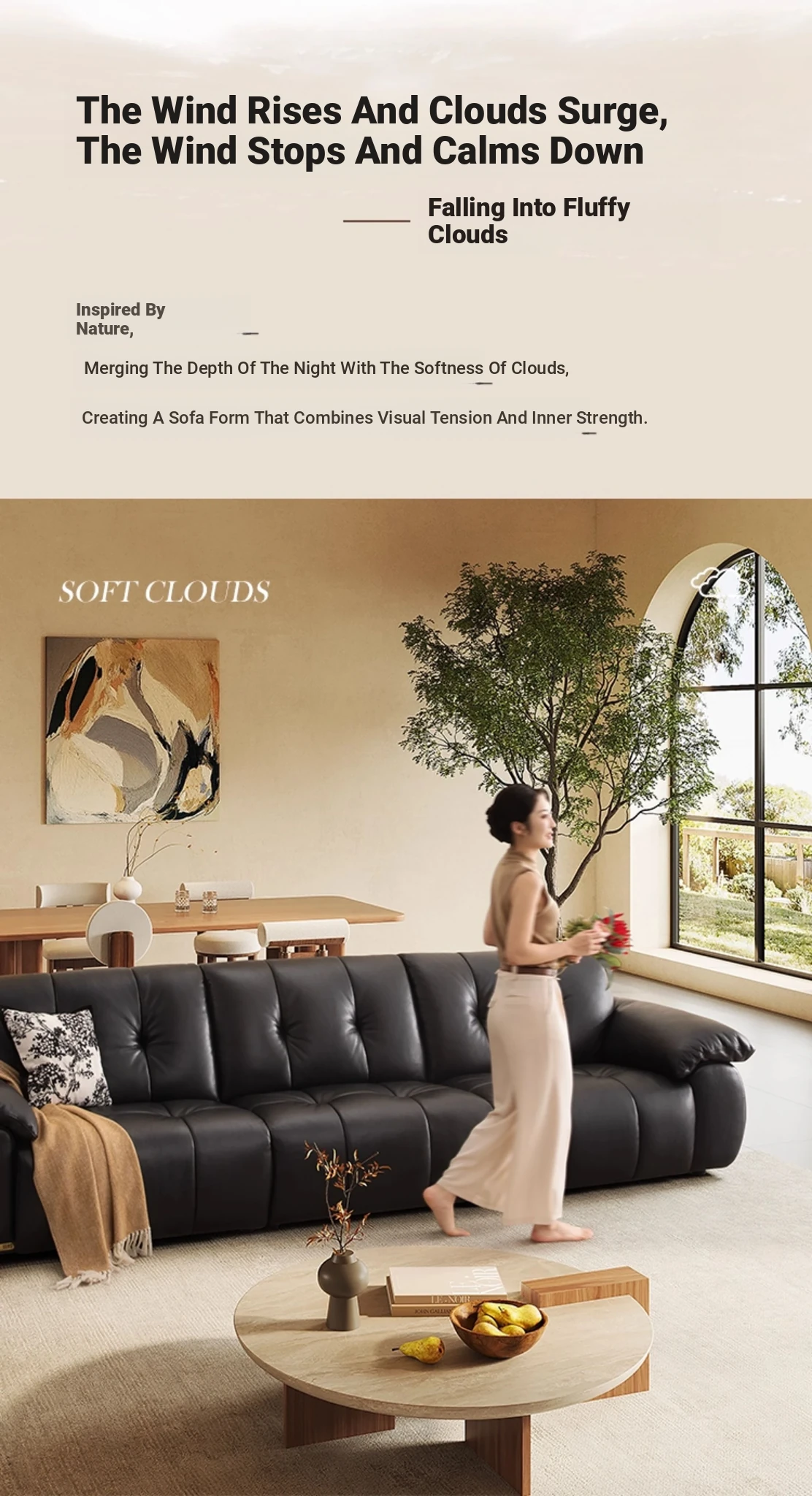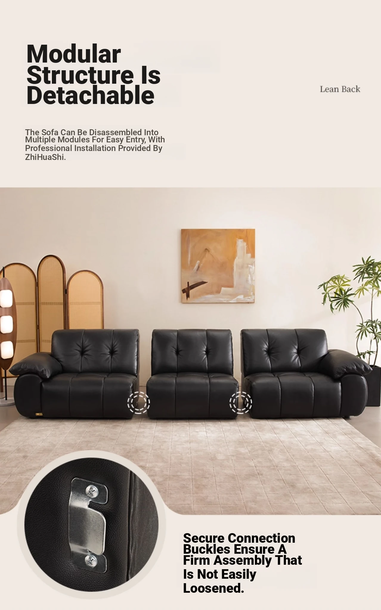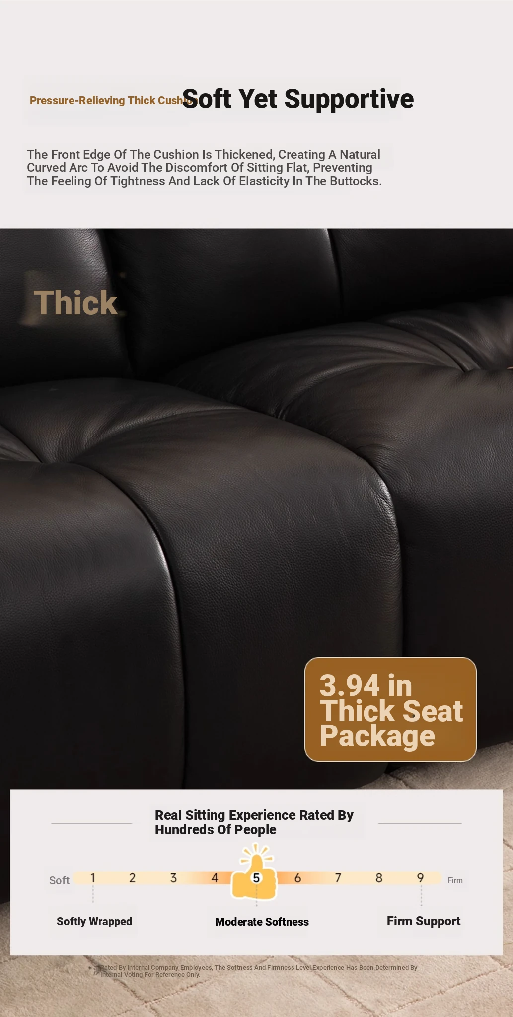 ZhiHuaShi Retro Cloud Sofa - 2025 New Arrival, Genuine Leather & Semi-Aged Leather, Large Black Cowhide Living Room Sofa Model 3176B