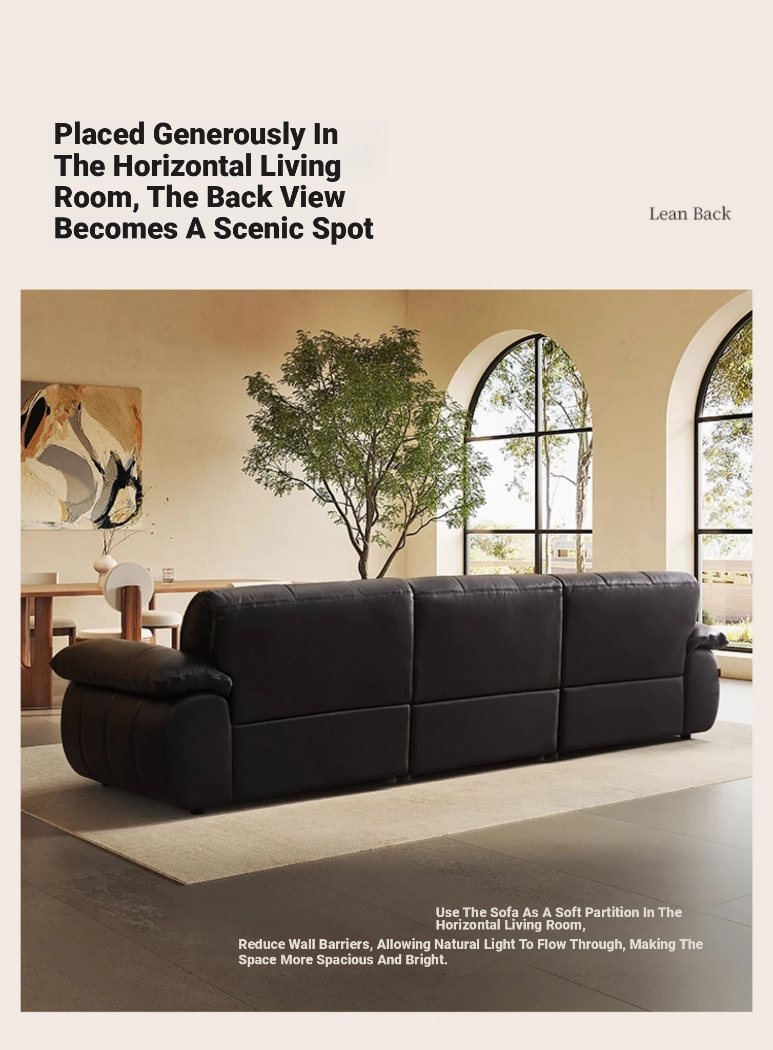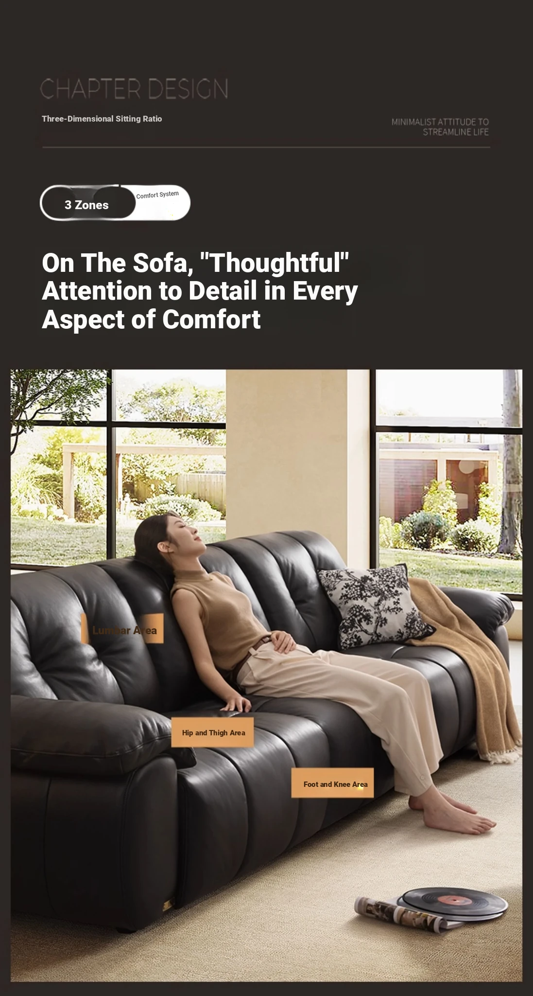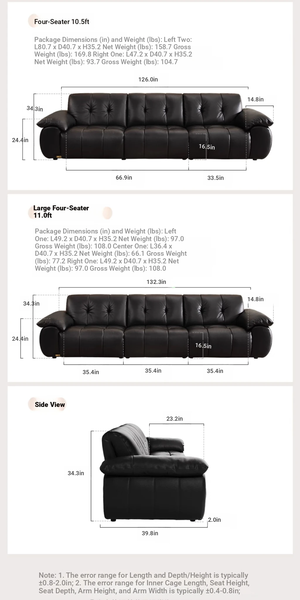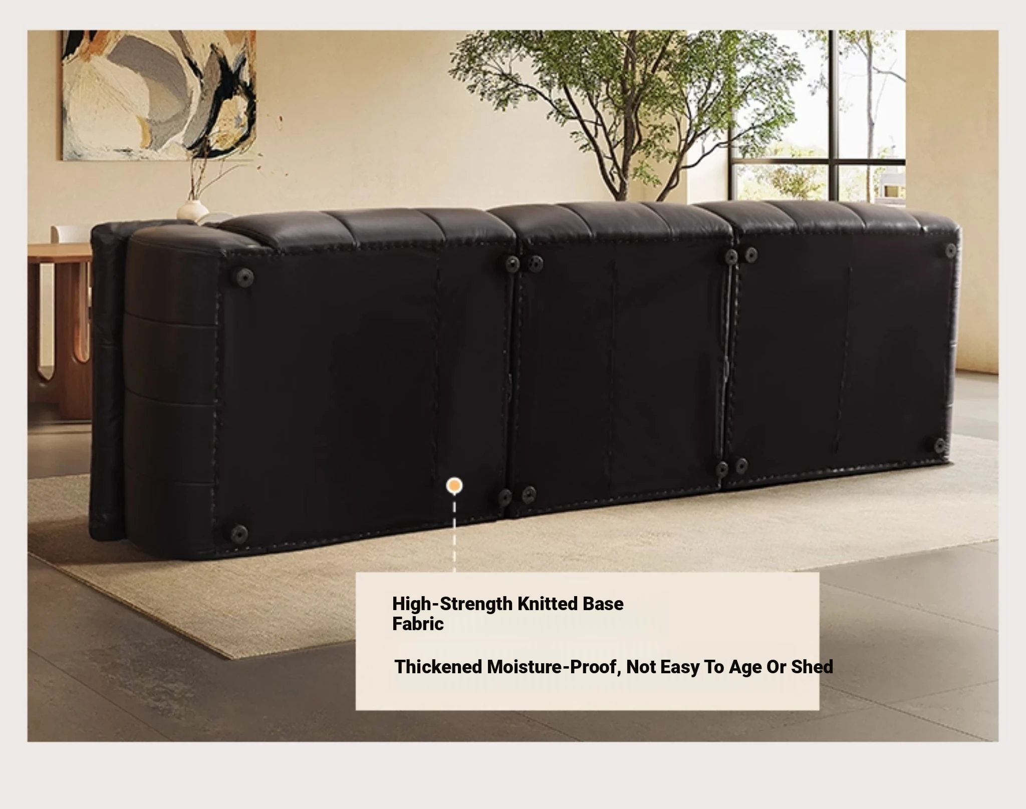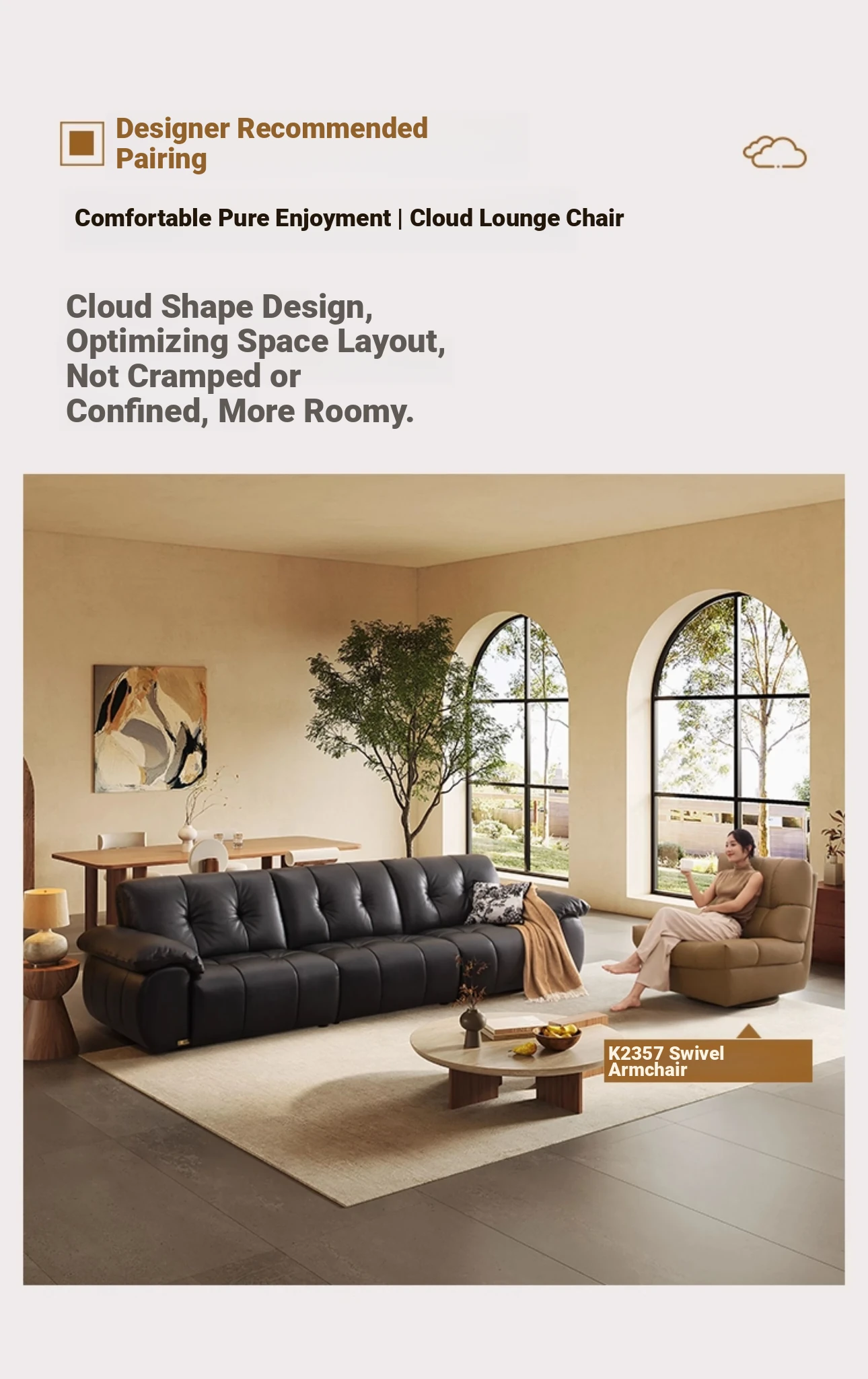 ZhiHuaShi Retro Cloud Sofa - 2025 New Arrival, Genuine Leather & Semi-Aged Leather, Large Black Cowhide Living Room Sofa Model 3176B